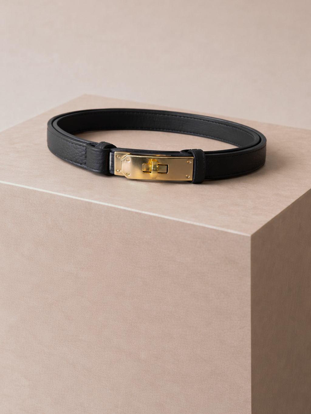 Čierny elegantný kožený opasok ORQUINE