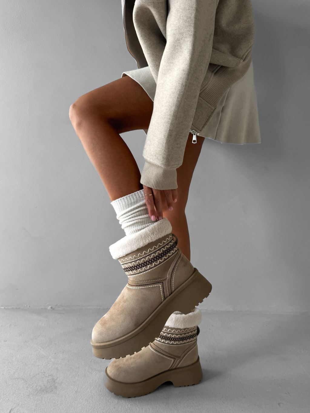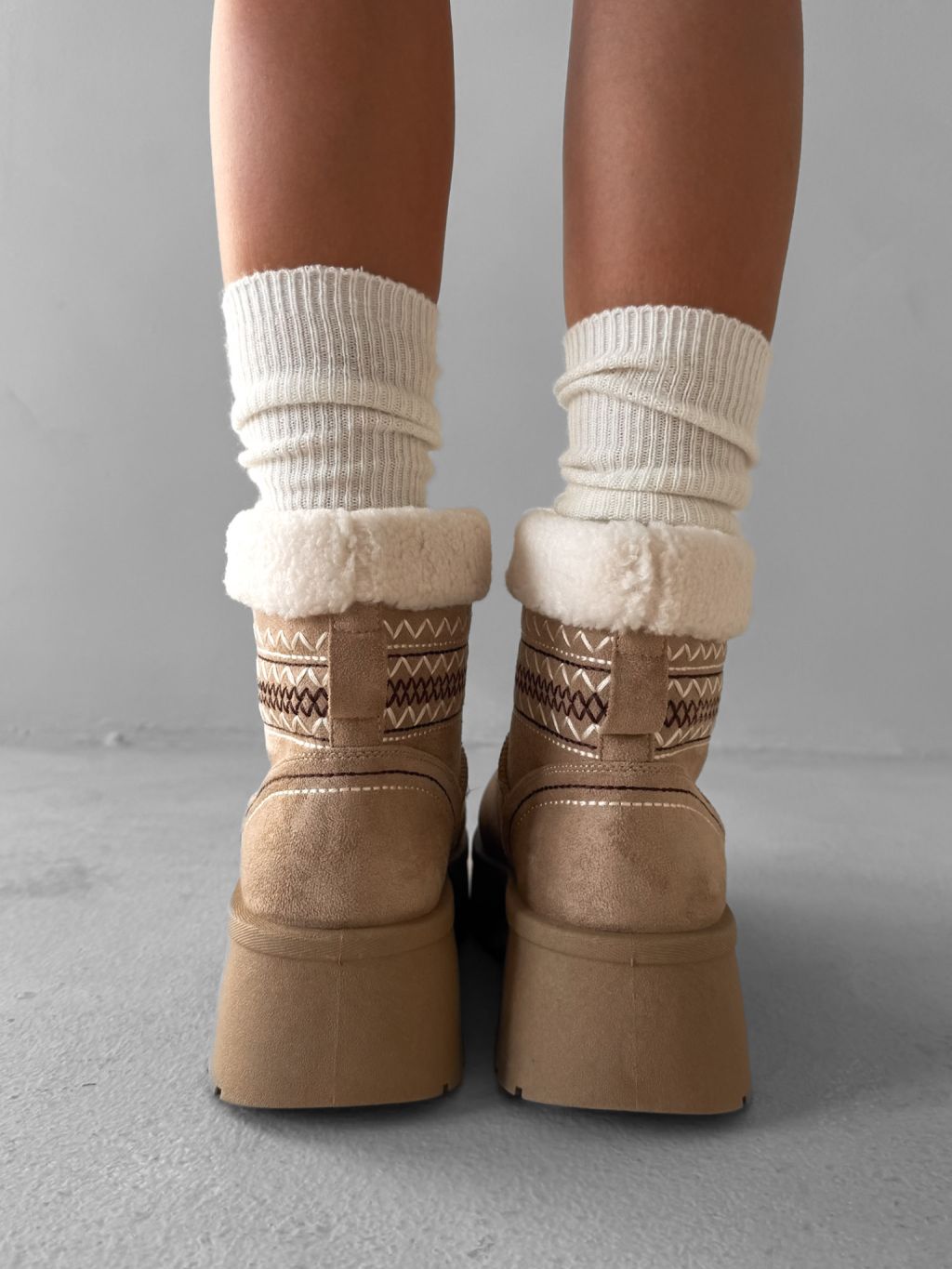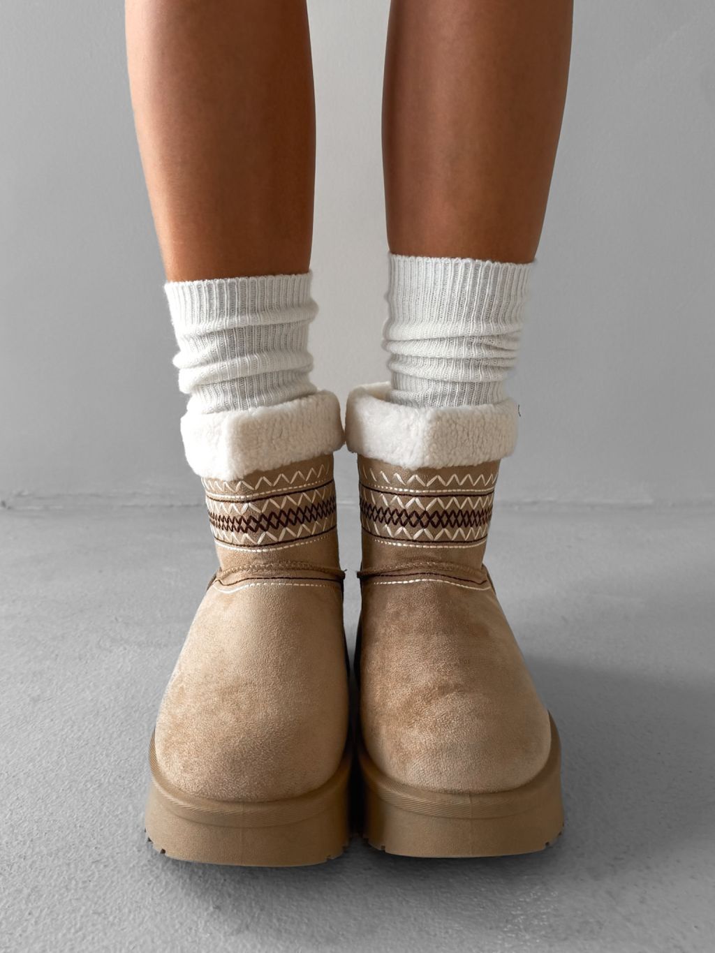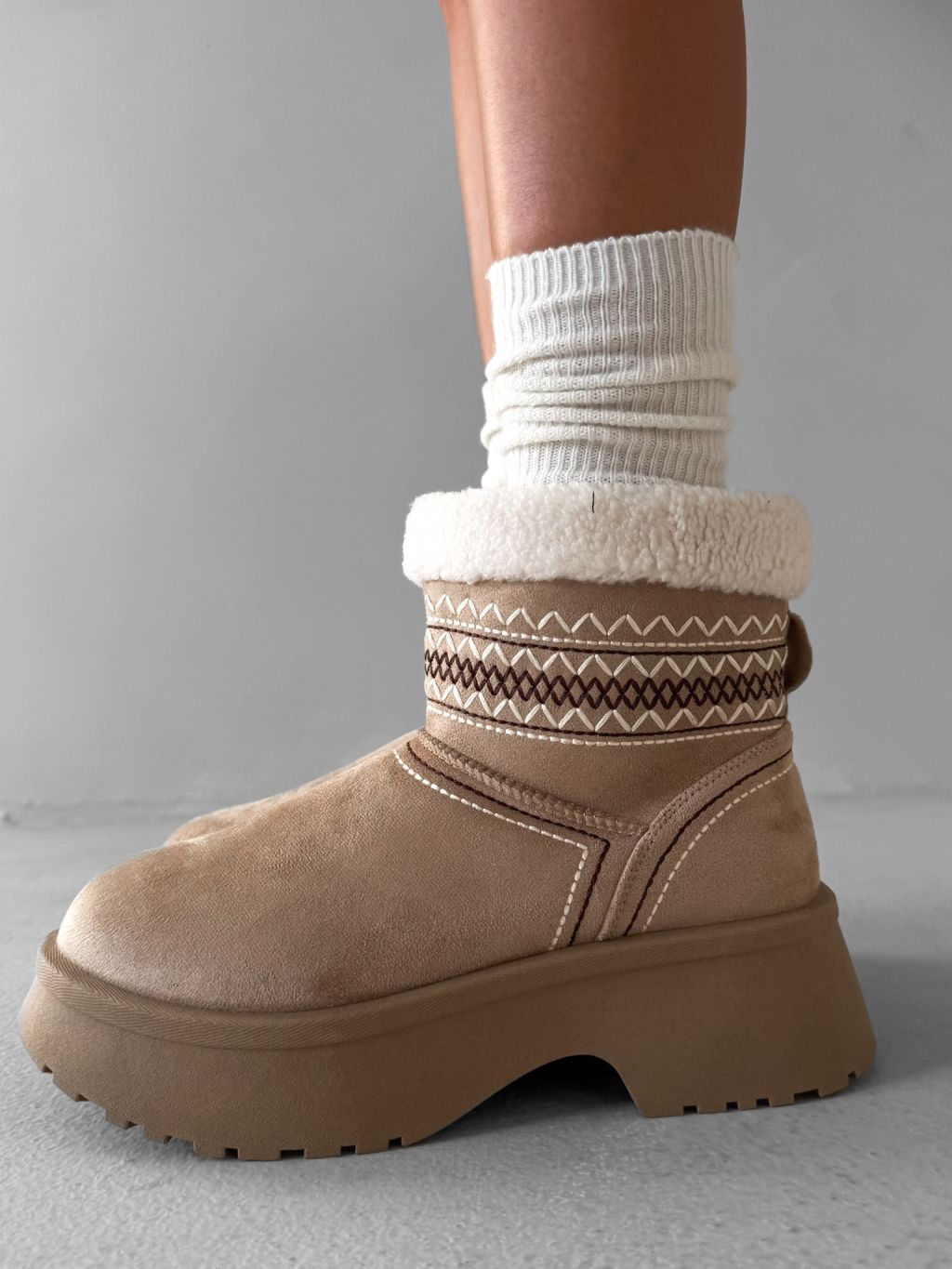 Béžové členkové válenky ORIENO s kožúškom