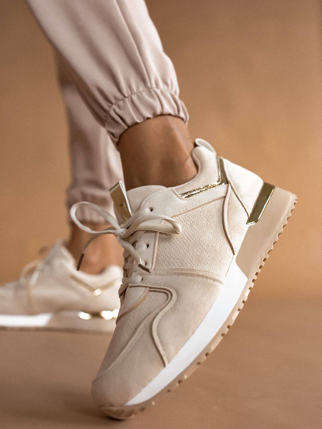 Béžové tenisky GOLDIE so zlatými detailmi