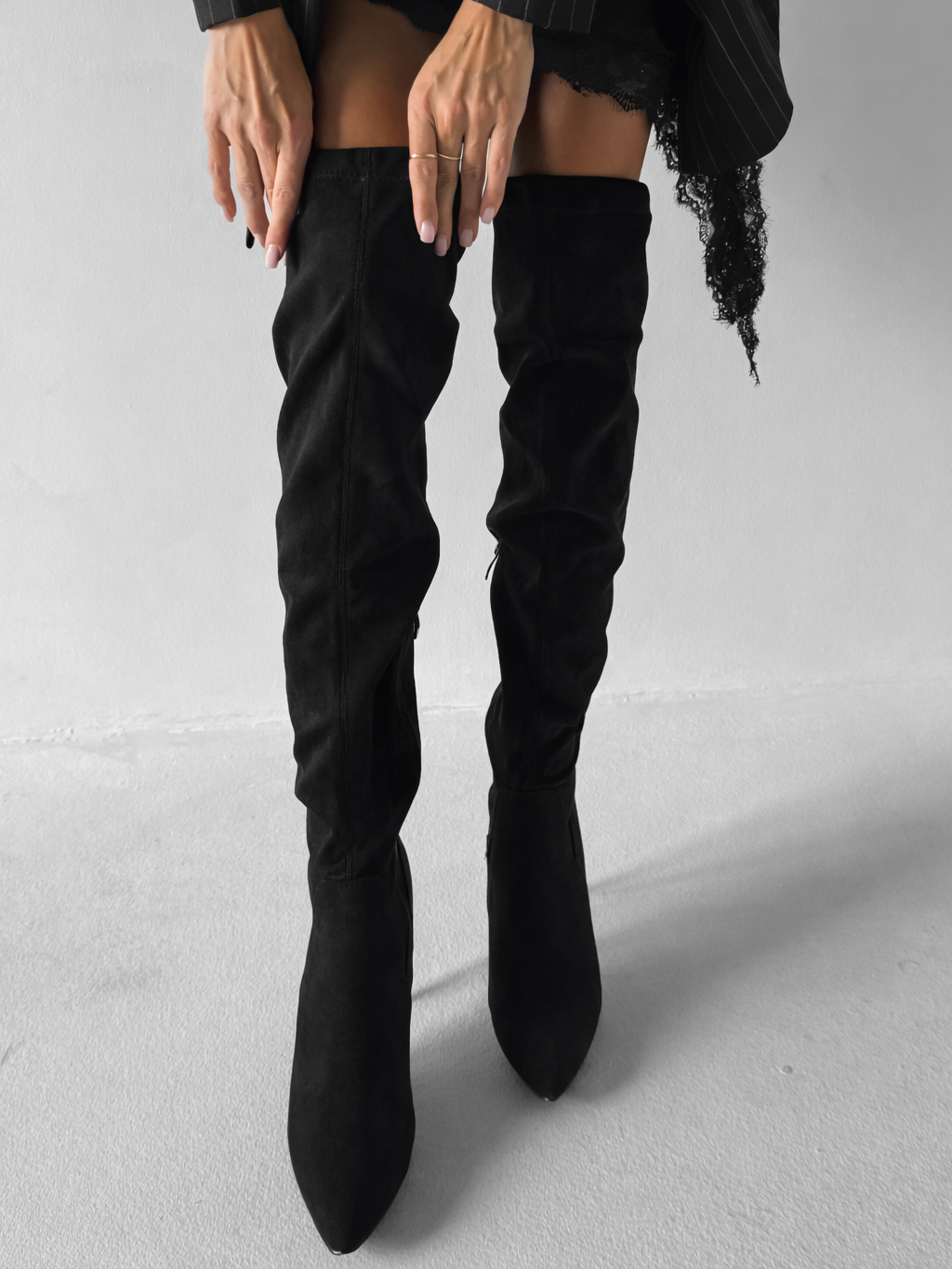Čierne semišové vysoké čižmy DARYANA nad kolená