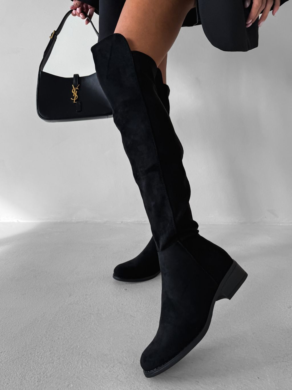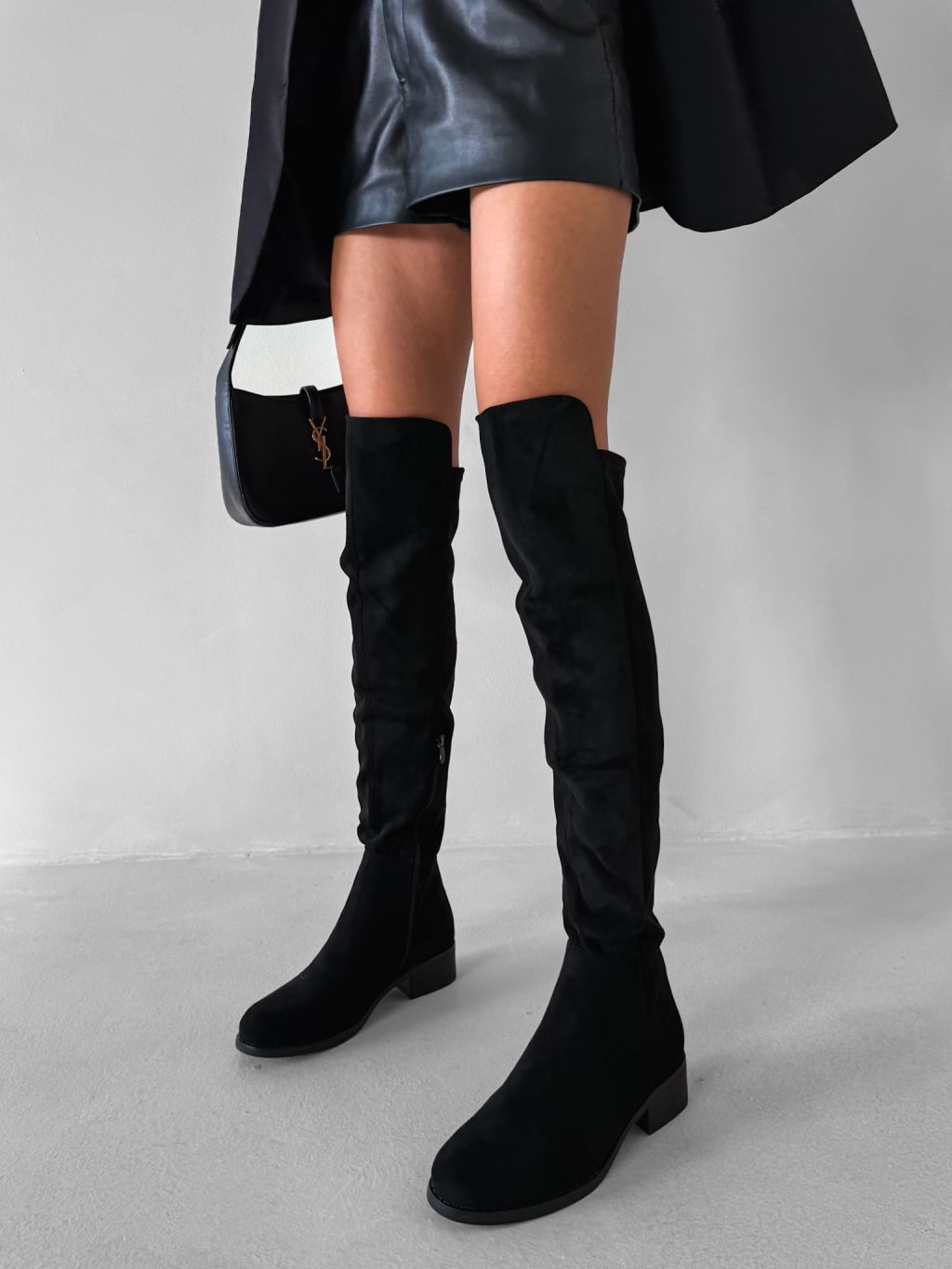 Čierne semišové vysoké čižmy VEYRA nad kolená