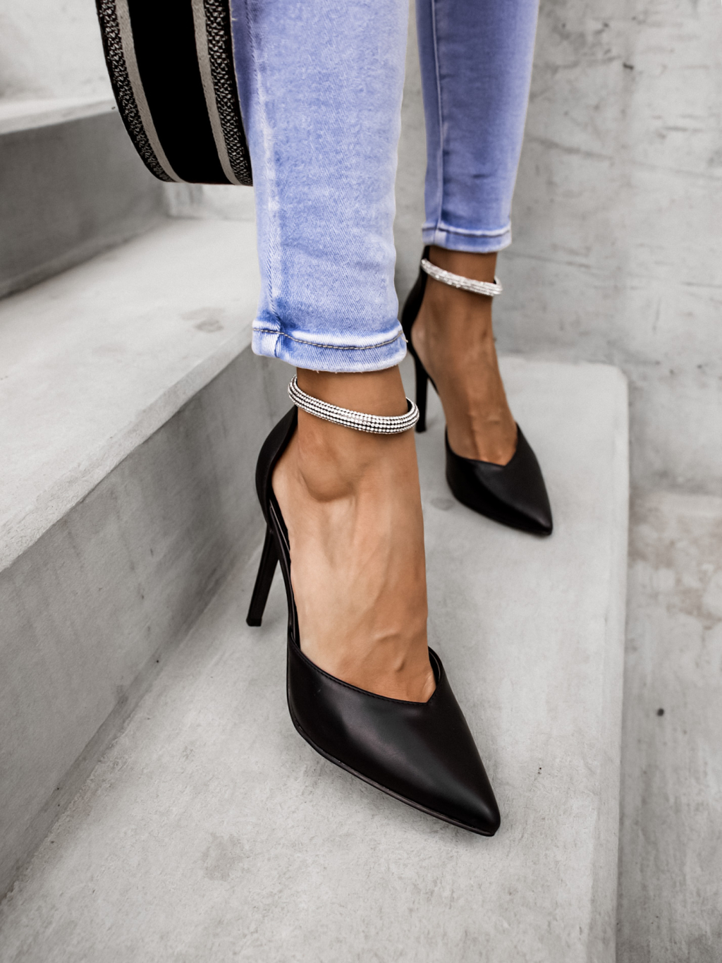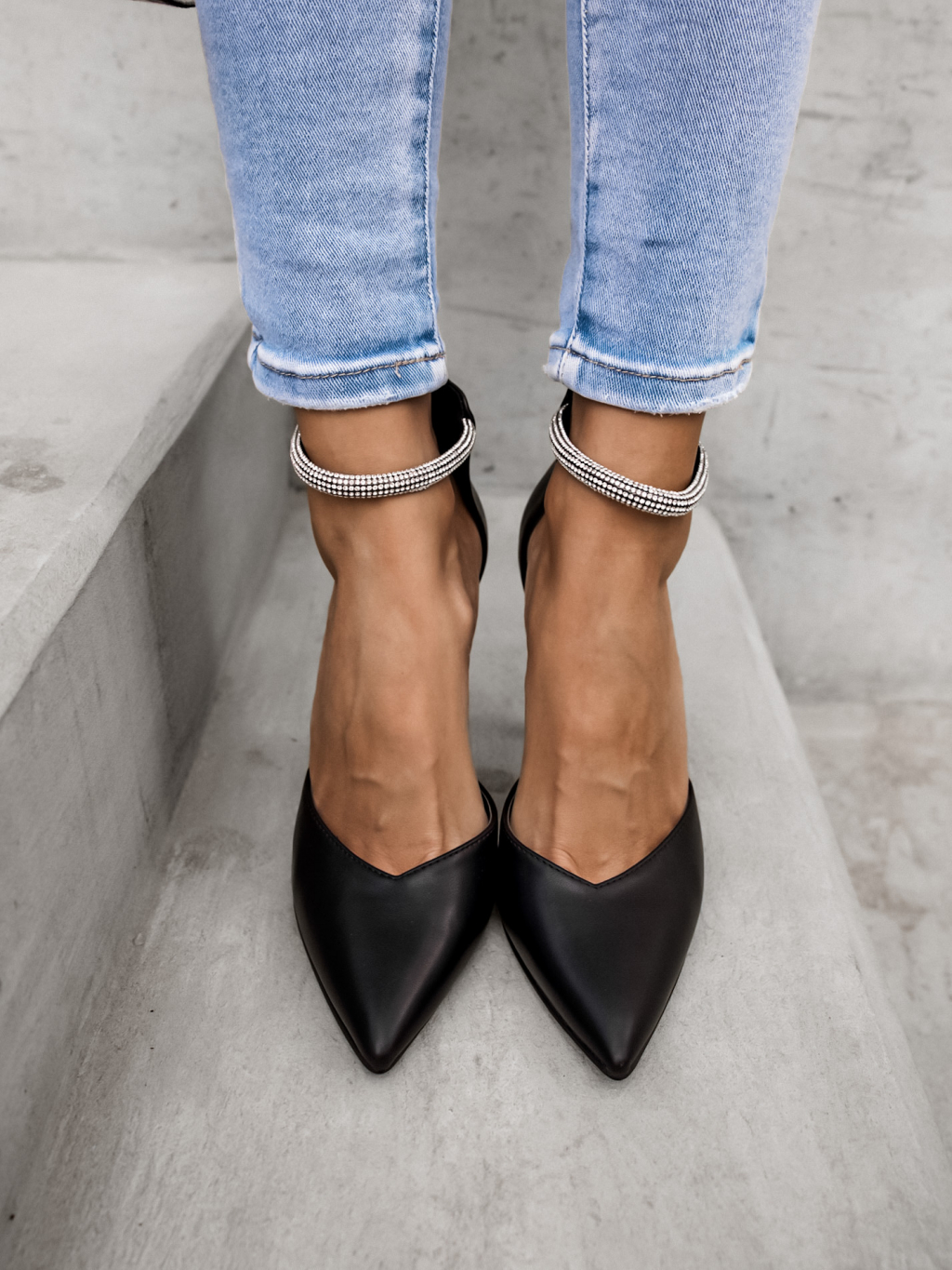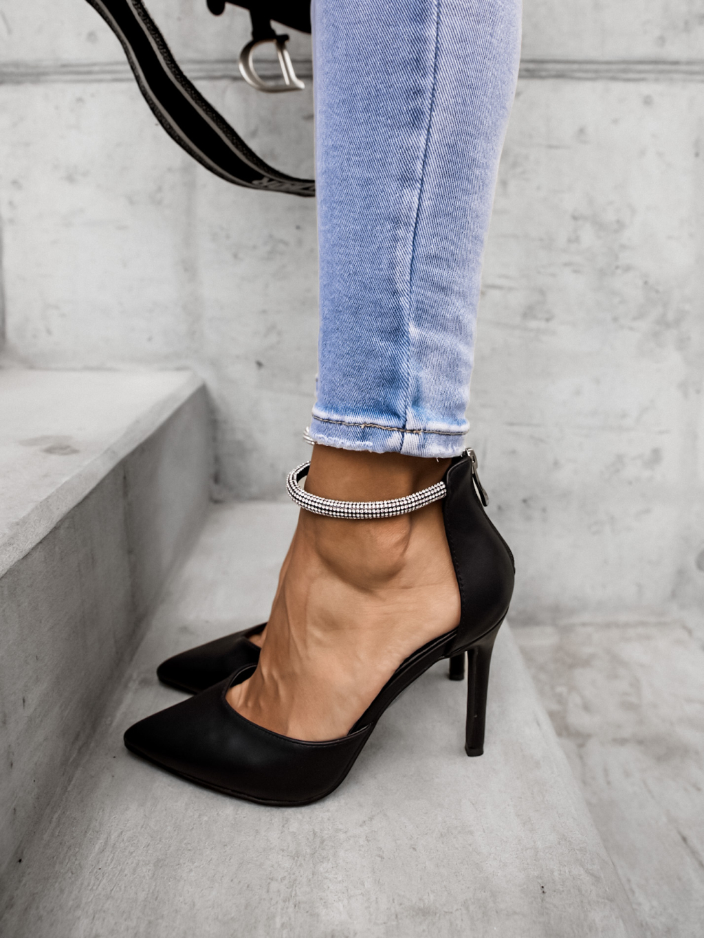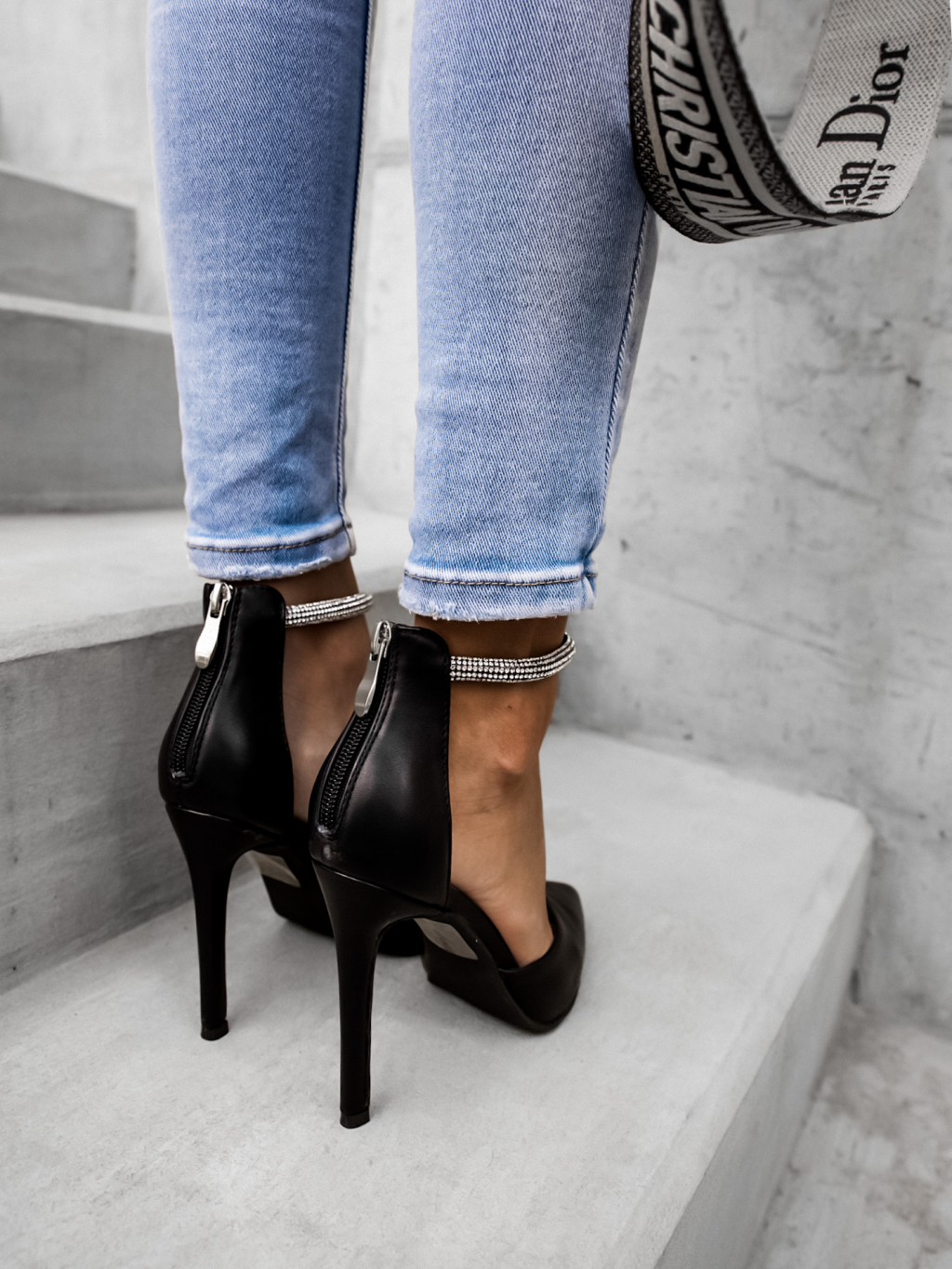 Čierne topánky na podpätku KÉLIA s trblietavým zaväzovaním