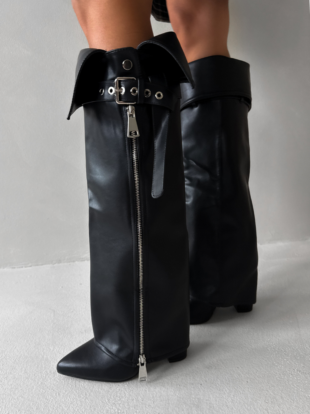 Čierne vysoké koženkové čižmy VIDIA so zipsom