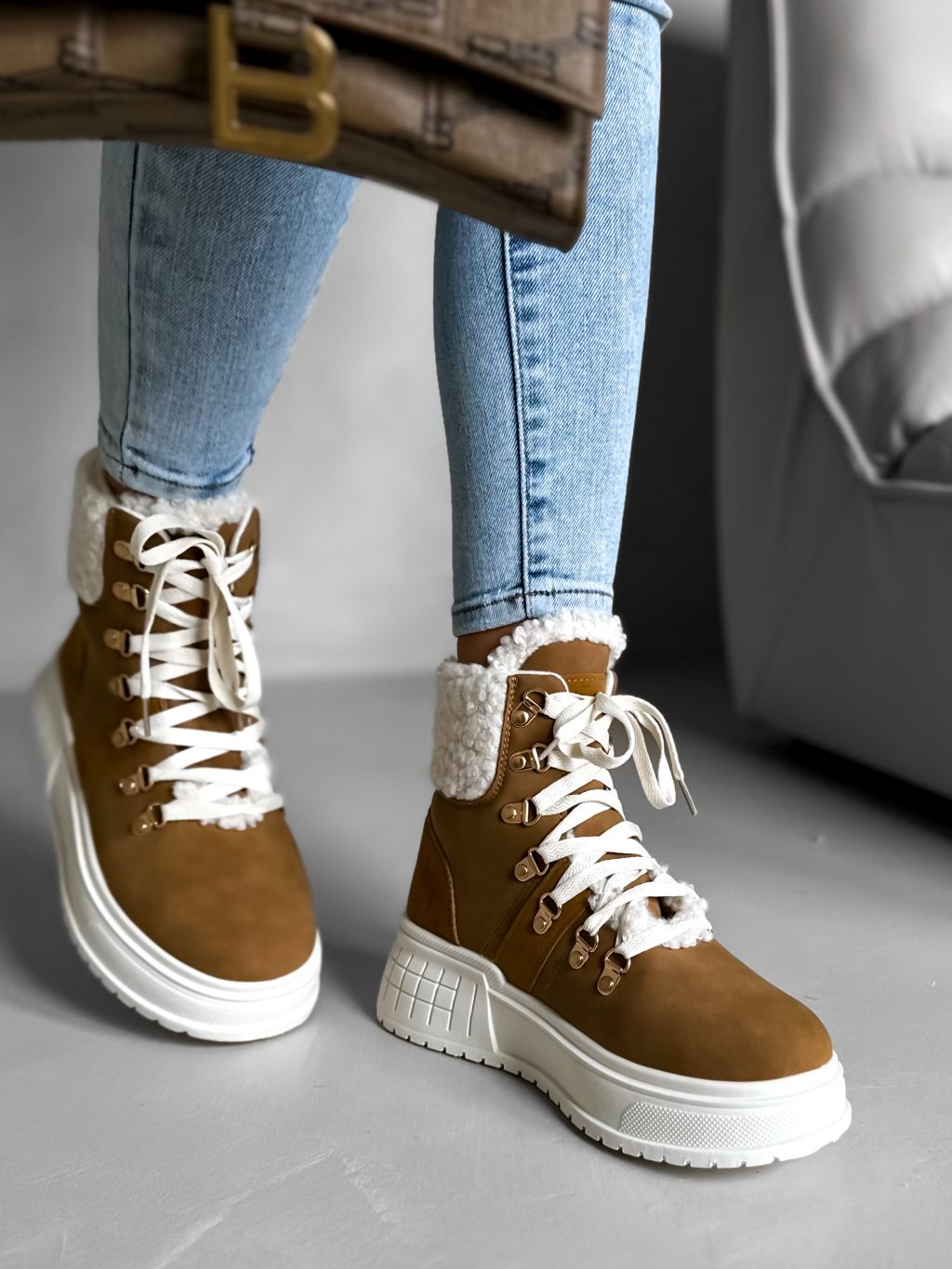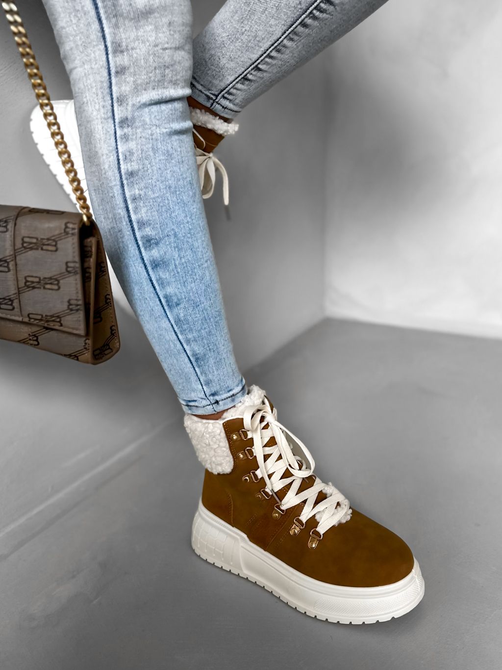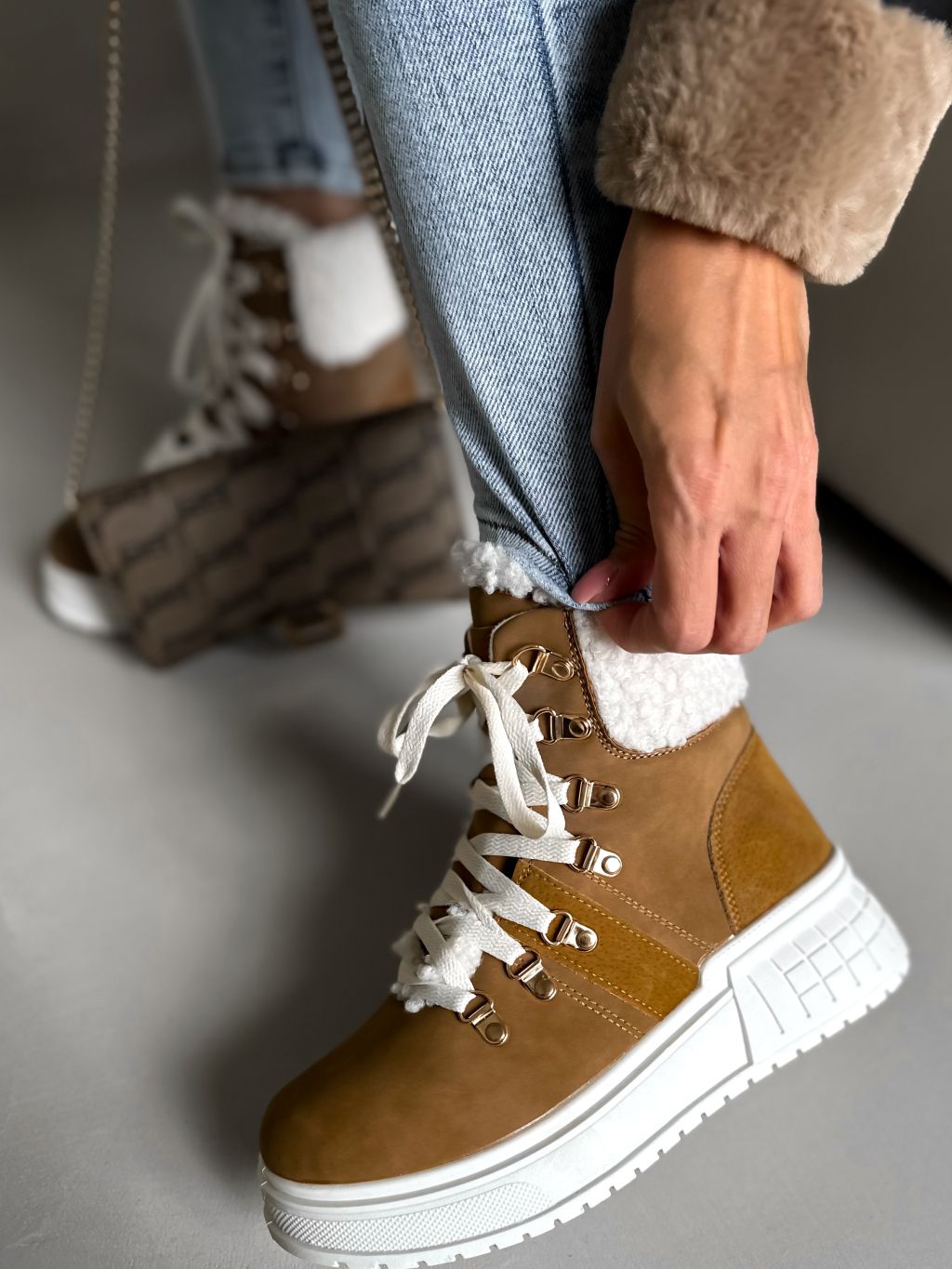 Hnedé členkové topánky BERYL s kožúškom