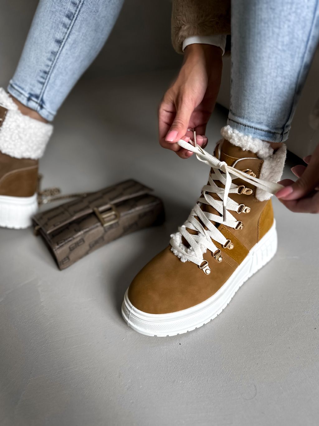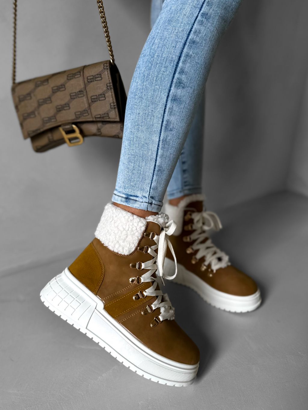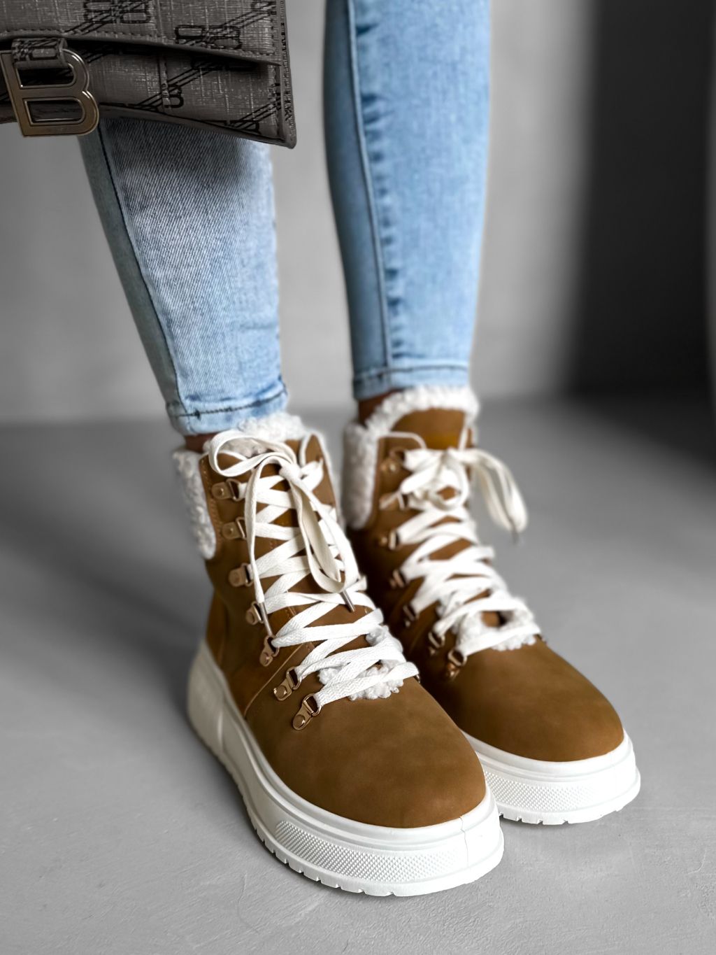 Hnedé členkové topánky BERYL s kožúškom