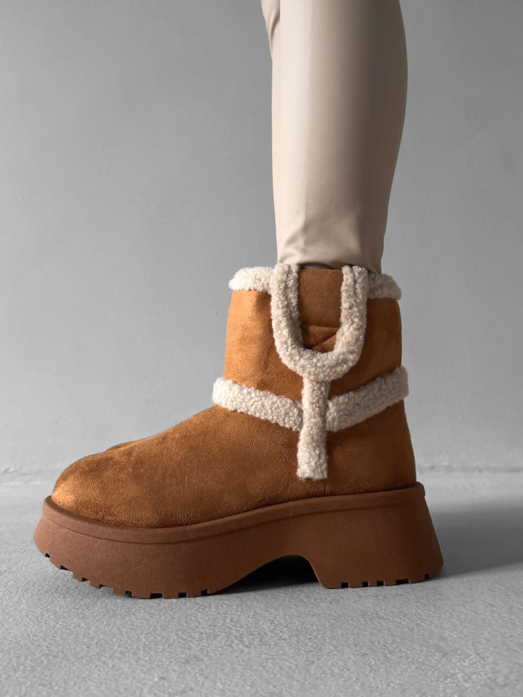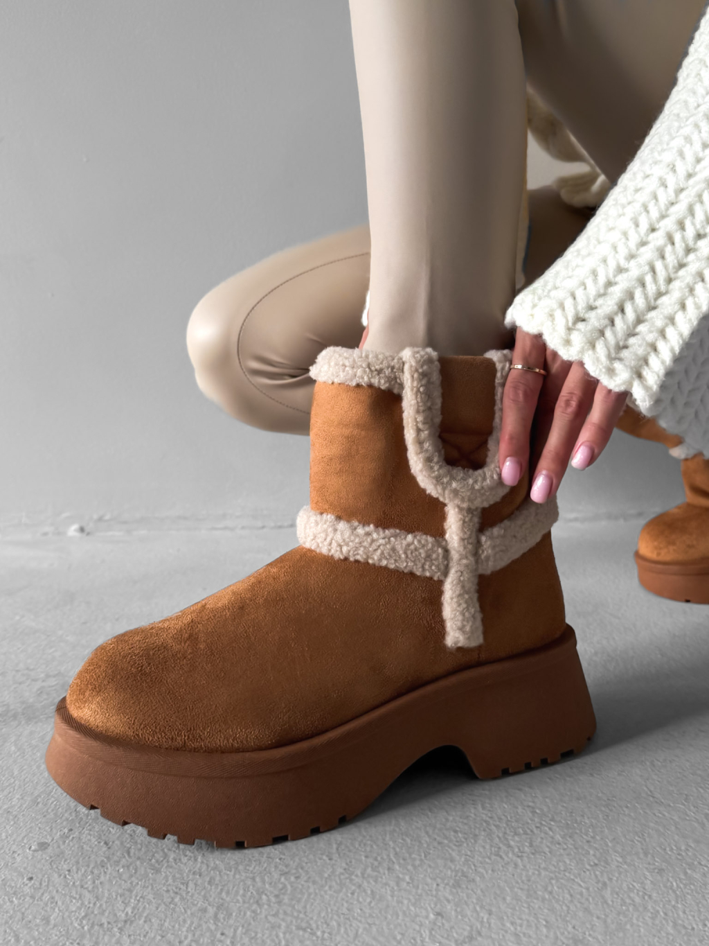 Hnedé členkové válenky TAVIRIO s kožúškom