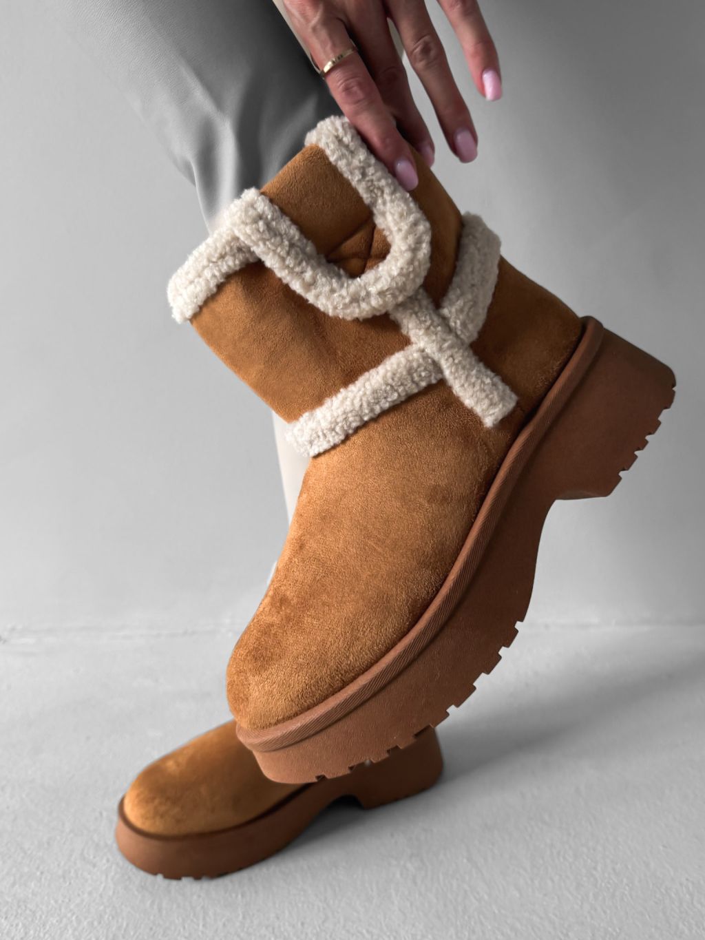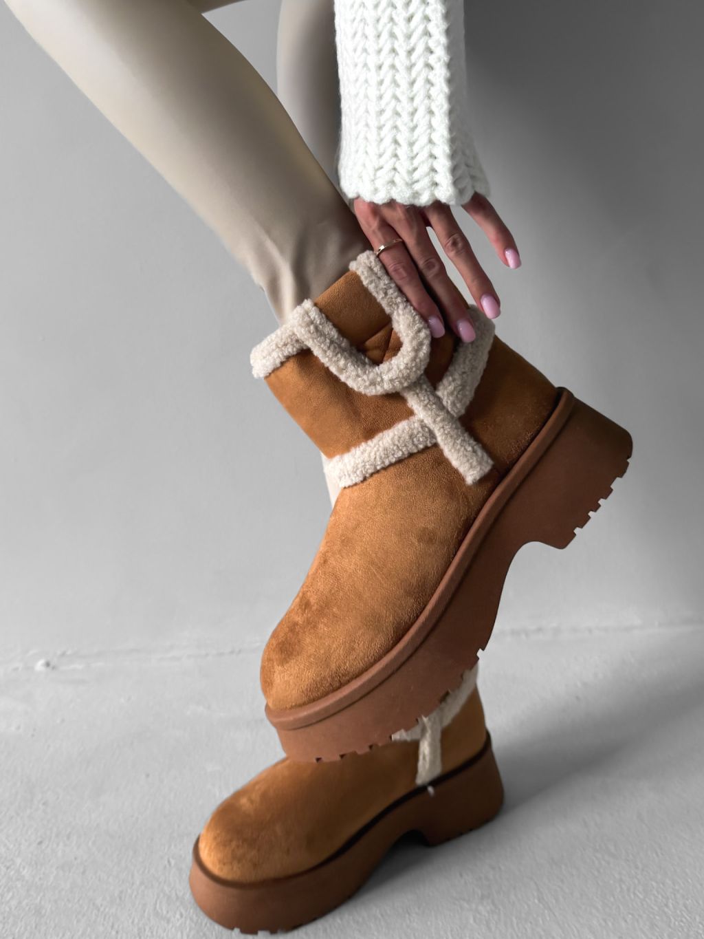 Hnedé členkové válenky TAVIRIO s kožúškom