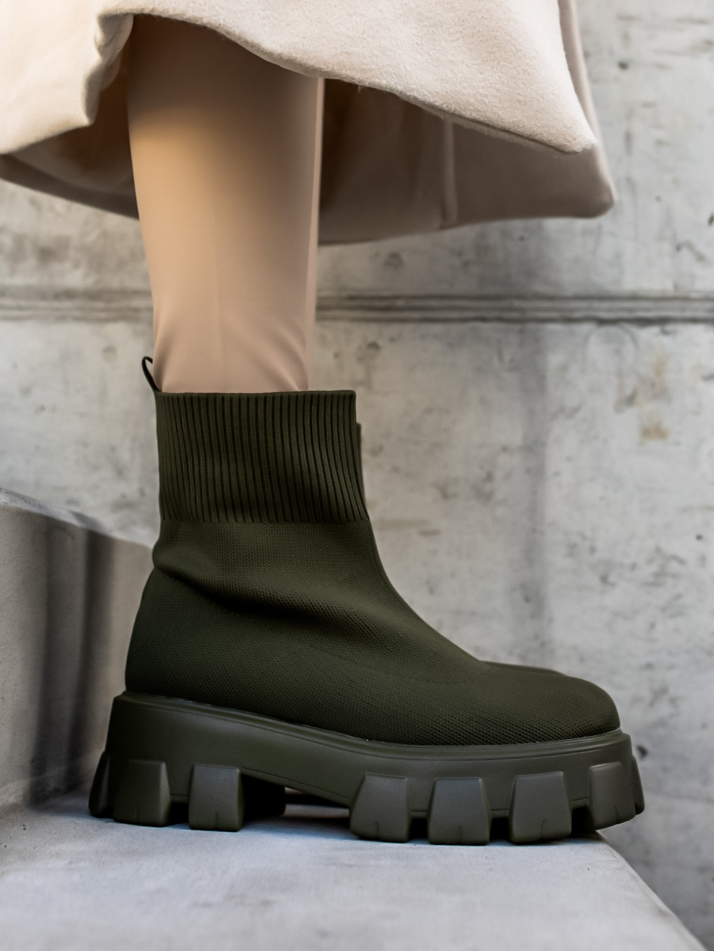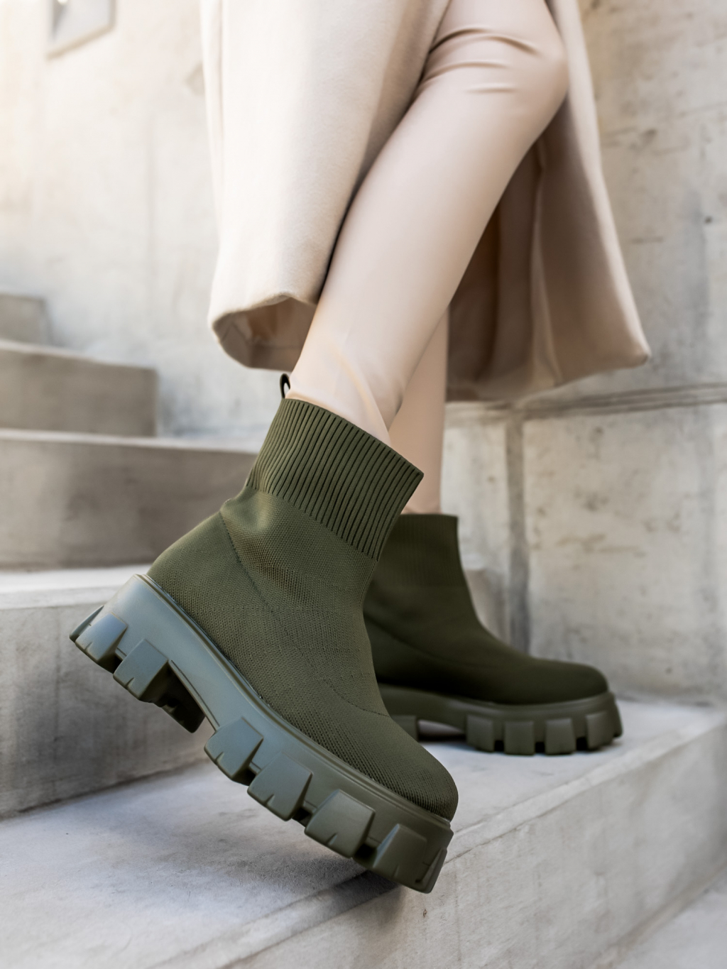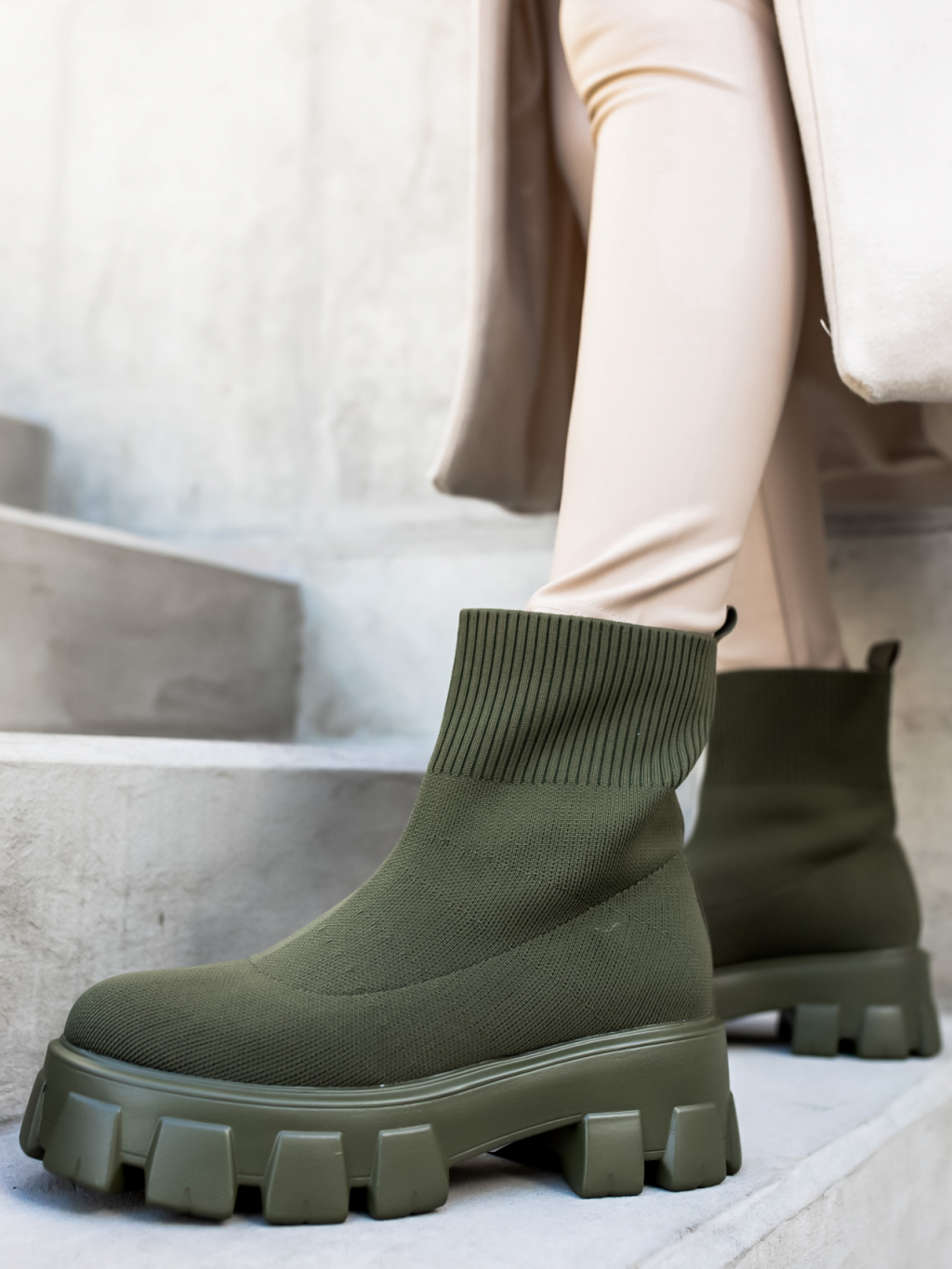 Khaki členkové topánky WILLY s vysokou podrážkou