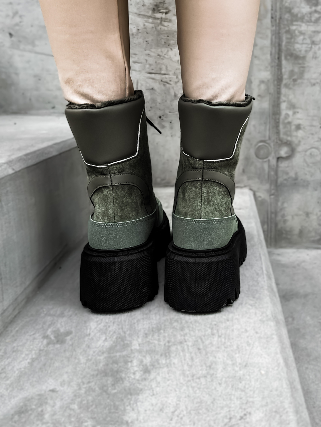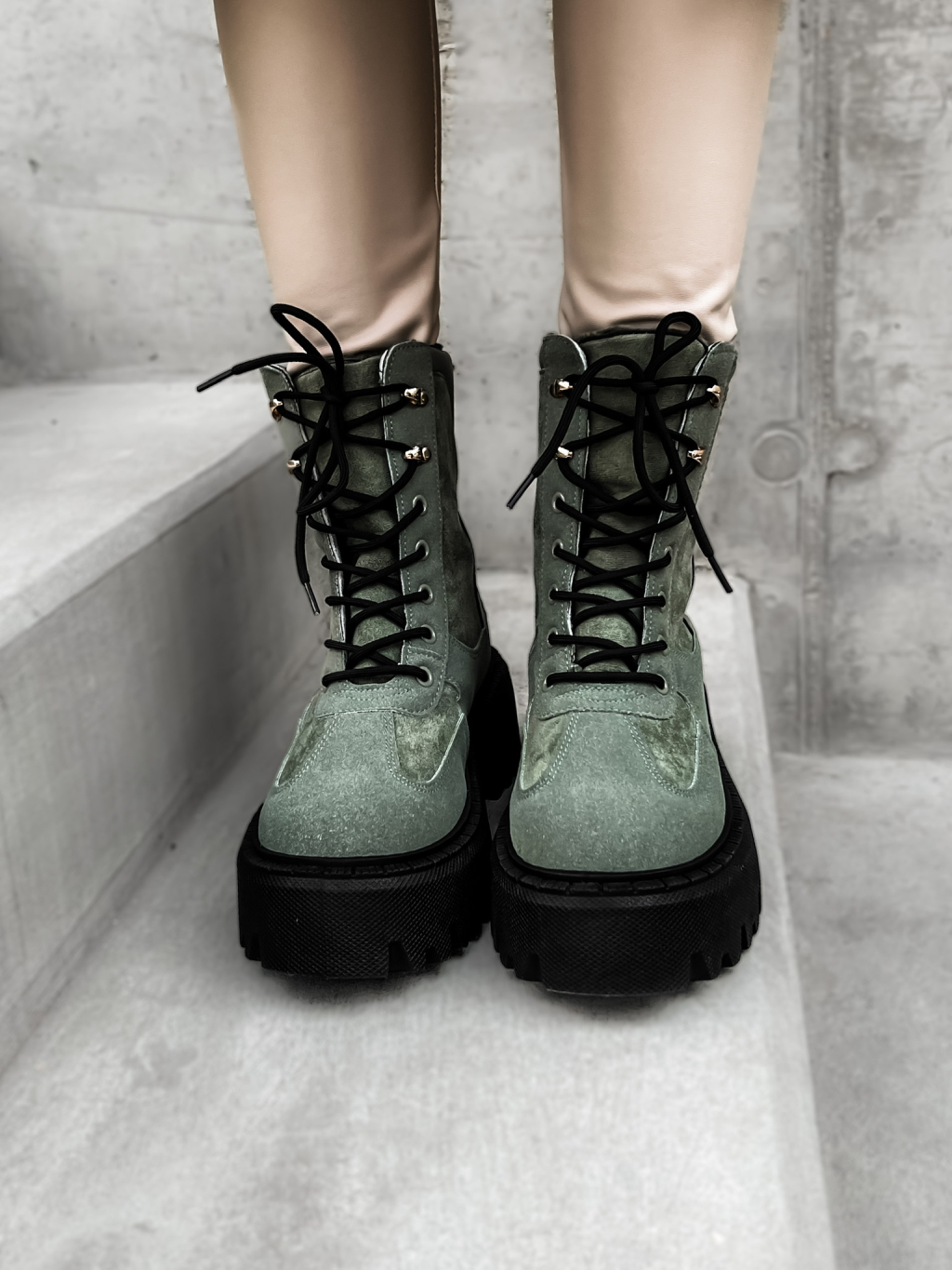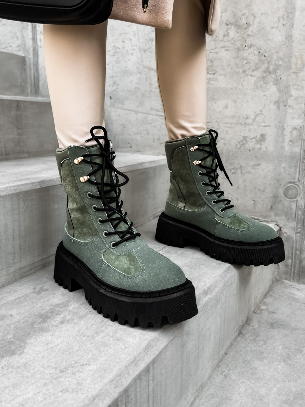 Khaki semišové členkové topánky GROVEY s vysokou podrážkou