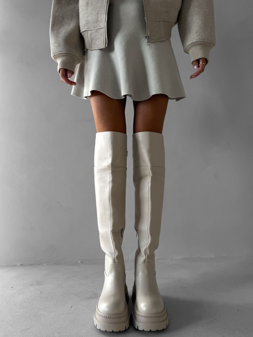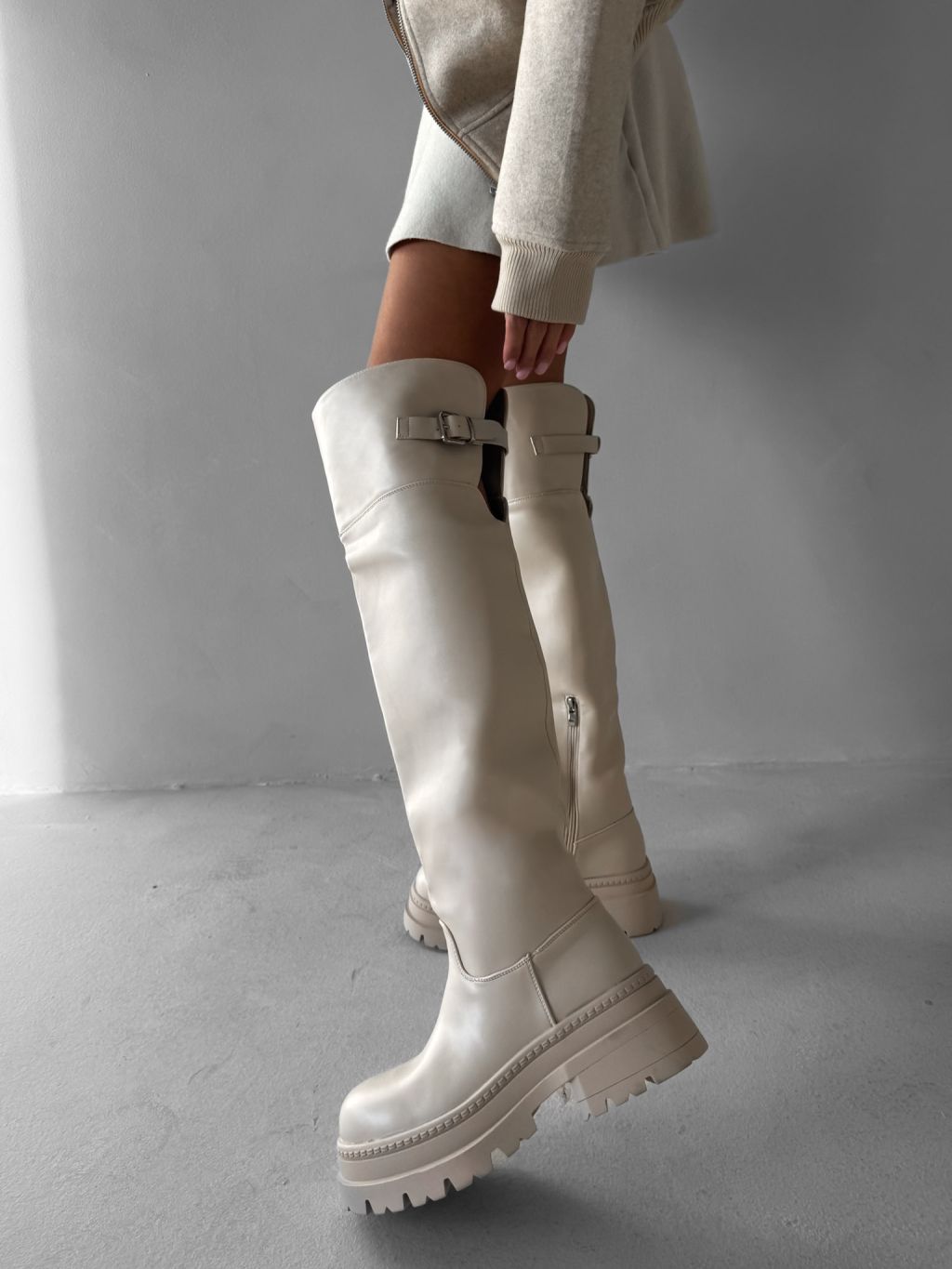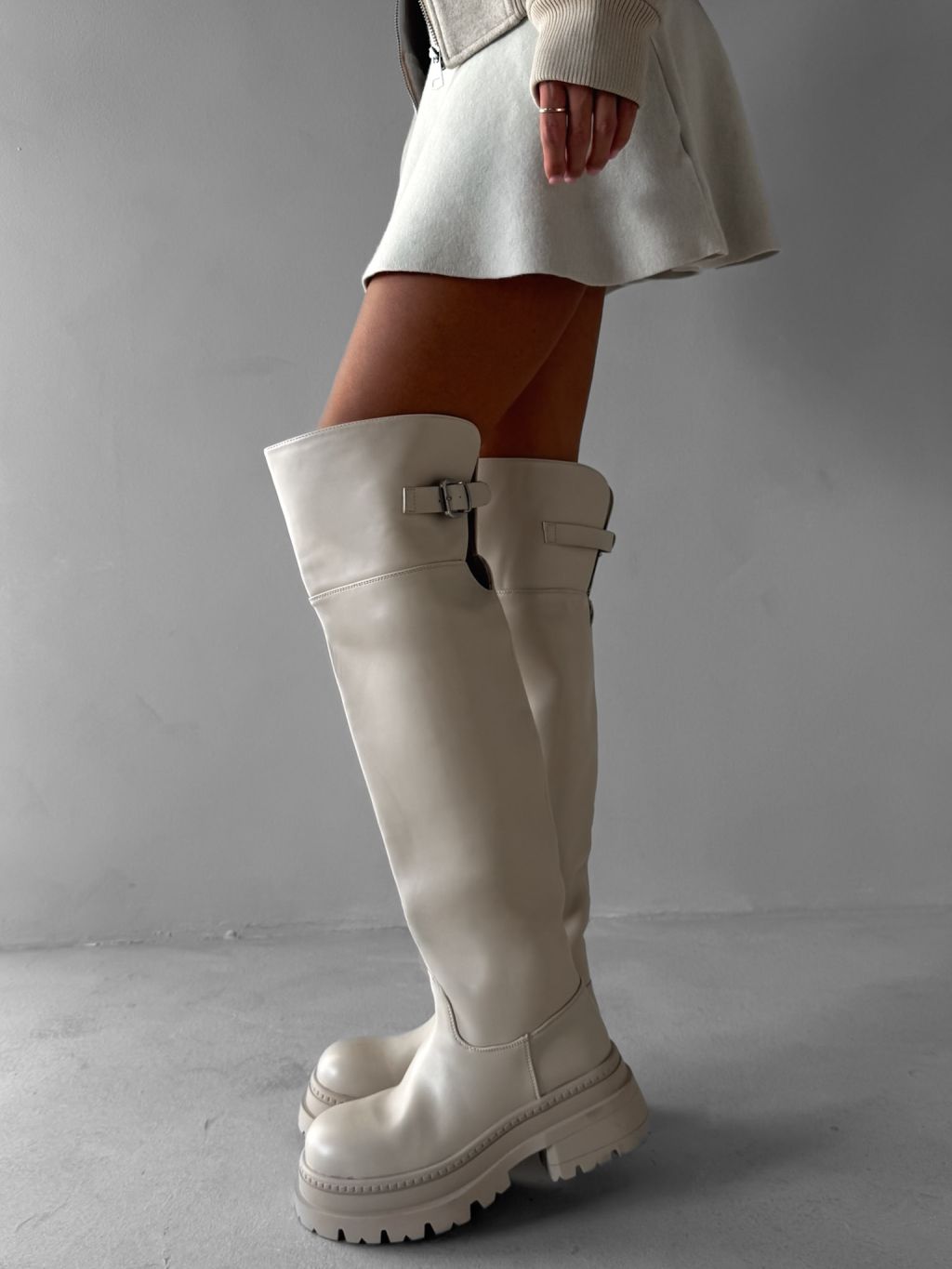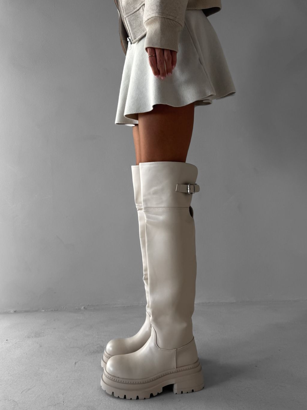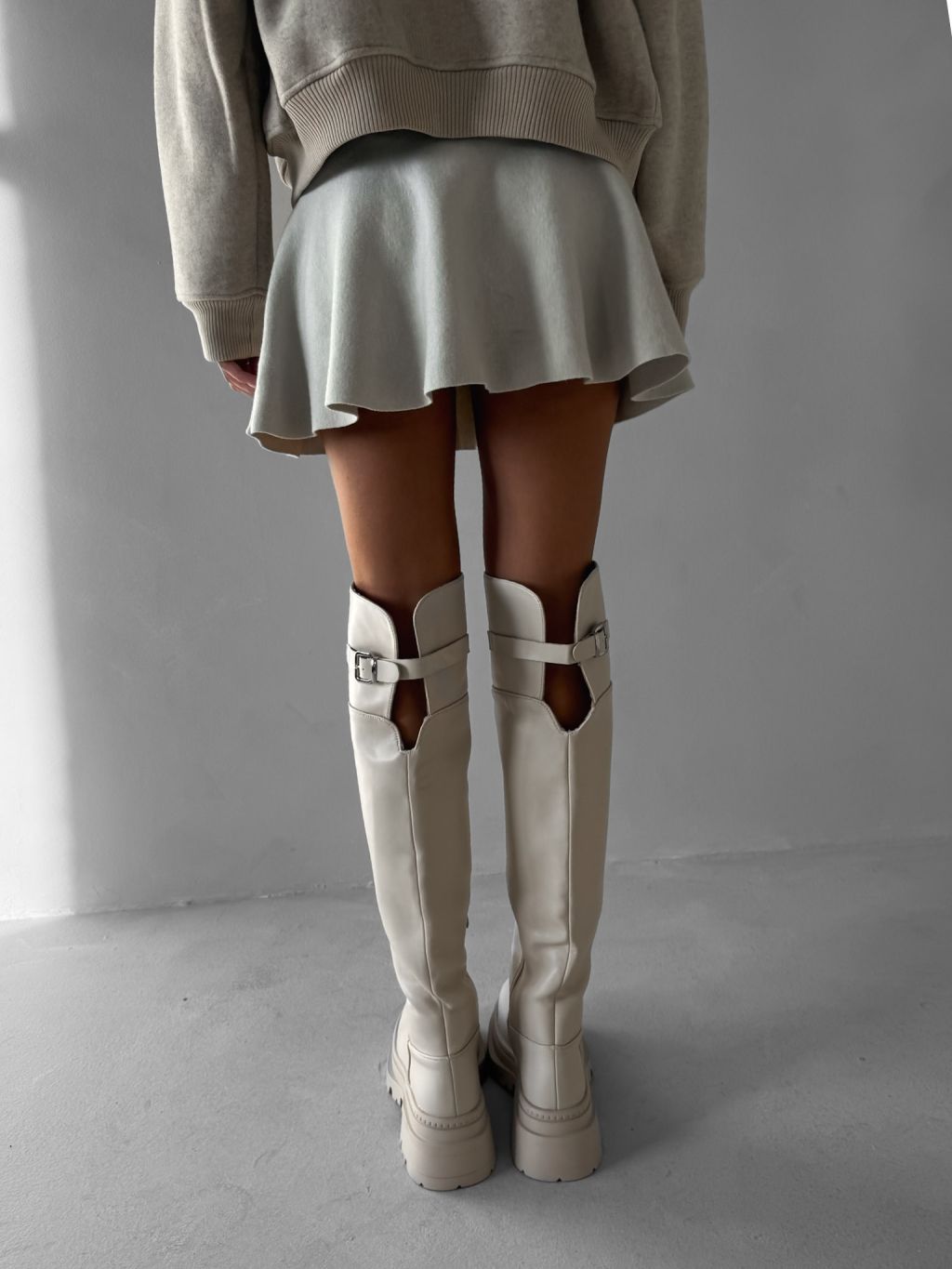 Krémové vysoké čižmy MAVINE nad kolená s prackou