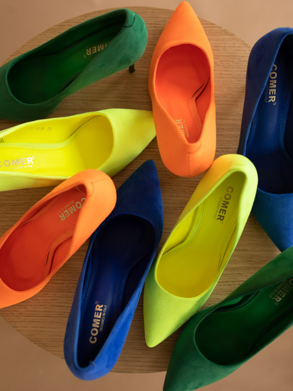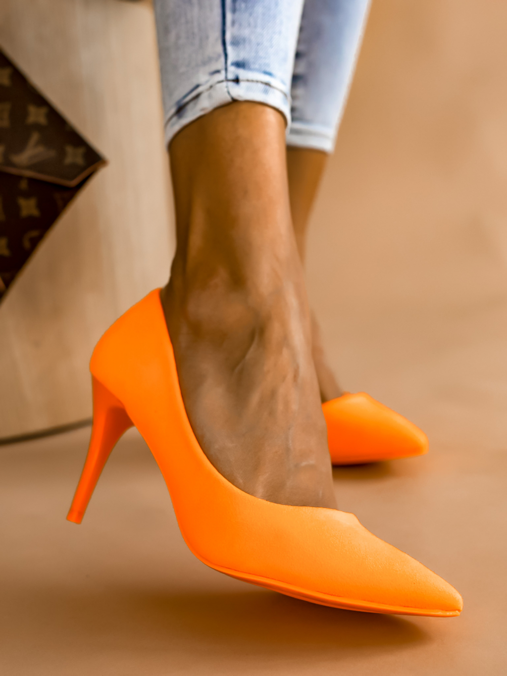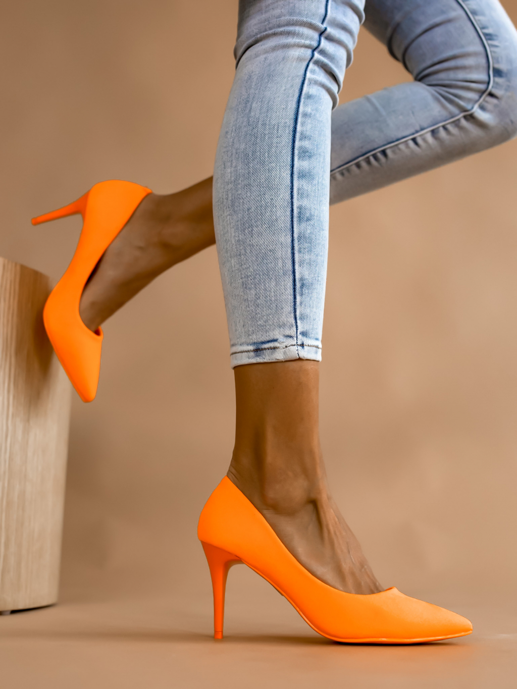 Neónovo oranžové topánky na podpätku SHELLY
