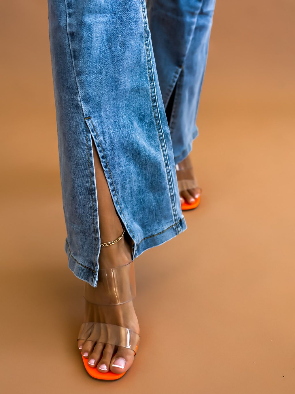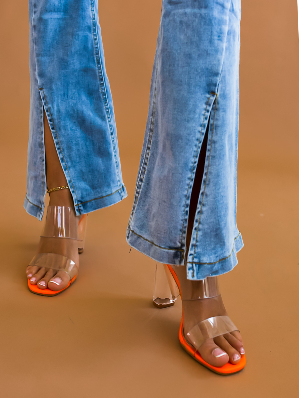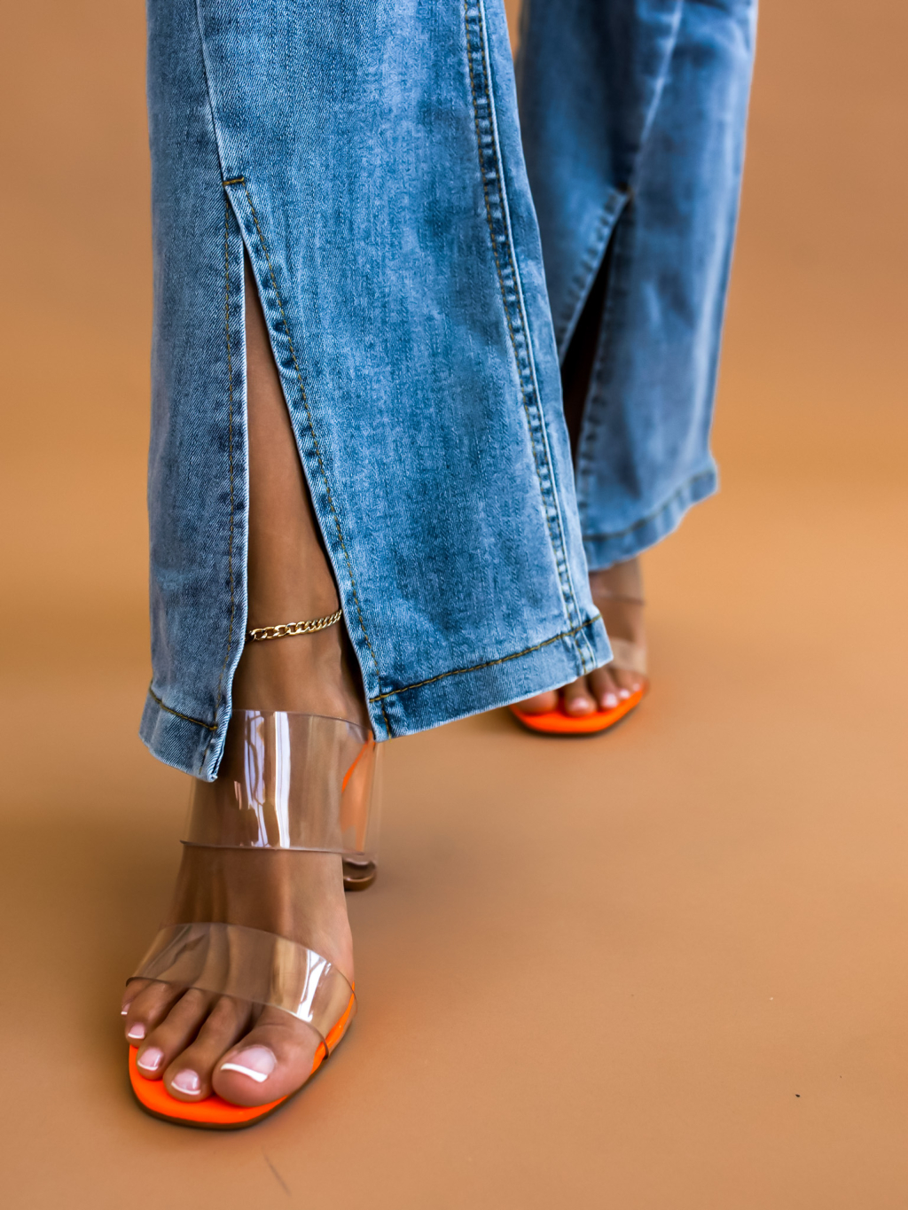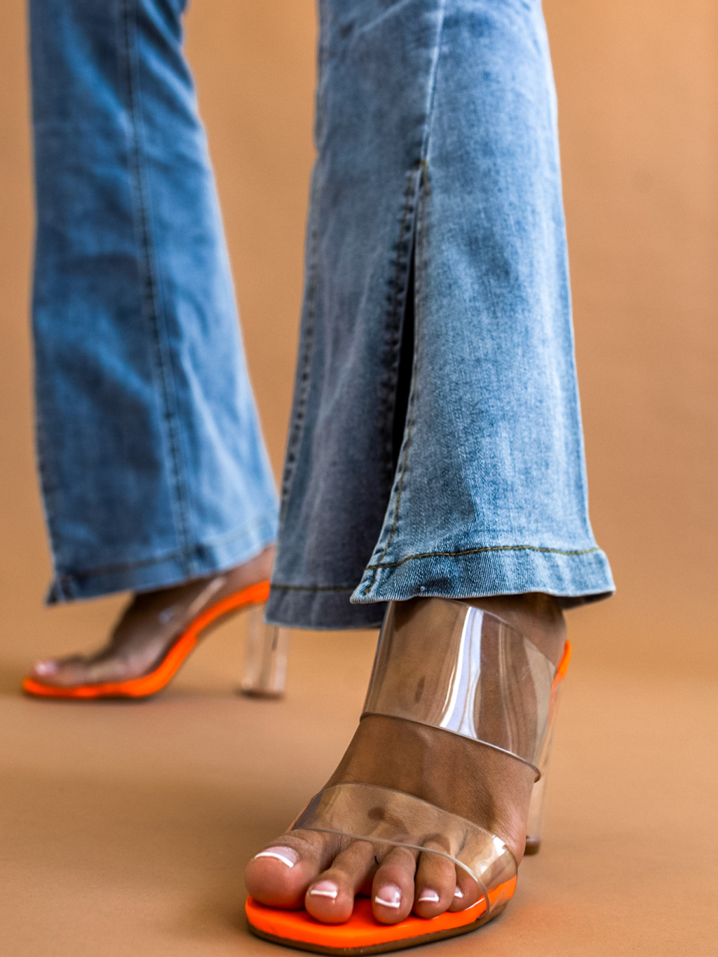 Oranžové topánky na podpätku KASIE s transparentnými páskami