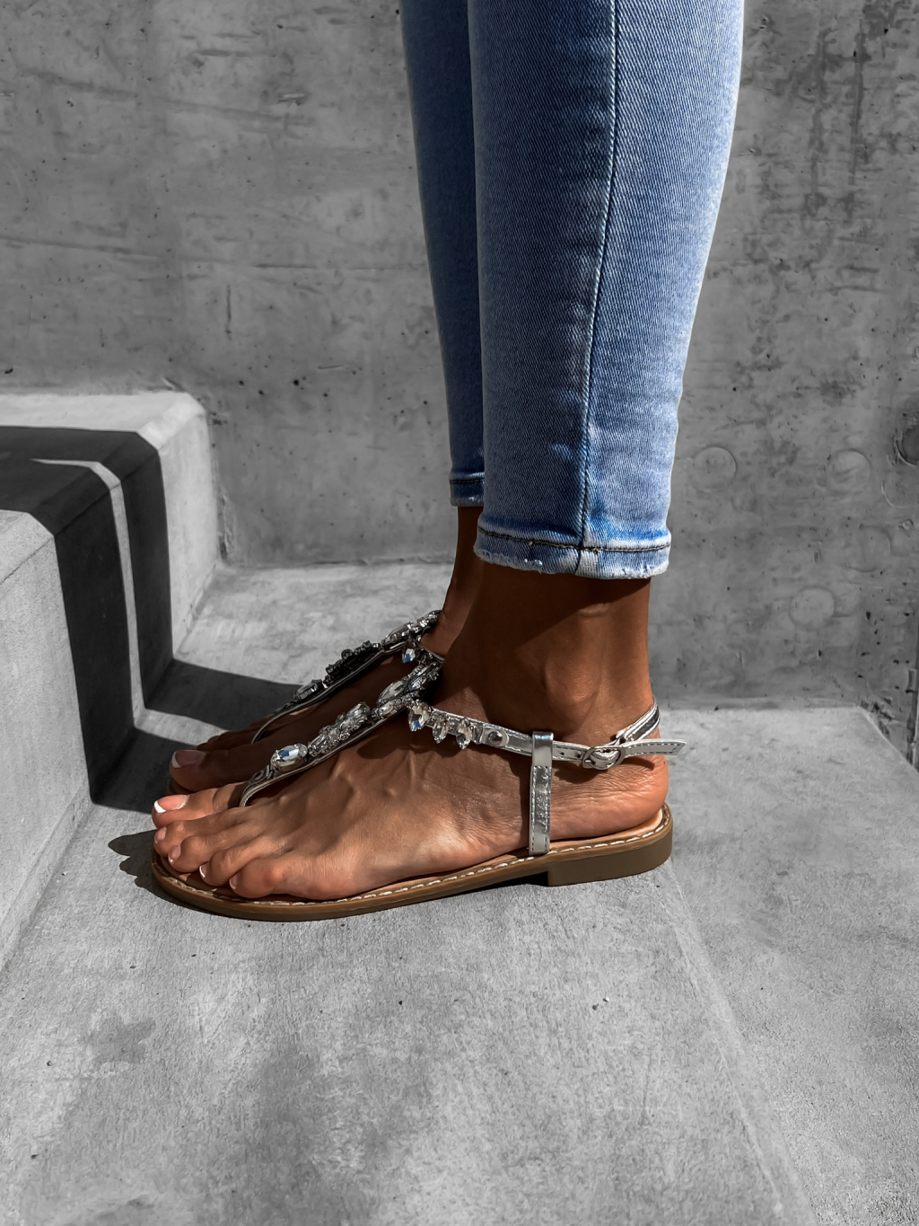 Strieborné sandálky TIANE s trblietavými kamienkami