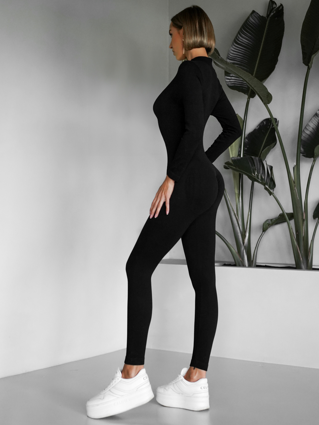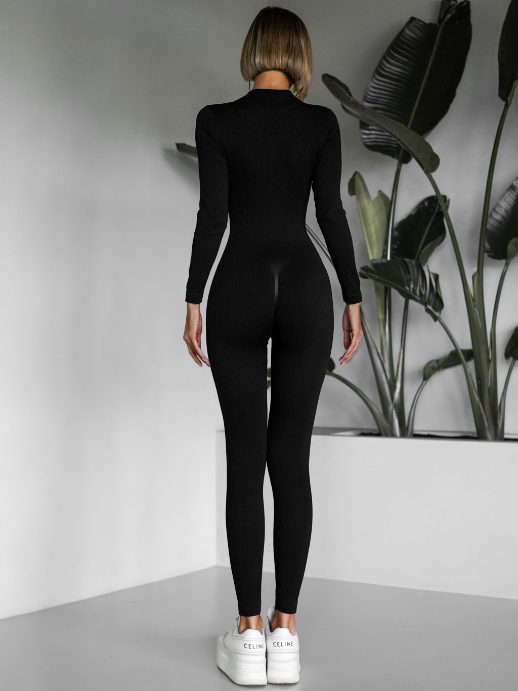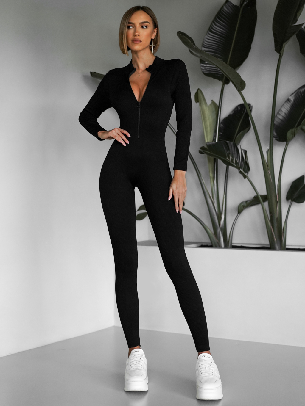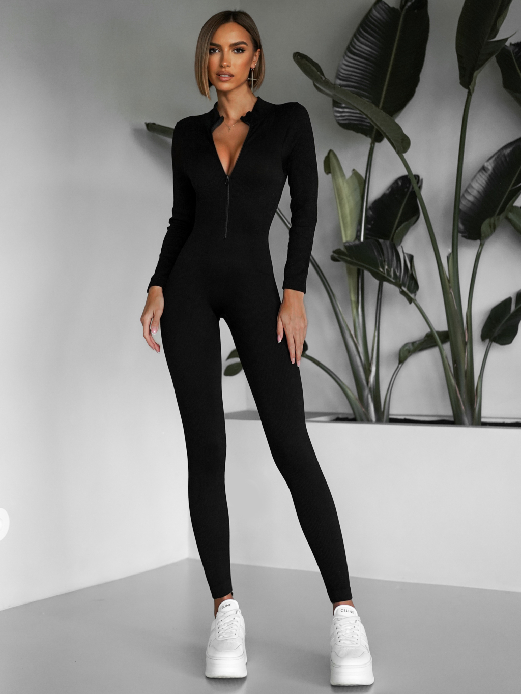 Čierny sťahujúci dlhý basic overal JULIETAS so zipsom