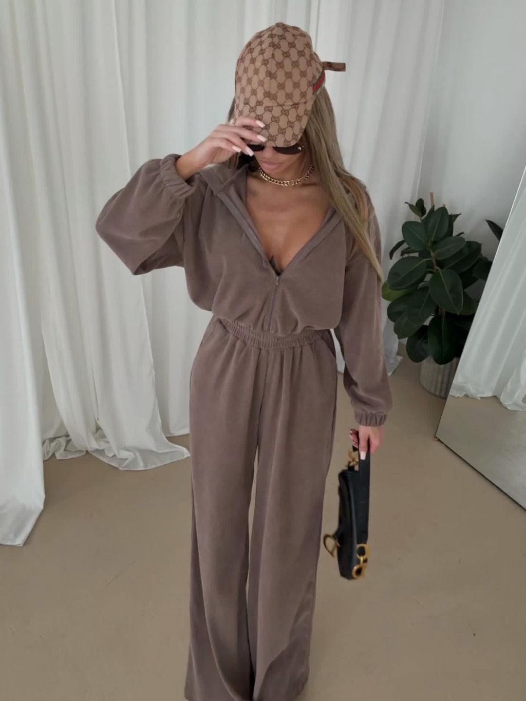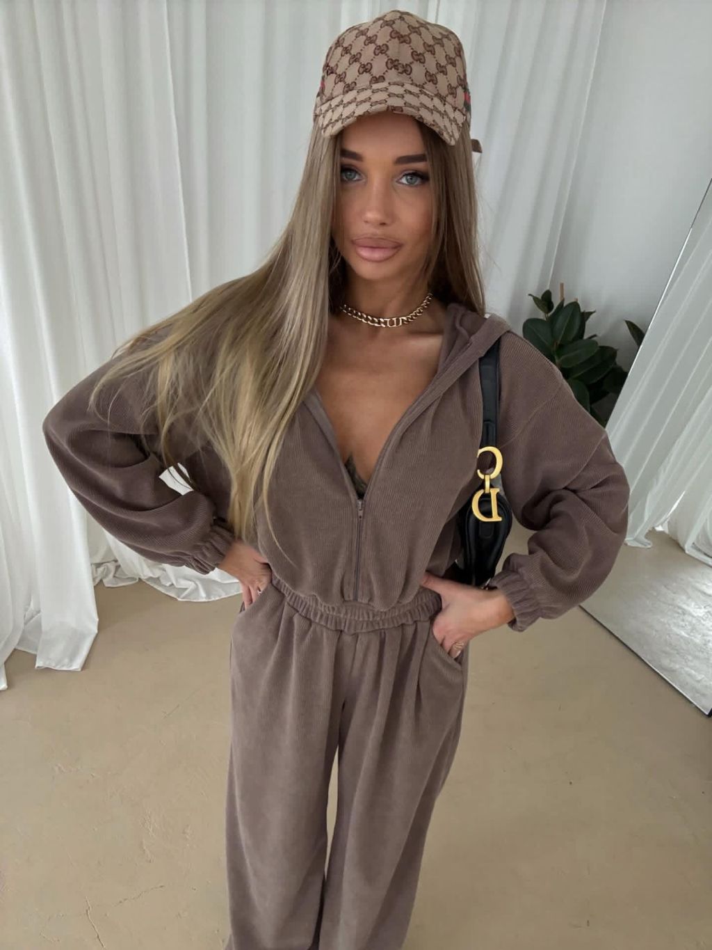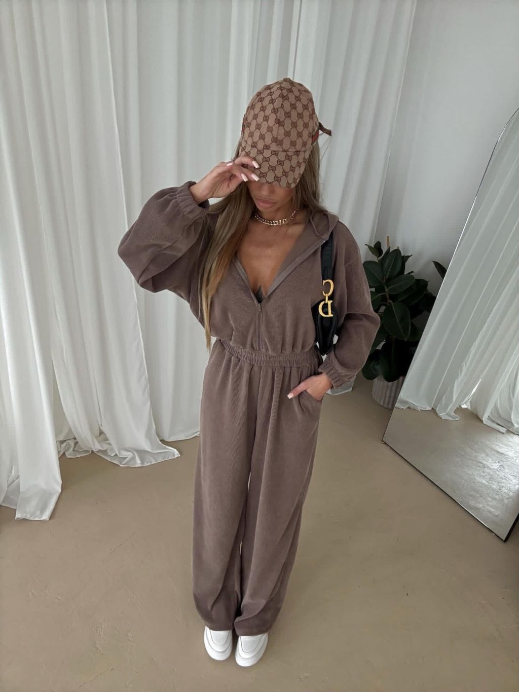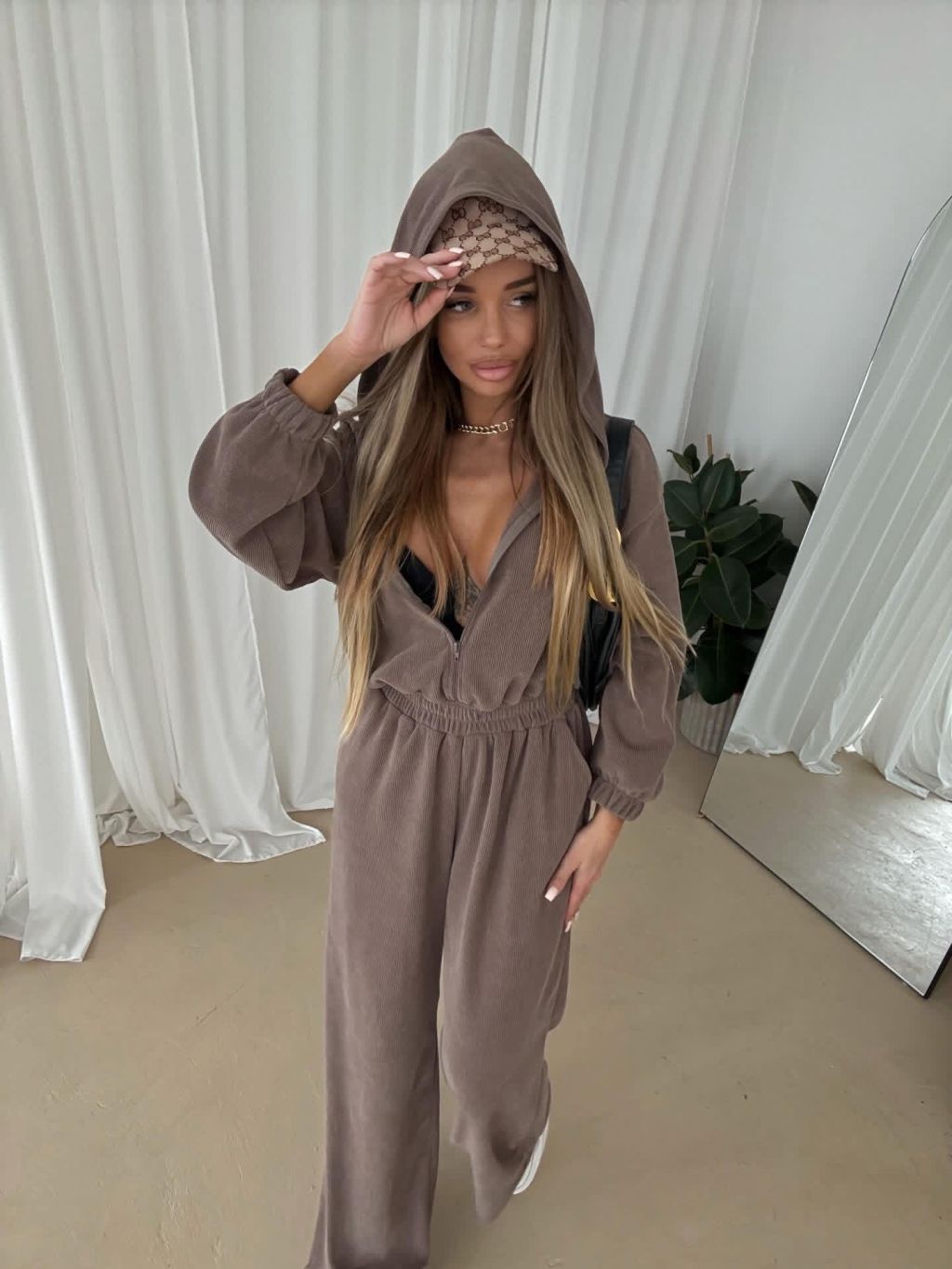 Hnedý dlhý luxusný overal VYXEN s kapucňou