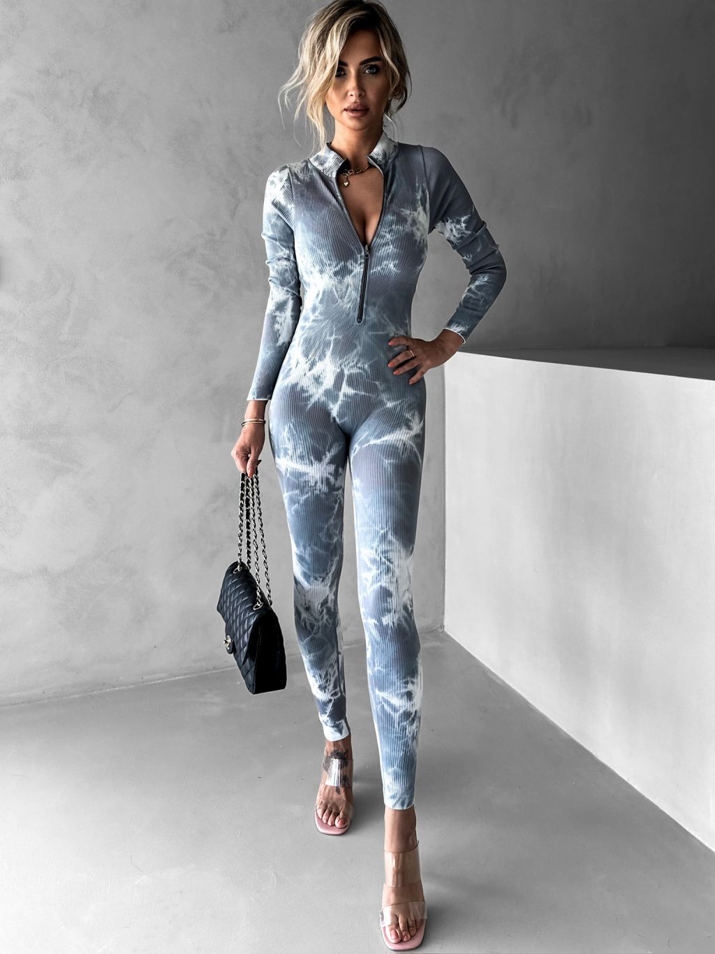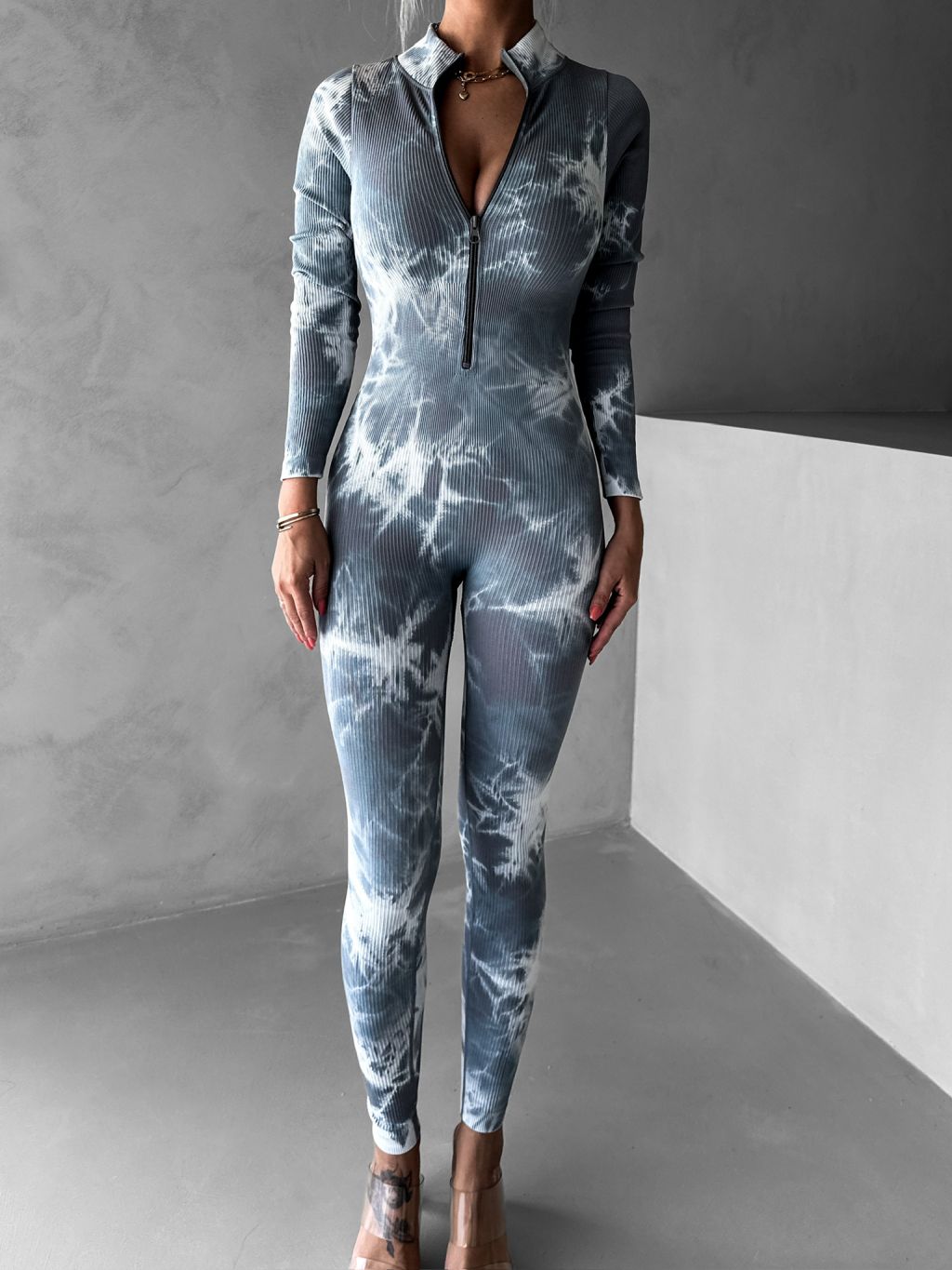 Šedý sťahujúci dlhý overal REXAL so zipsom