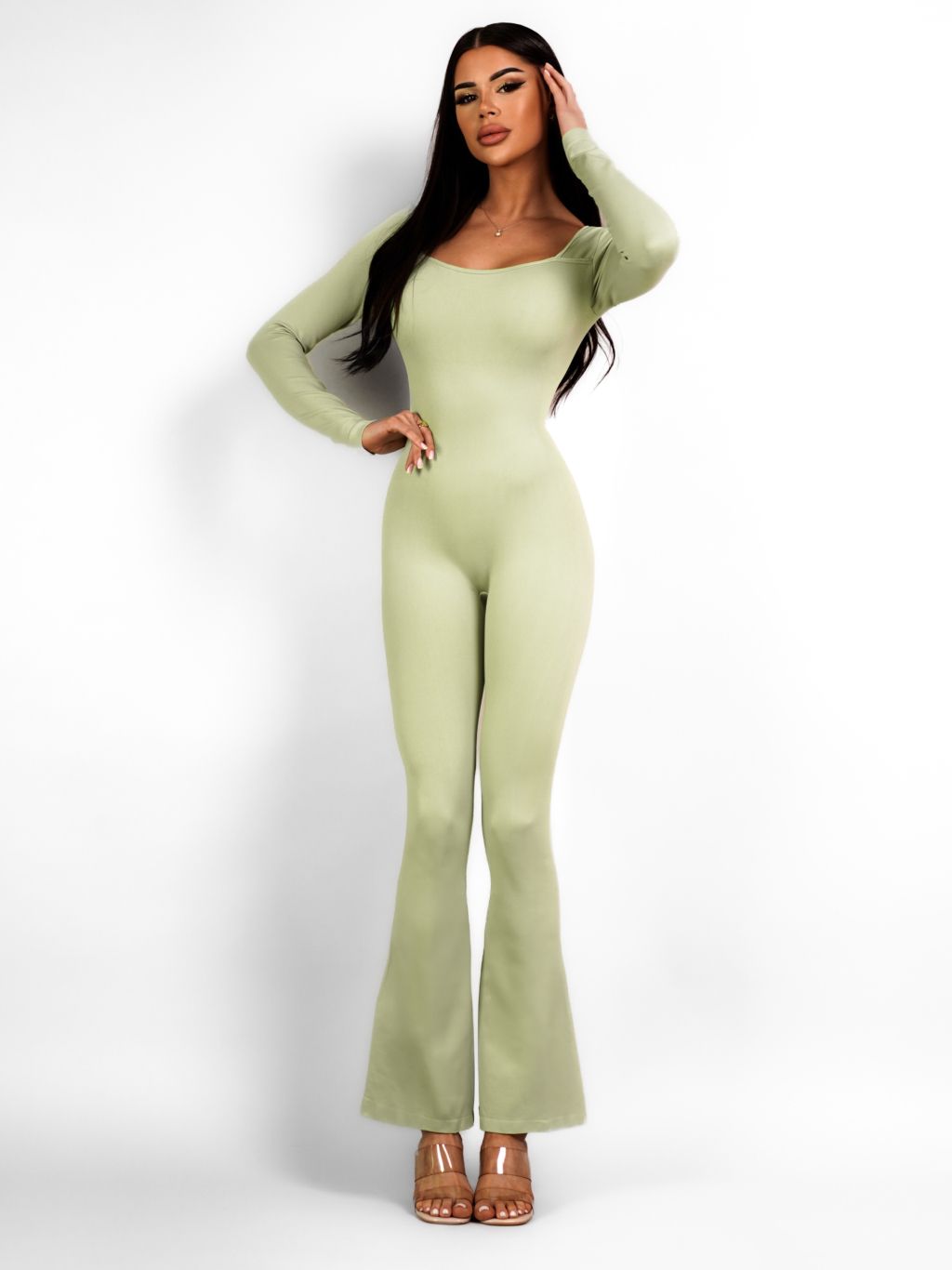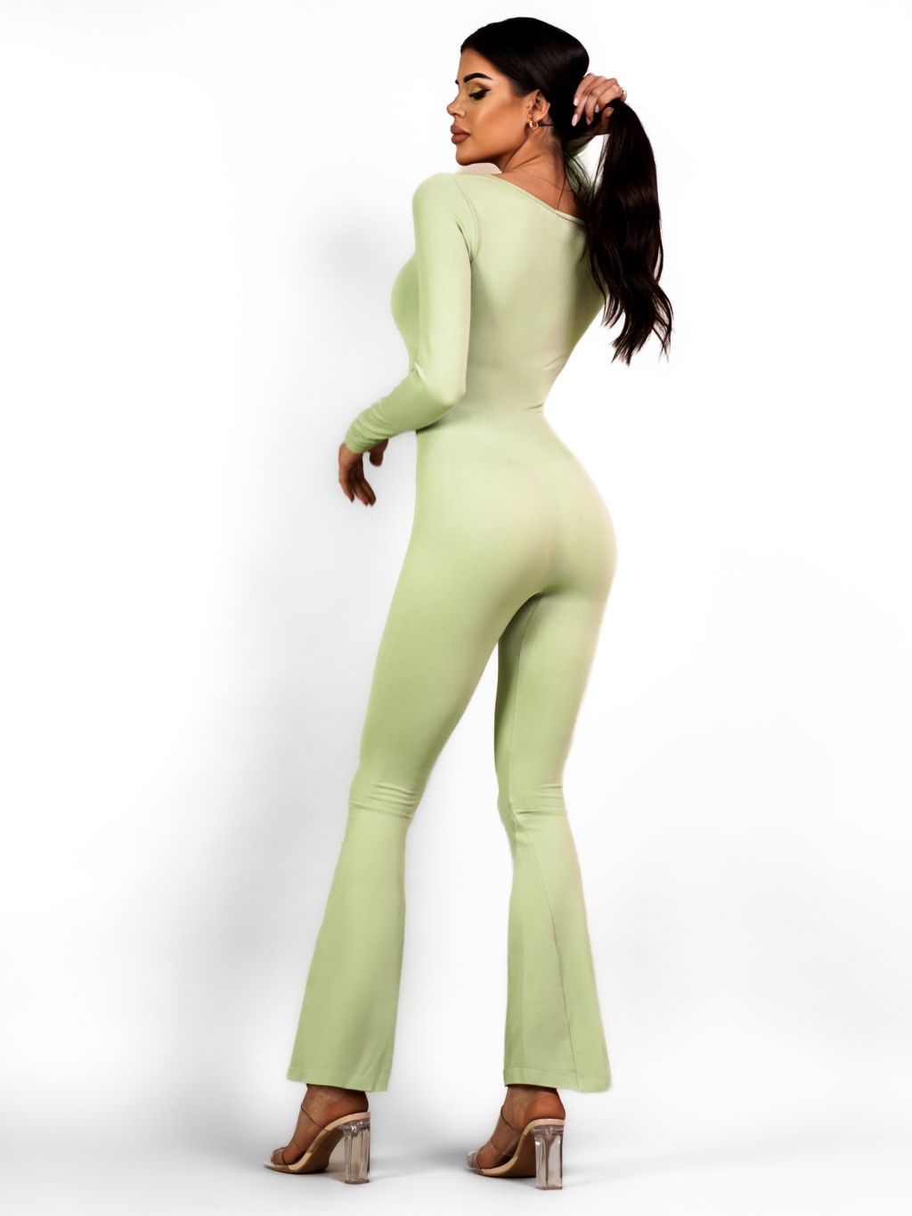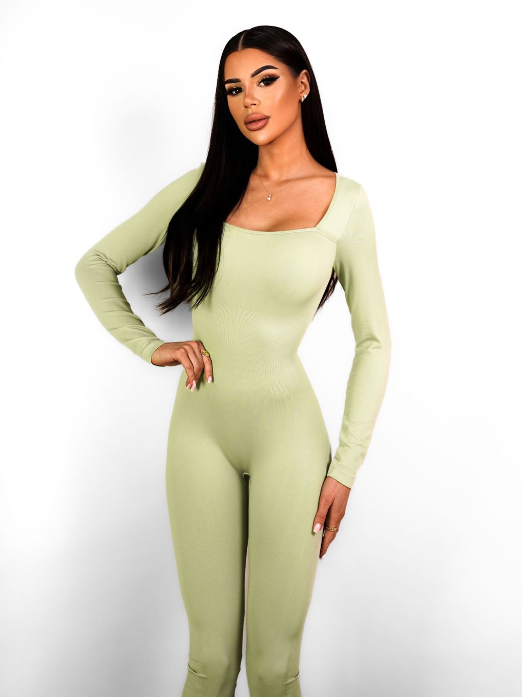 Světle zelený tvarující dlouhý stahovací overal AVEIRO (Veľkosť M/L)