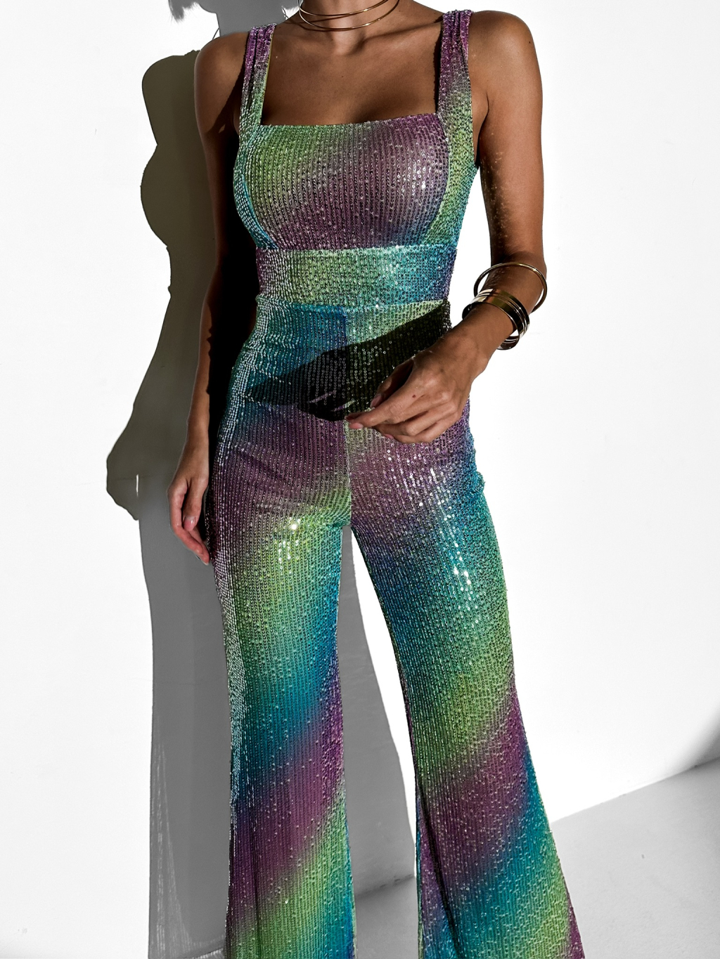 Farebný trblietavý spoločenský flitrovaný overal OFELIA