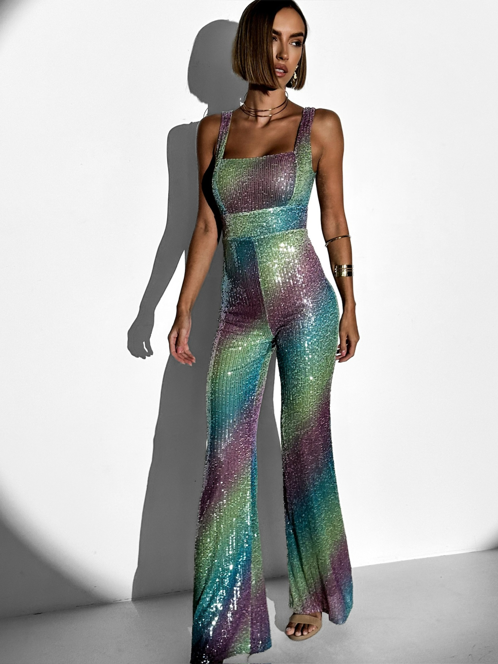 Farebný trblietavý spoločenský flitrovaný overal OFELIA