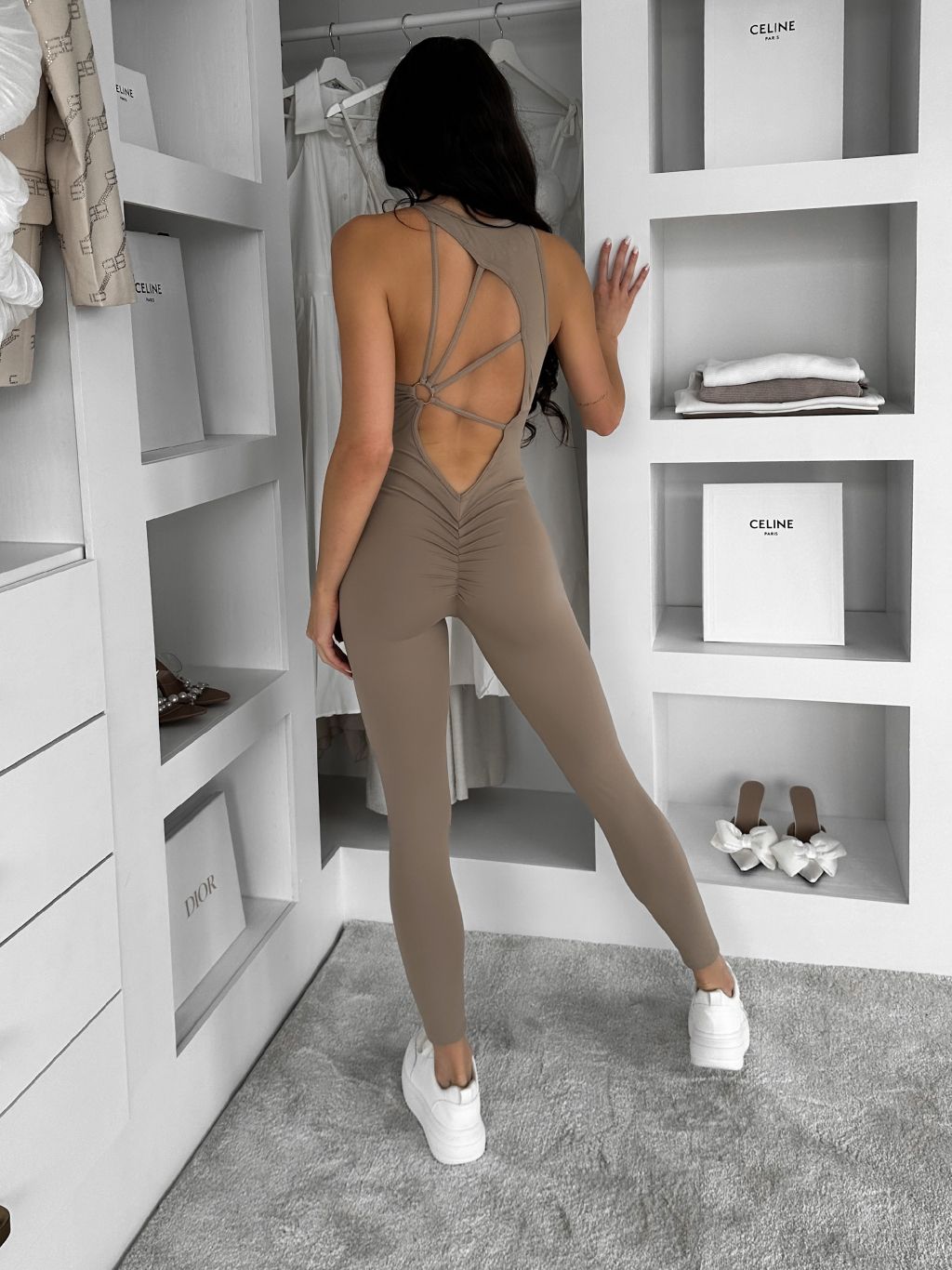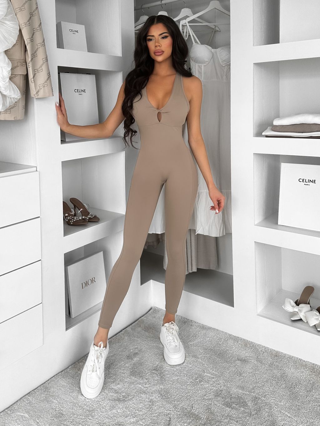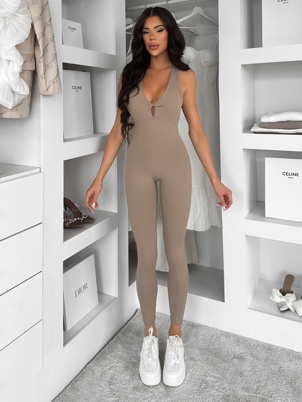 Béžový tvarujúci dlhý overal ROSELA