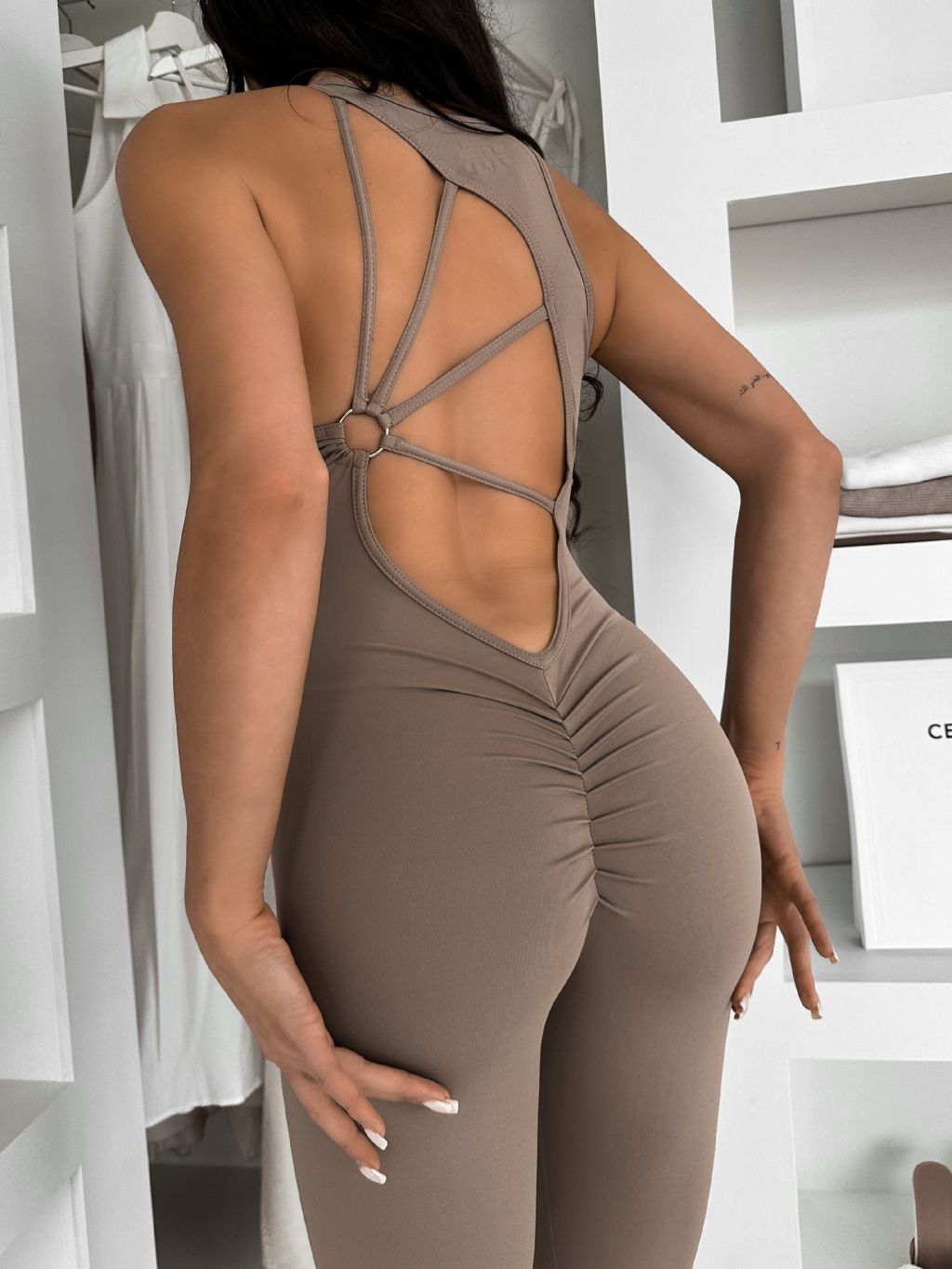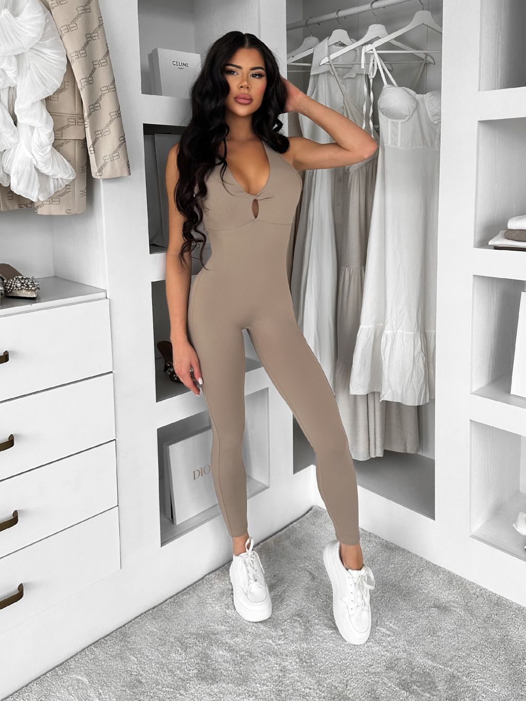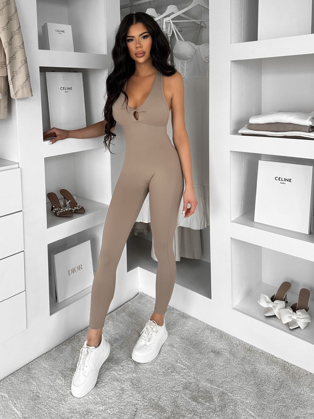 Béžový tvarujúci dlhý overal ROSELA