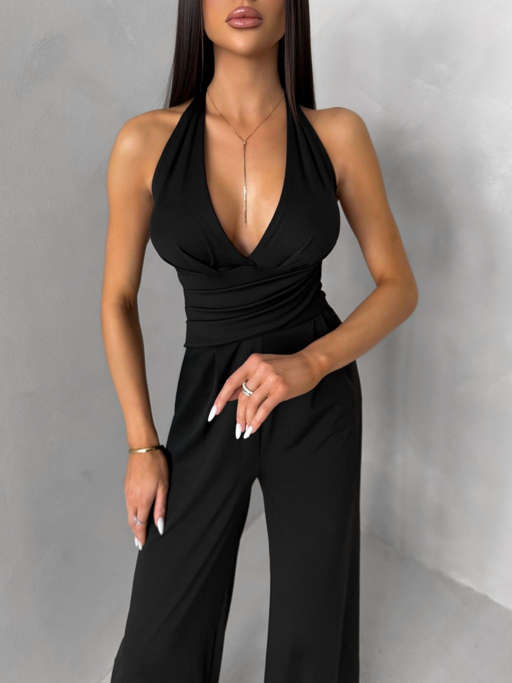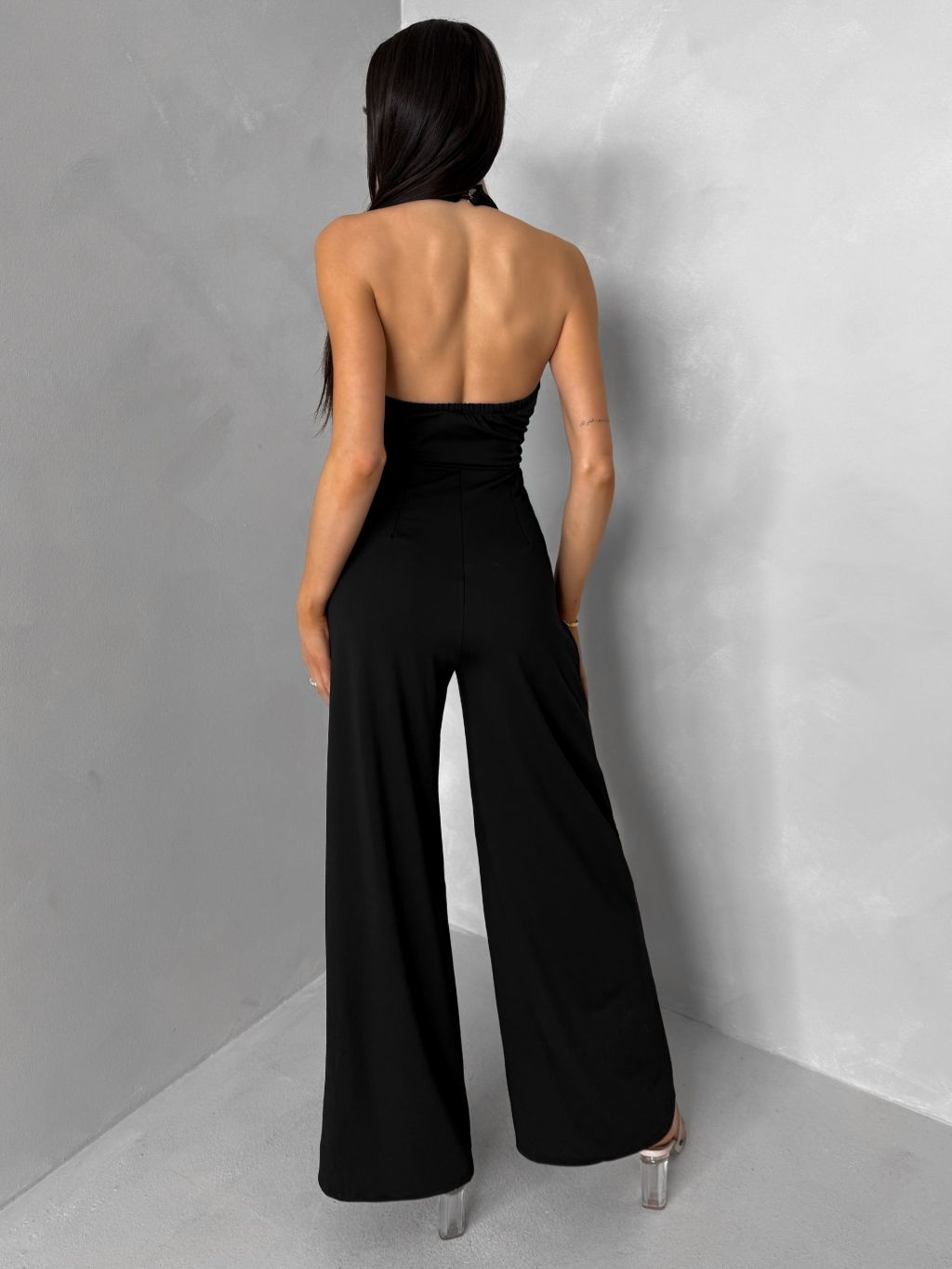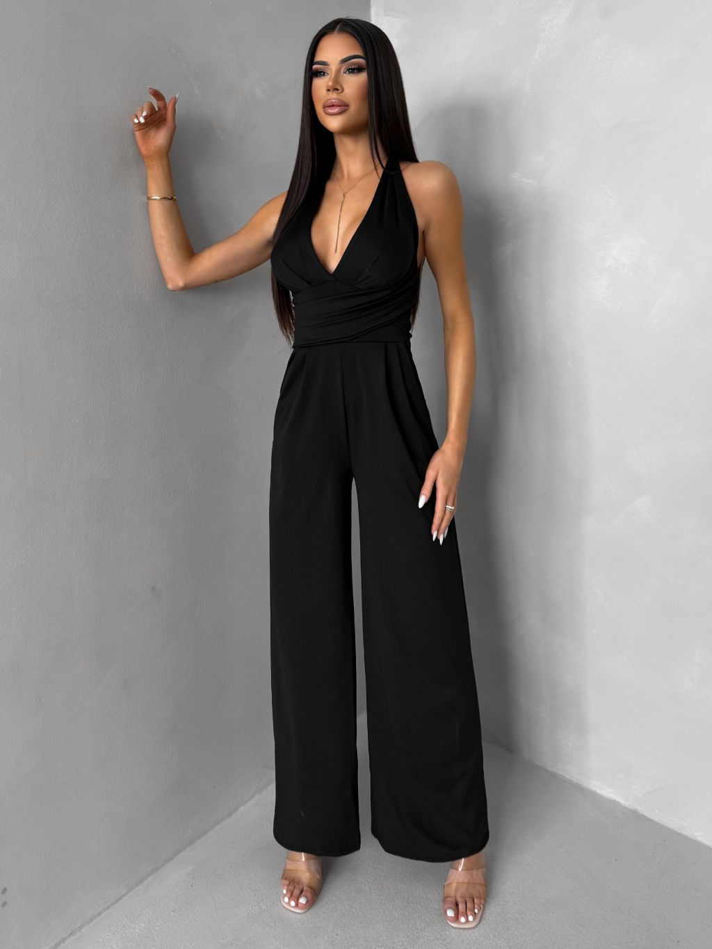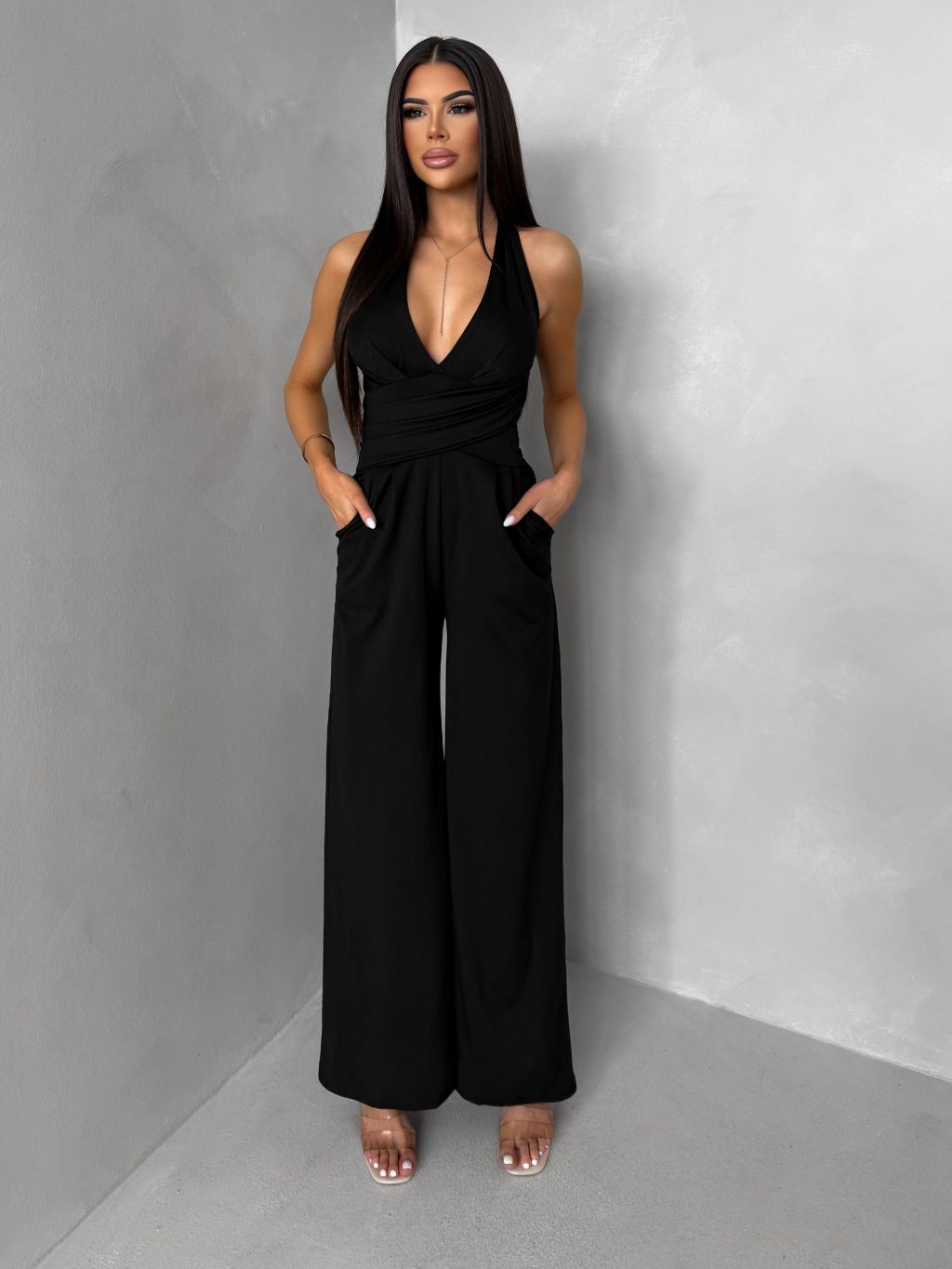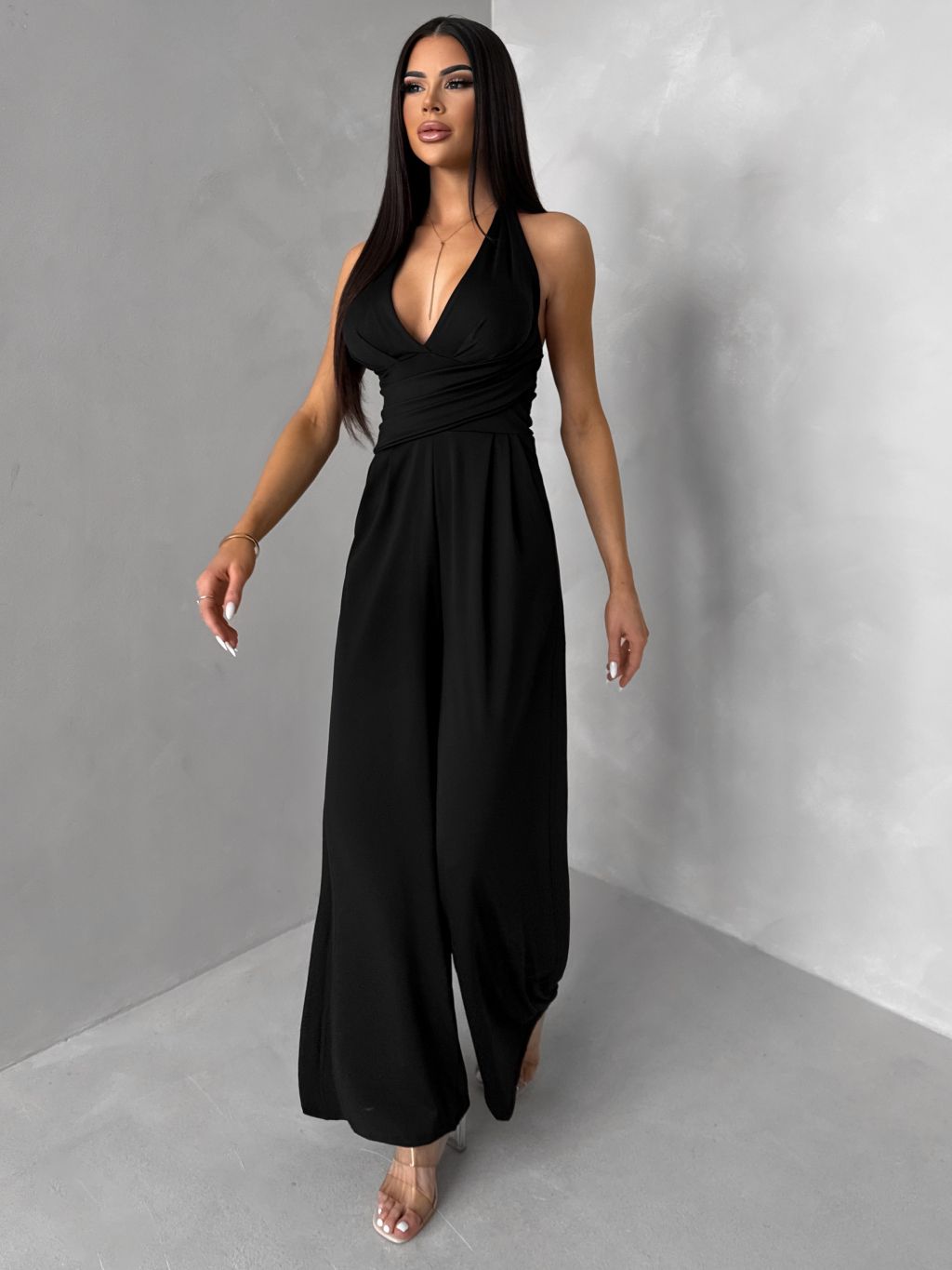 Čierny spoločenský dlhý overal ARVELLA s výstrihom