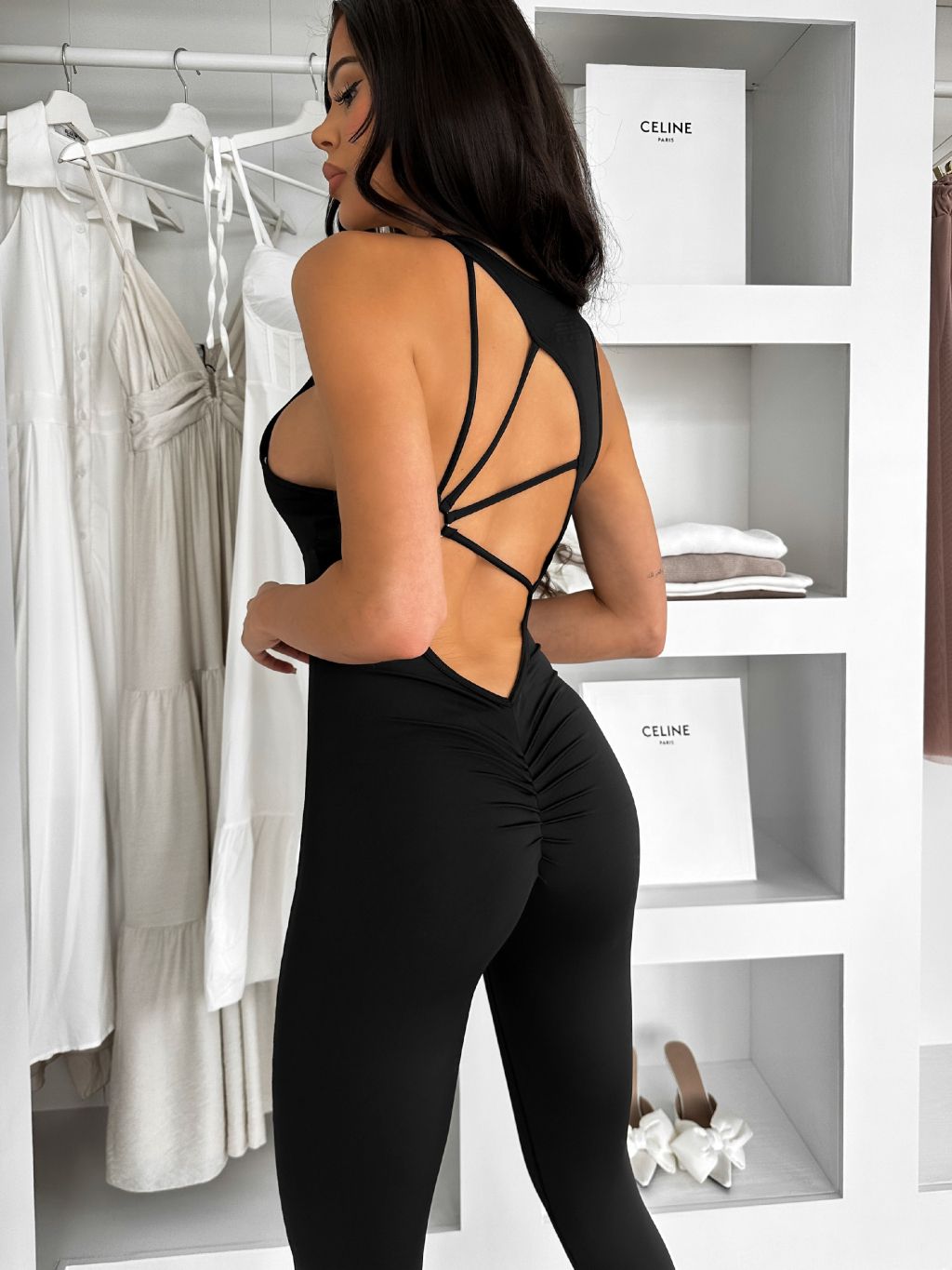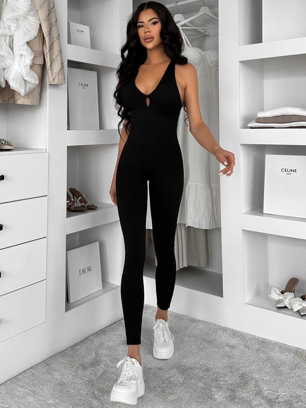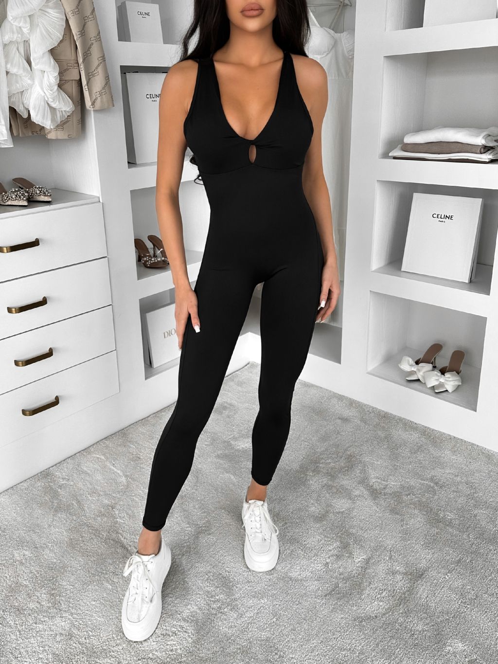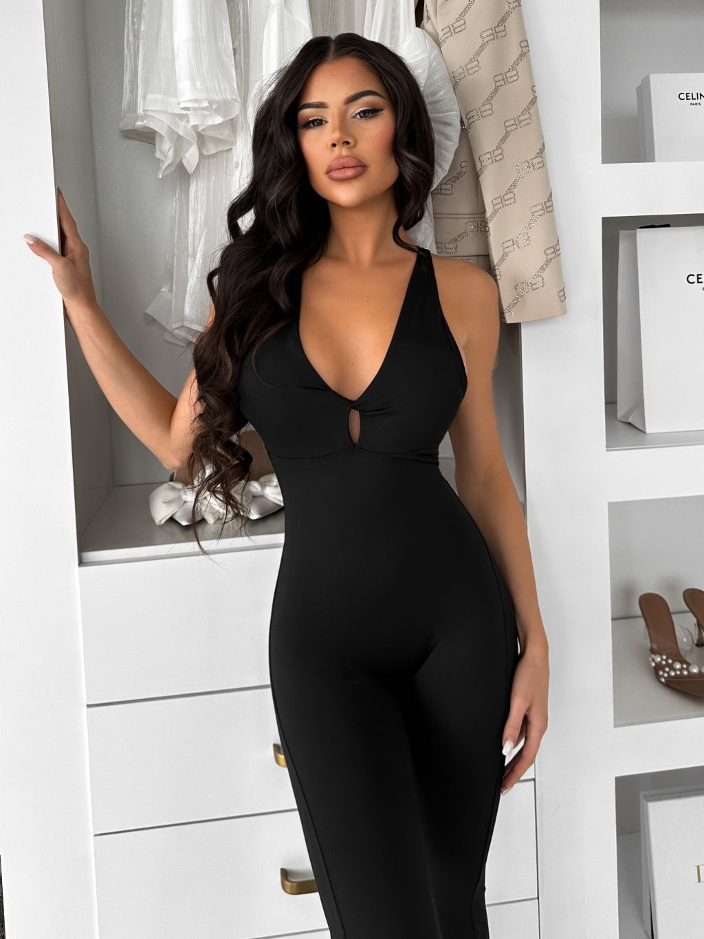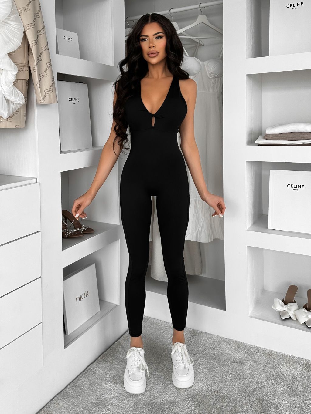 Čierny tvarujúci dlhý elastický overal ROSELA
