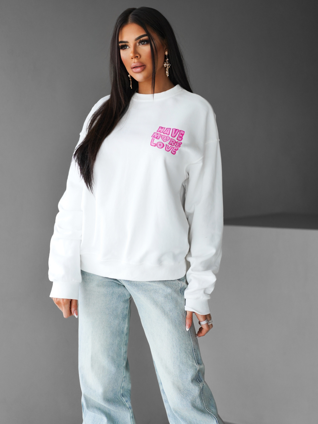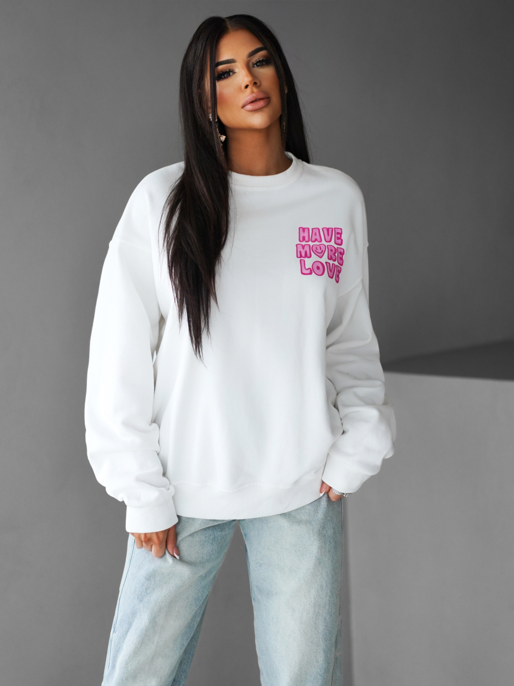 Biela mikina 100% bavlna BASTIAN s ružovým nápisom