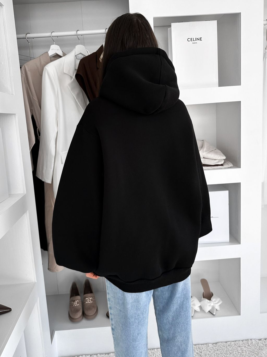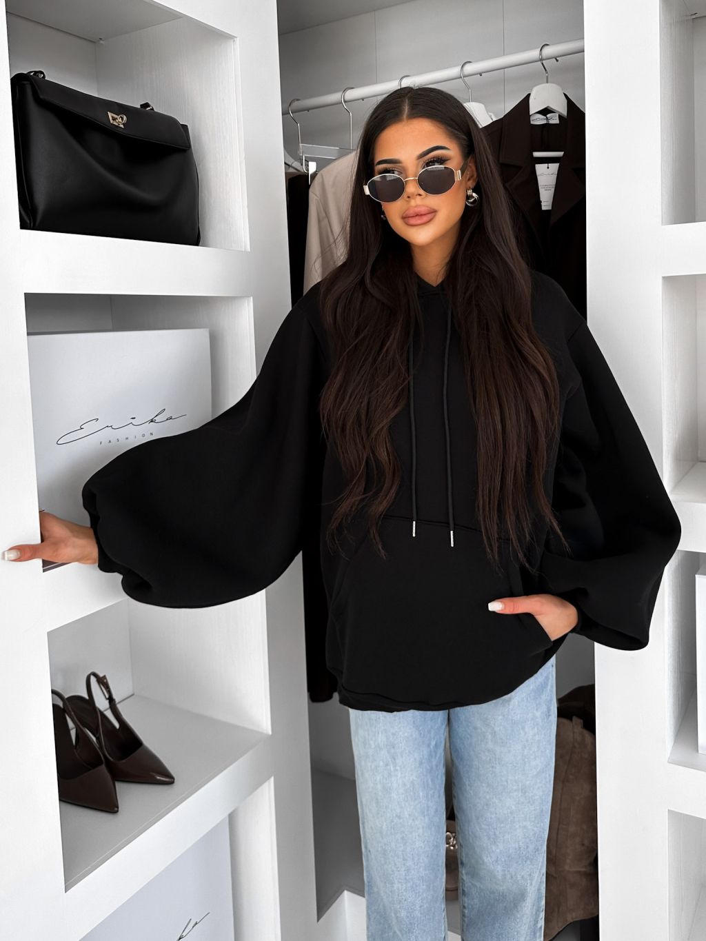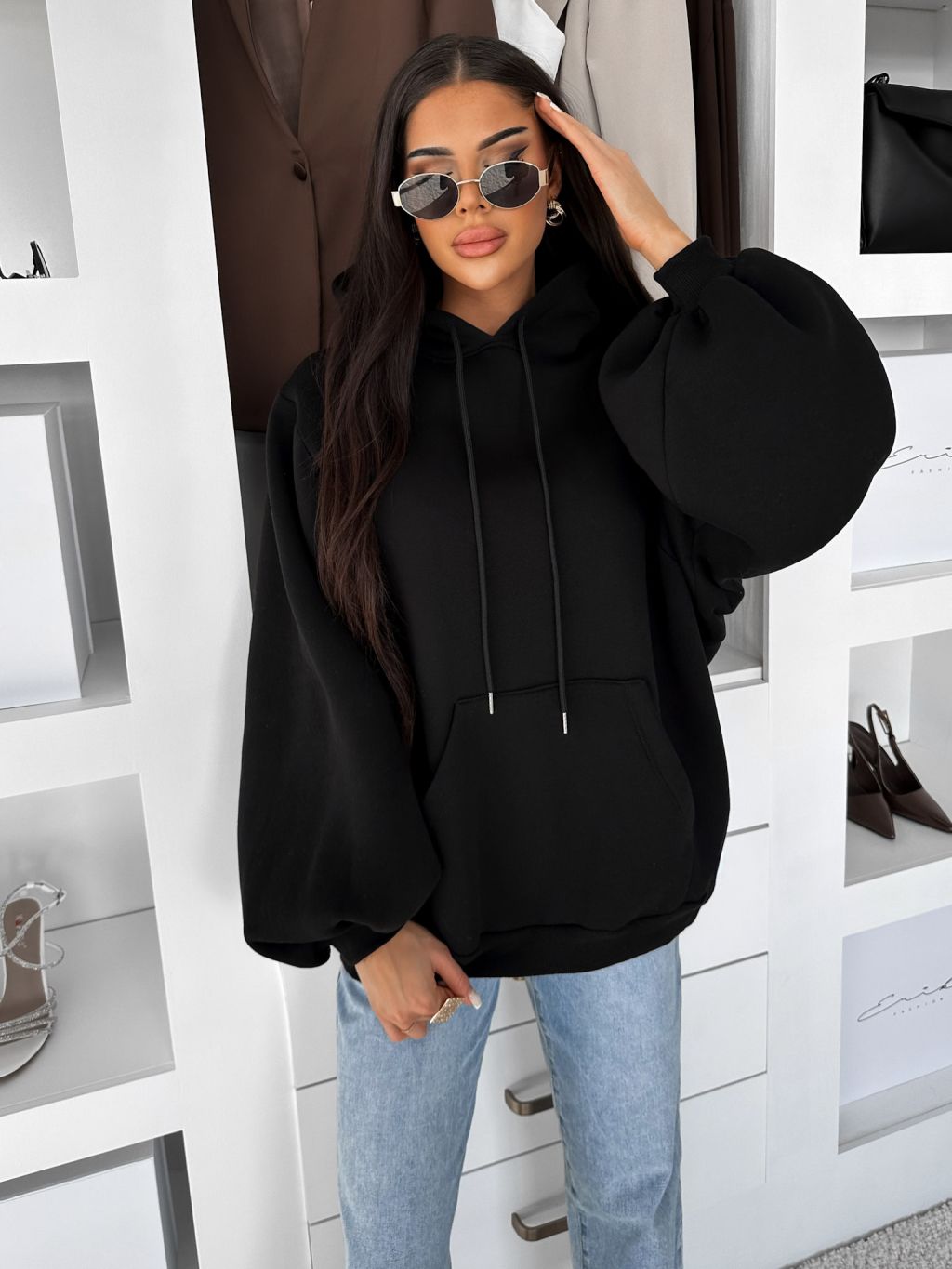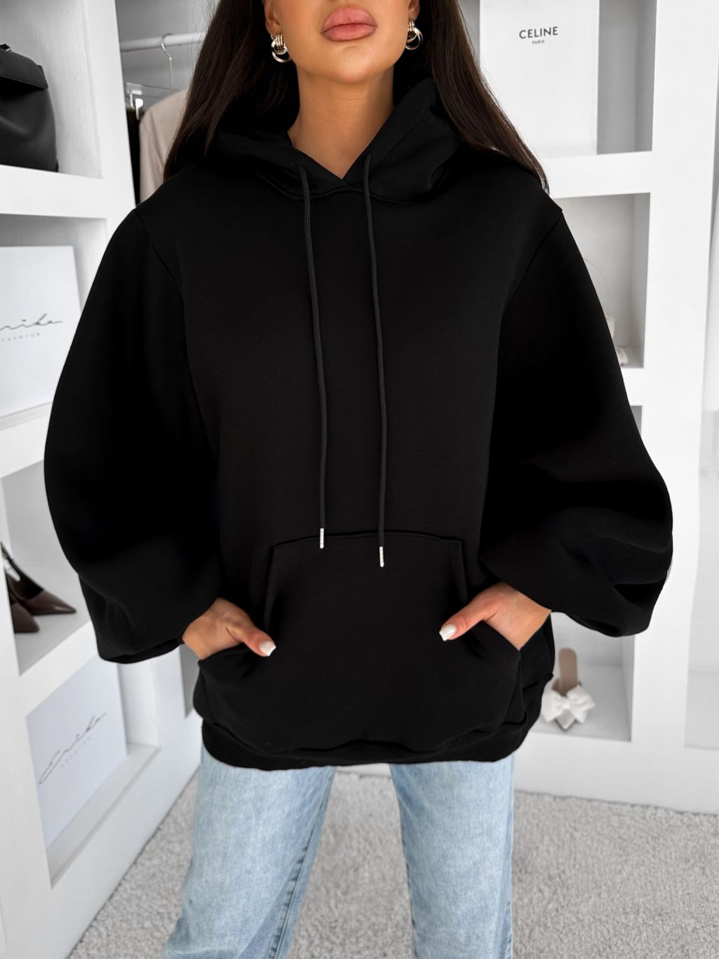 Čierna oversize maxi mikina PYRRHA s kapucňou