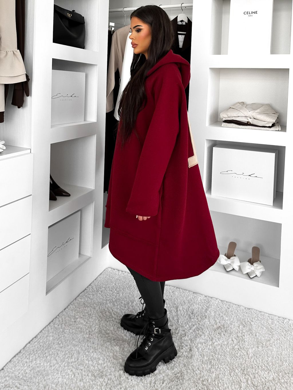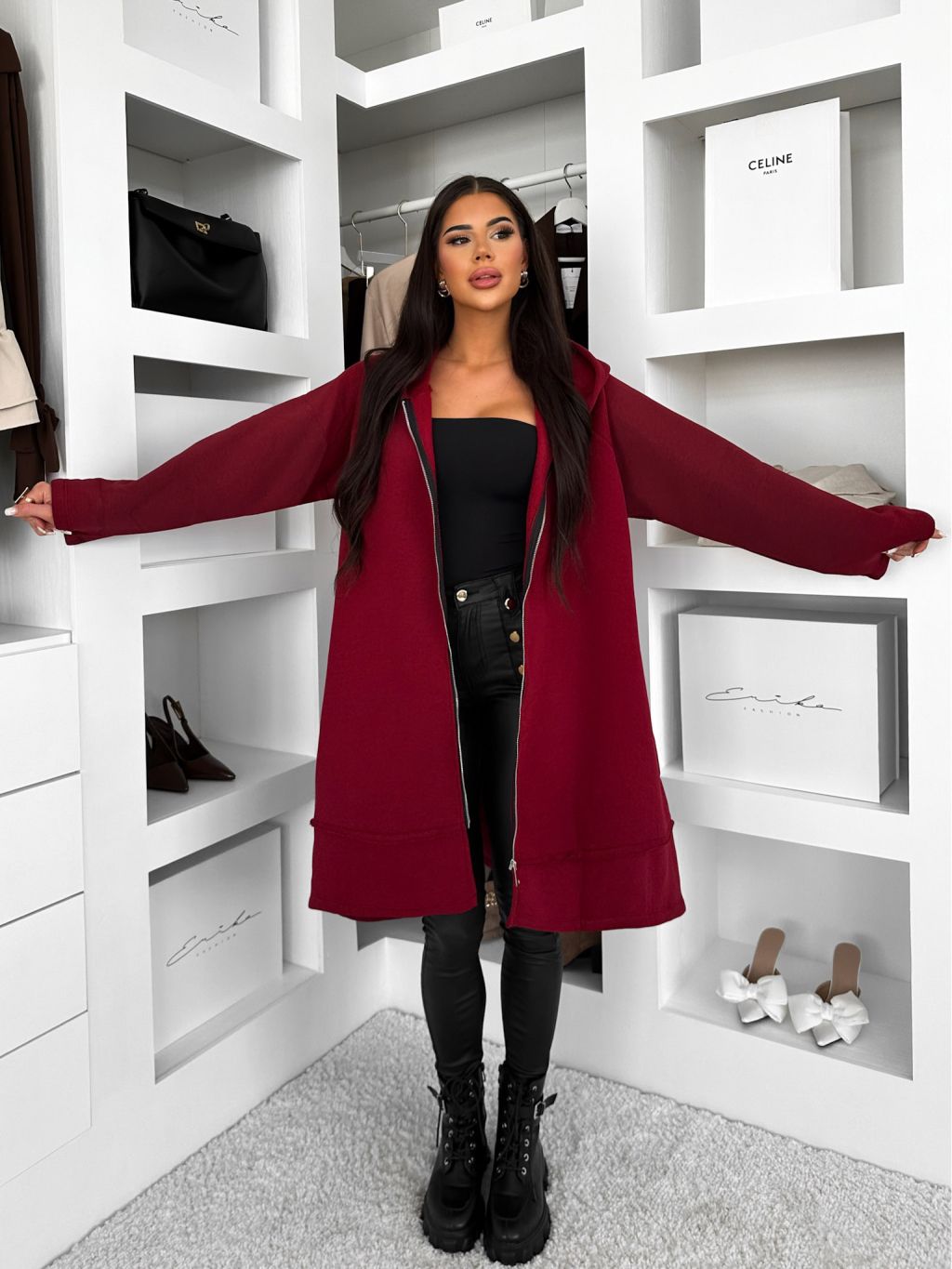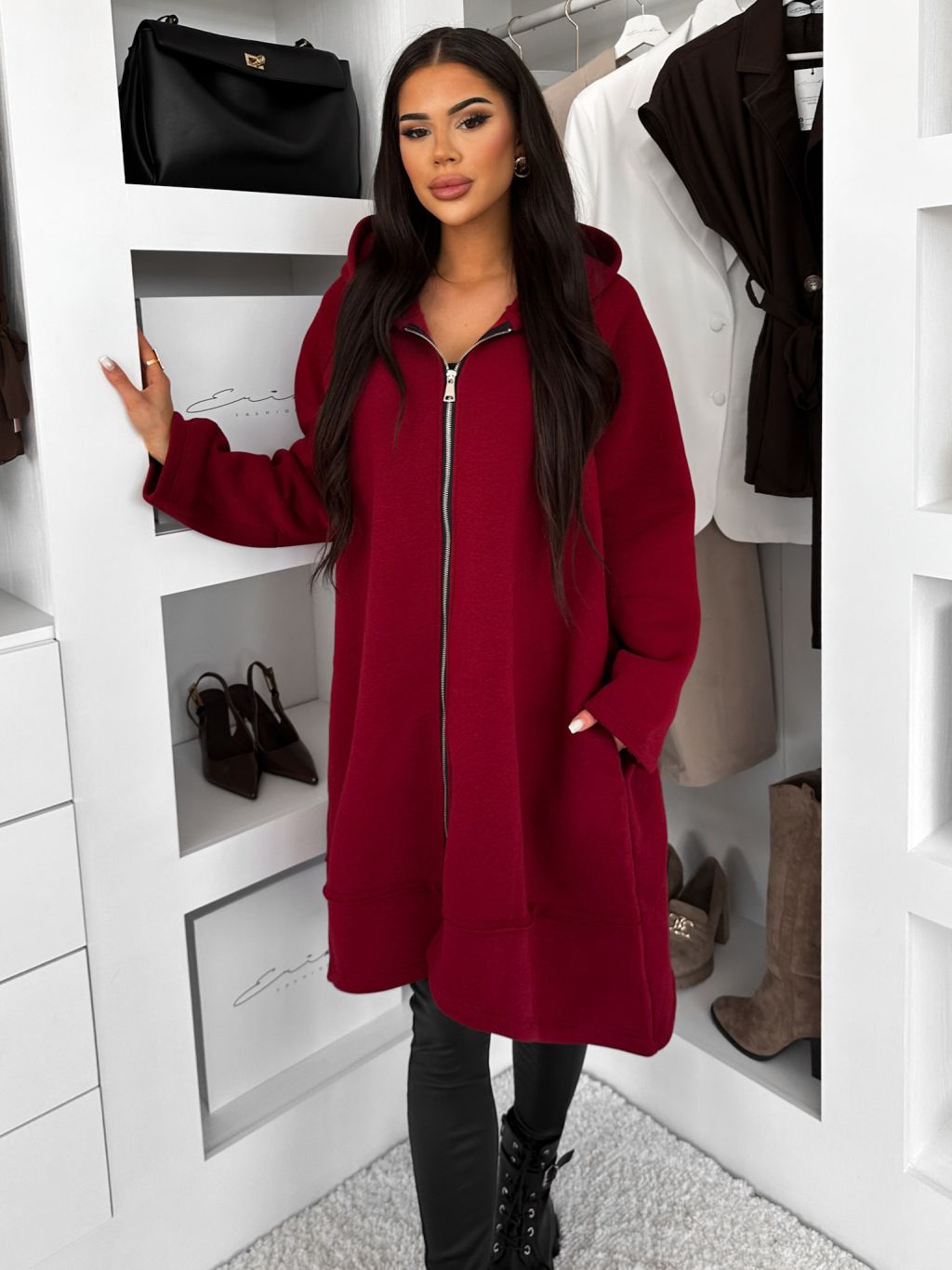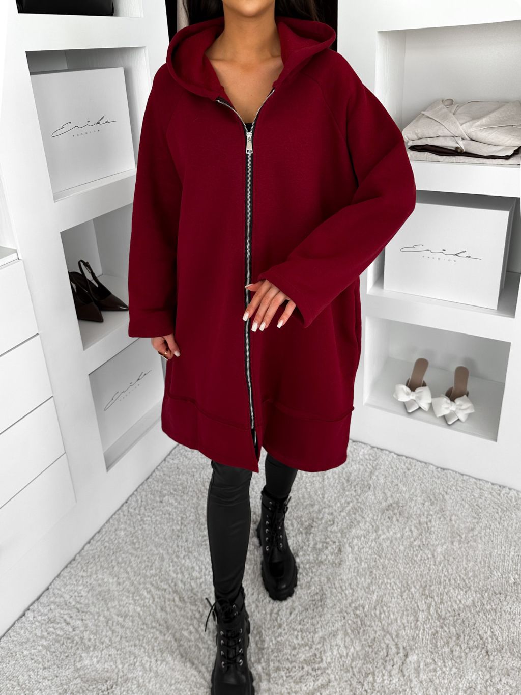 Vínová oversize dlhá mikina PLUSYT na zips