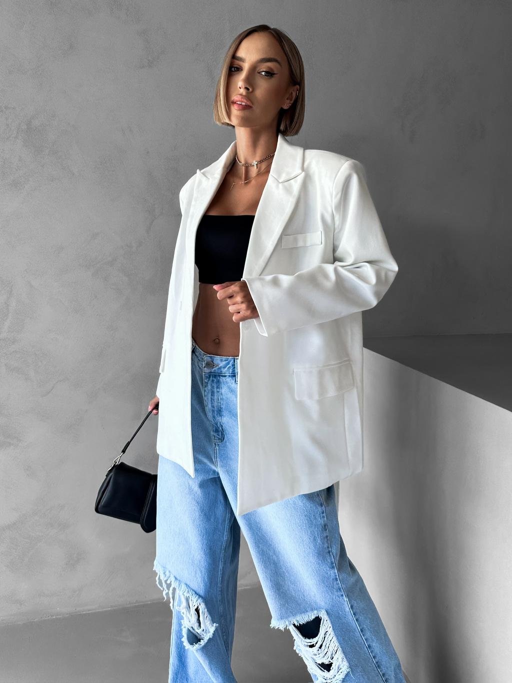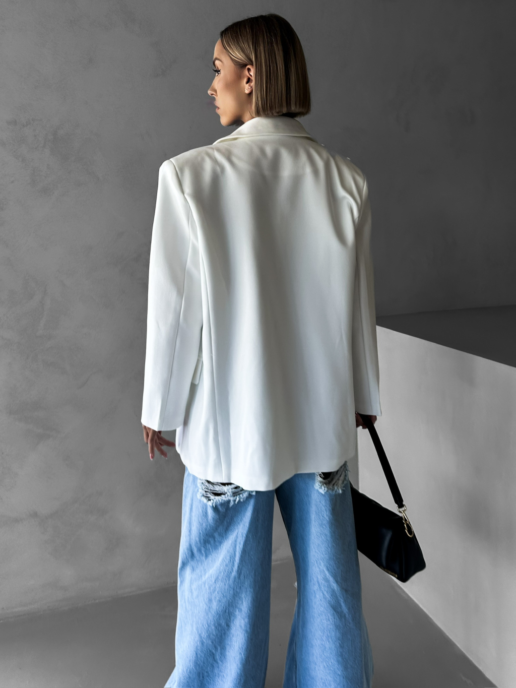 Biele oversize sako PREDRAG s odopínacou aplikáciou