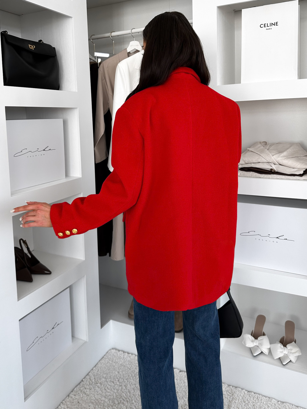Červené oversize sako JENTIL s nášivkami