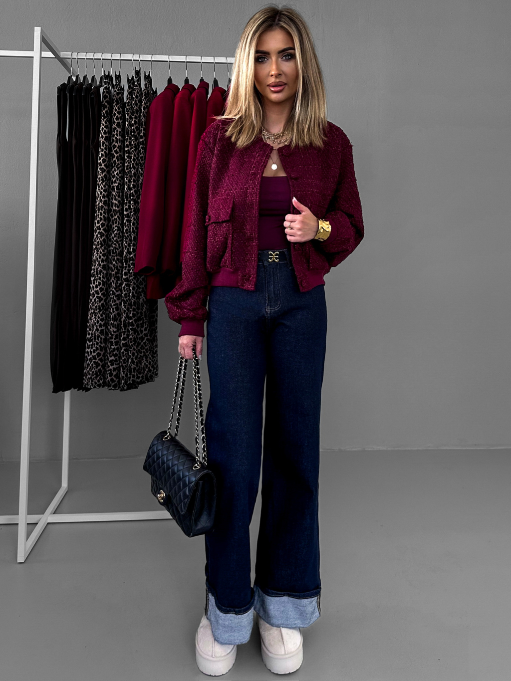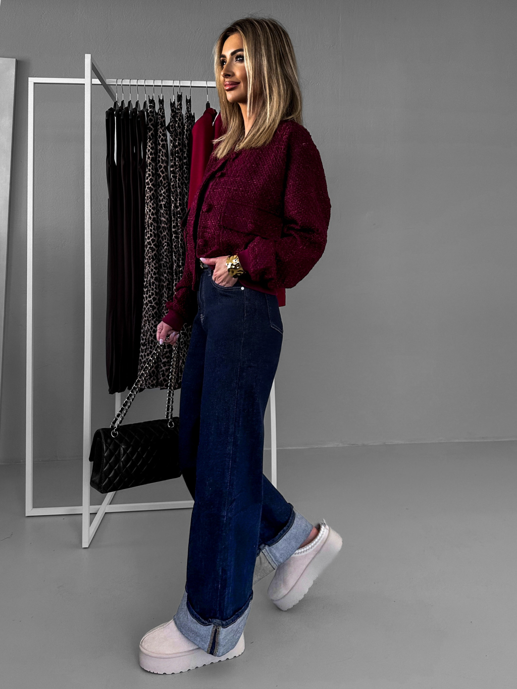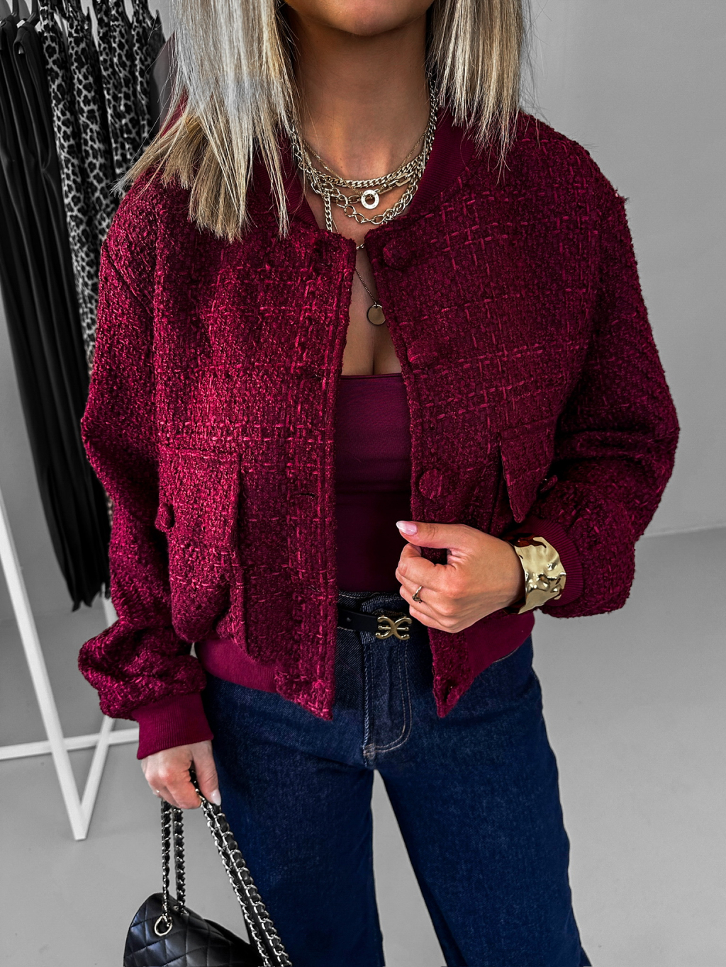 Vínová tvídová bundička CHLARY na gombíky