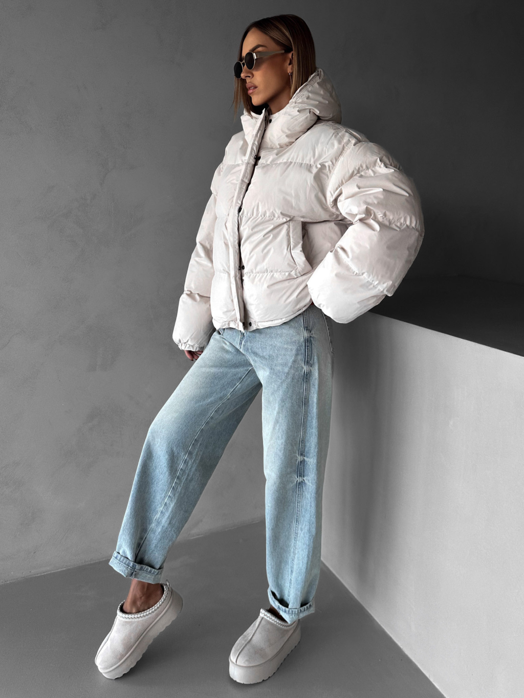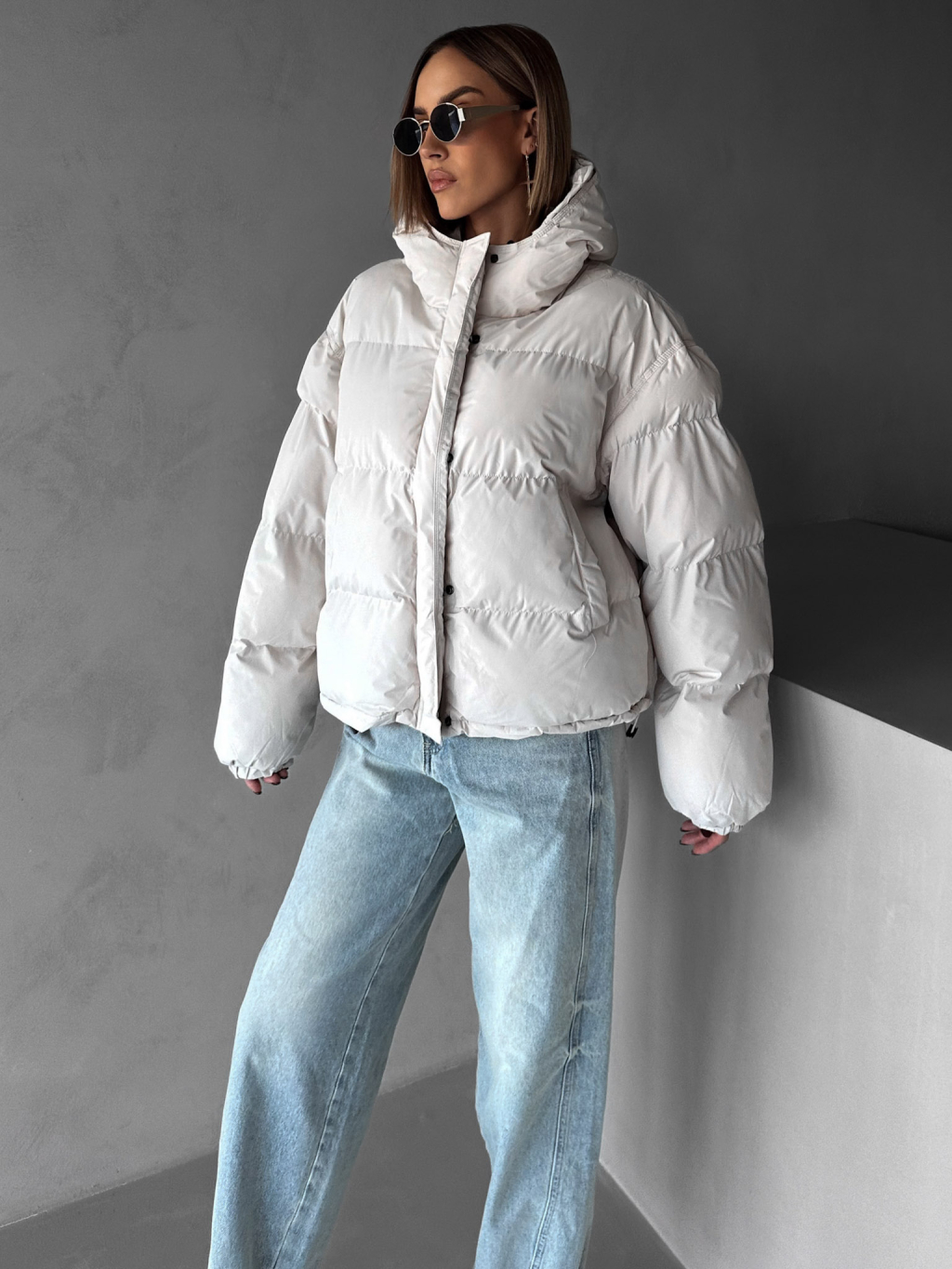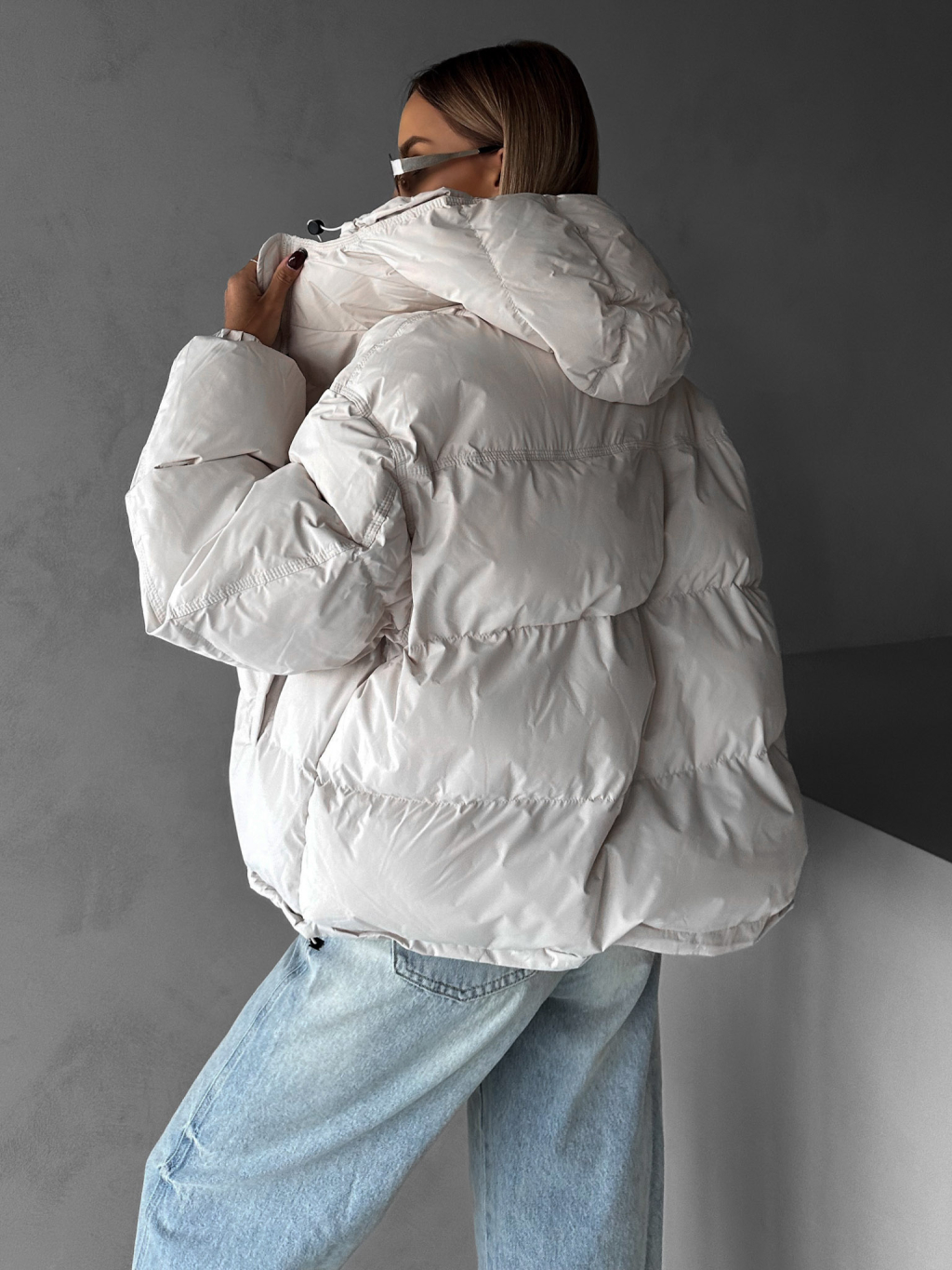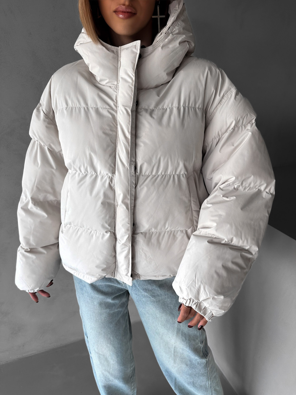 Krémová zimná prešívaná oversize bunda RIZPAH