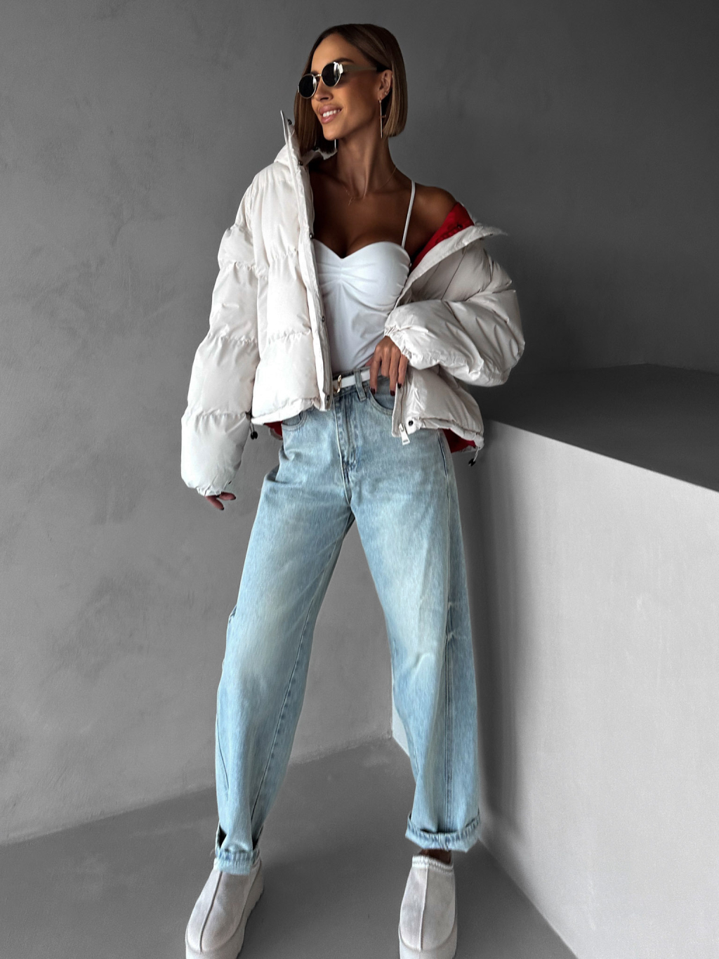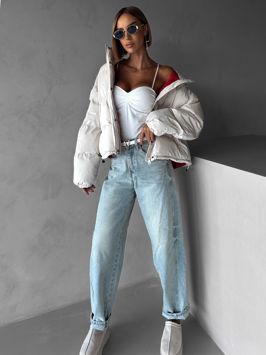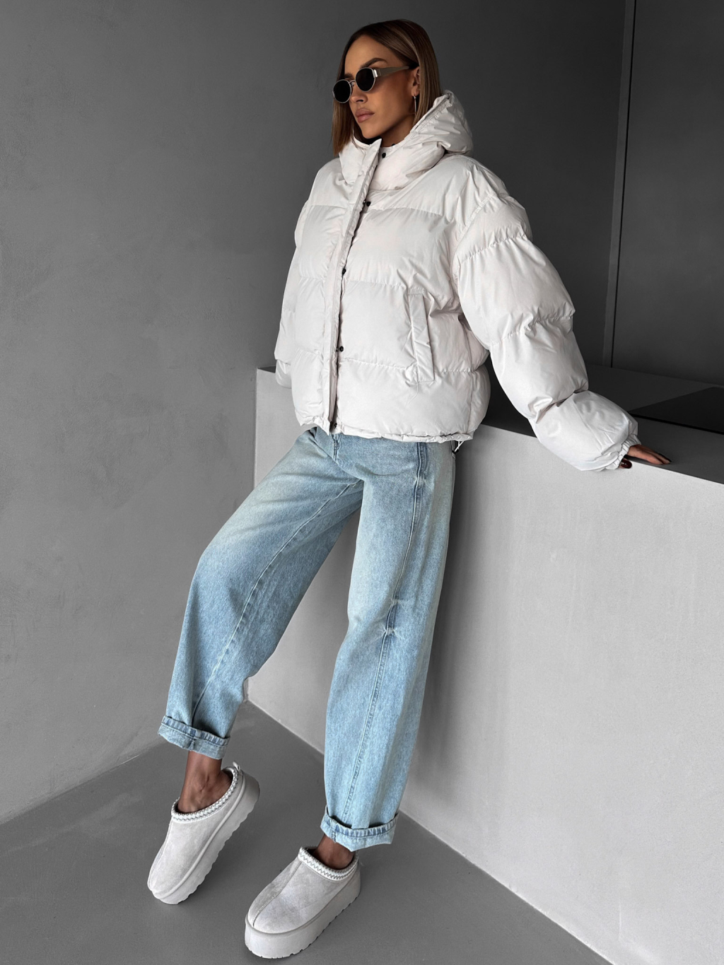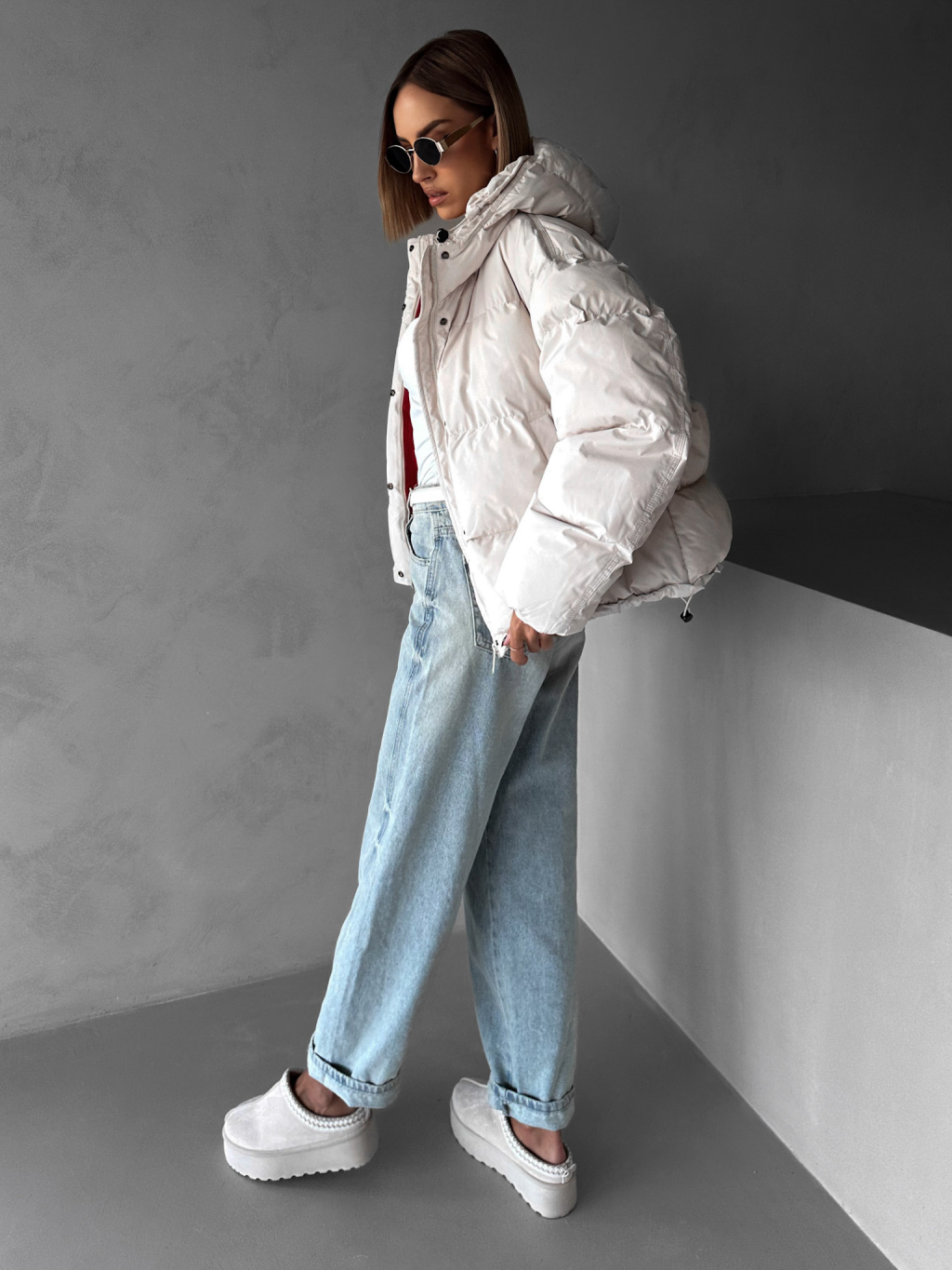 Krémová zimná prešívaná oversize bunda RIZPAH