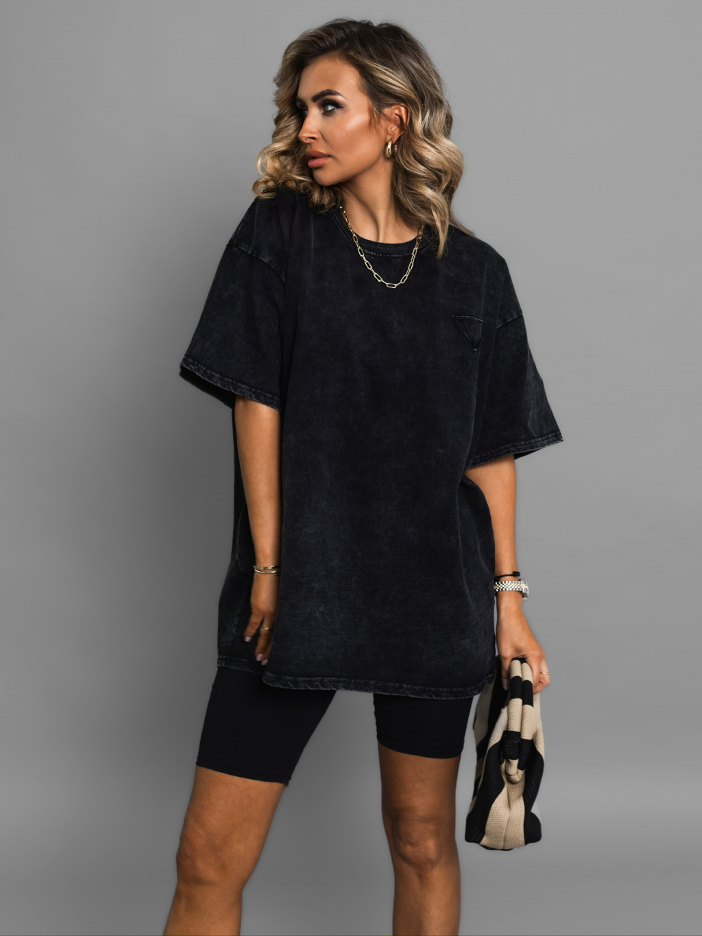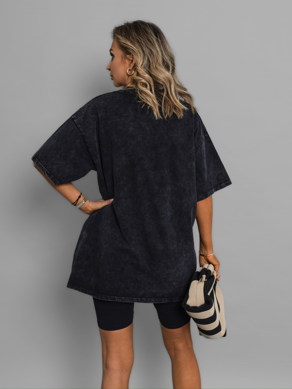Čierne washed oversize tričko ADELIT s krátkym rukávom