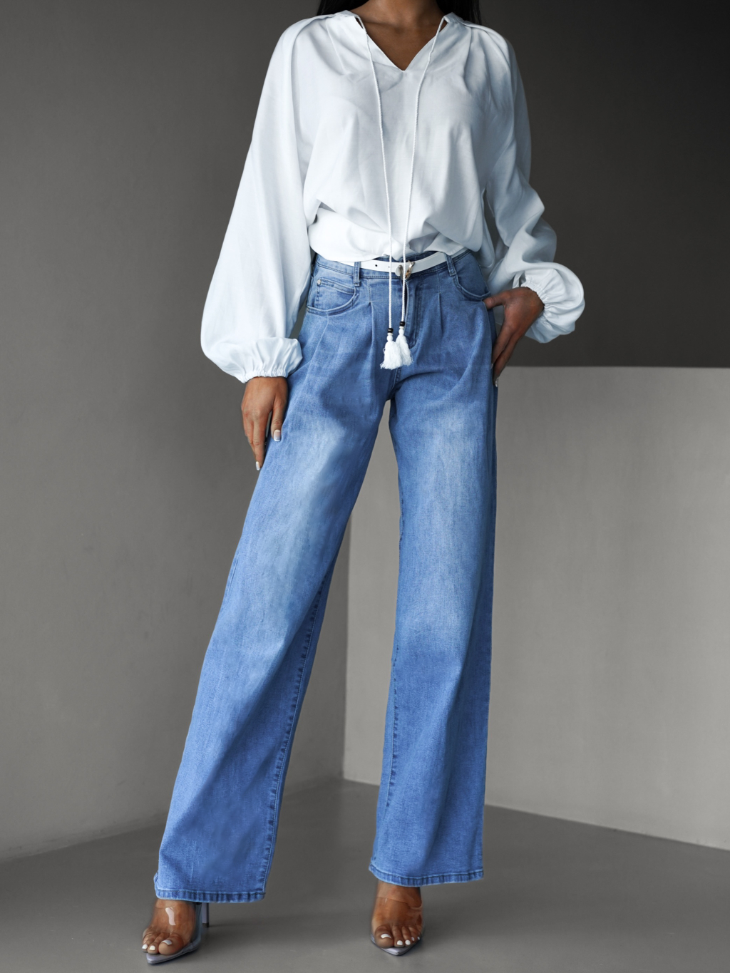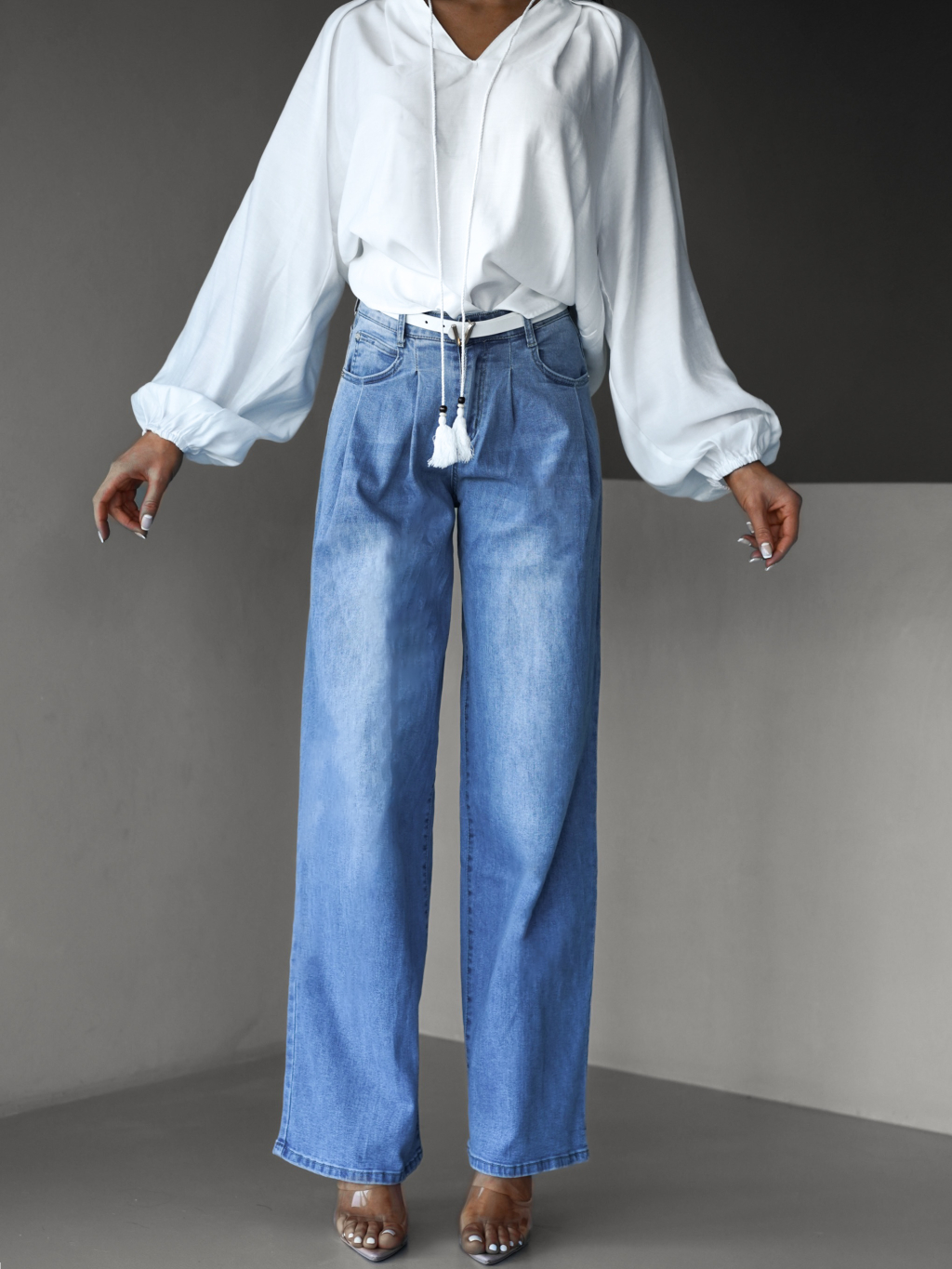 Modré široké wide leg džínsy HELAR s vysokým pásom