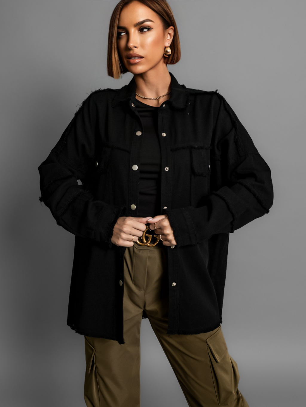 Čierna denim džínsová košeľa CECYLIA