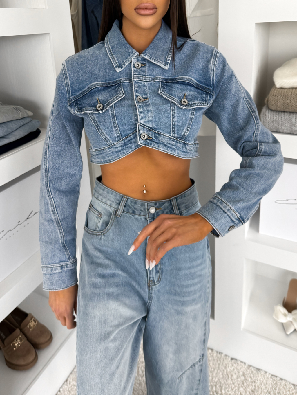 Modrá džínsová krátka mini bunda XYLORA