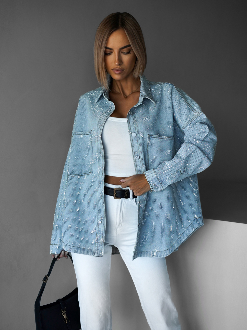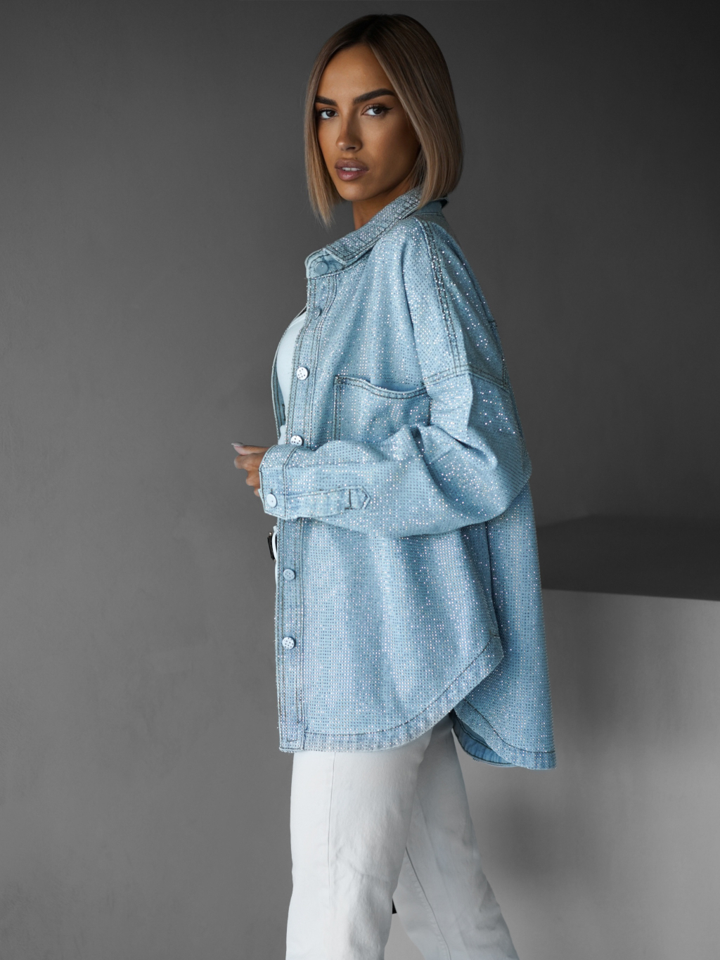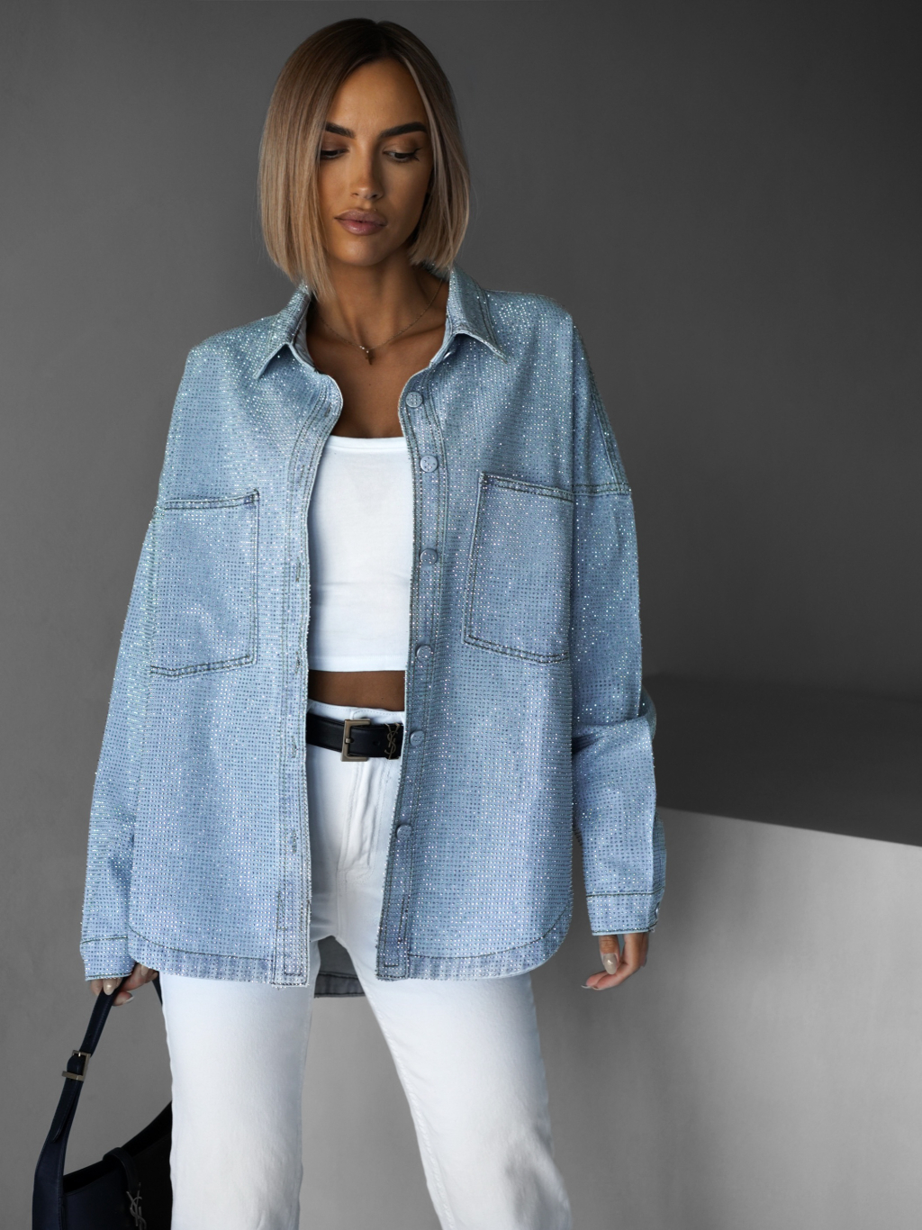 Modrá džínsová luxusná košeľa ANEMARIE s kamienkami