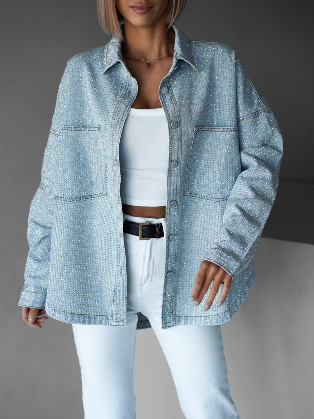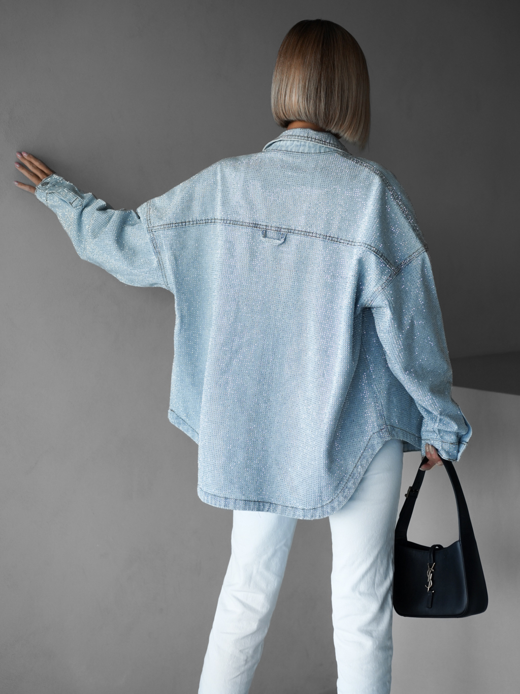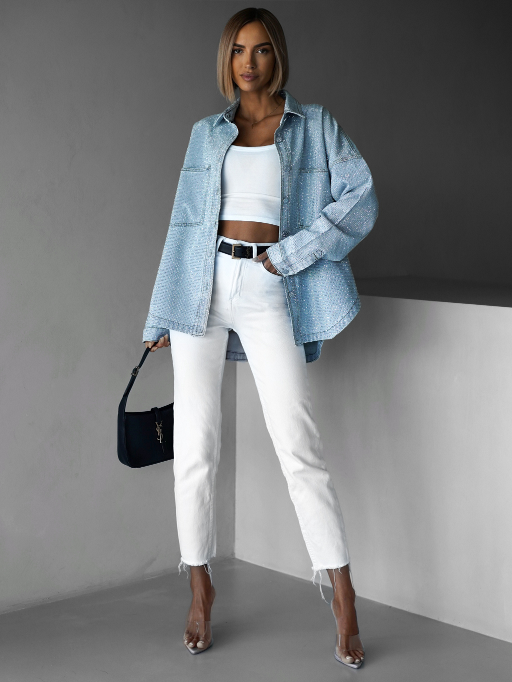 Modrá džínsová luxusná košeľa ANEMARIE s kamienkami
