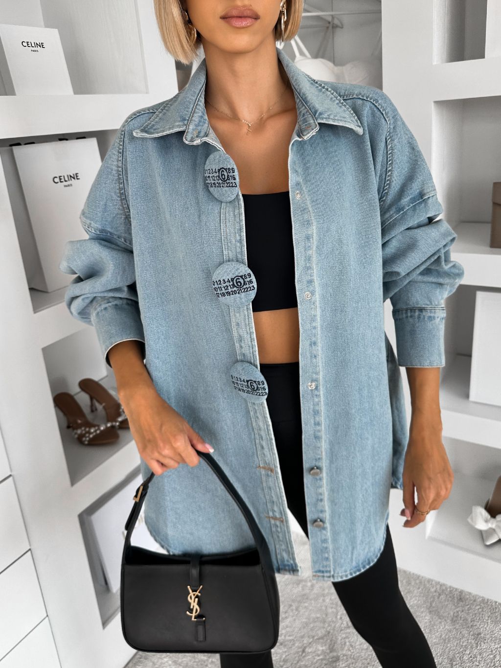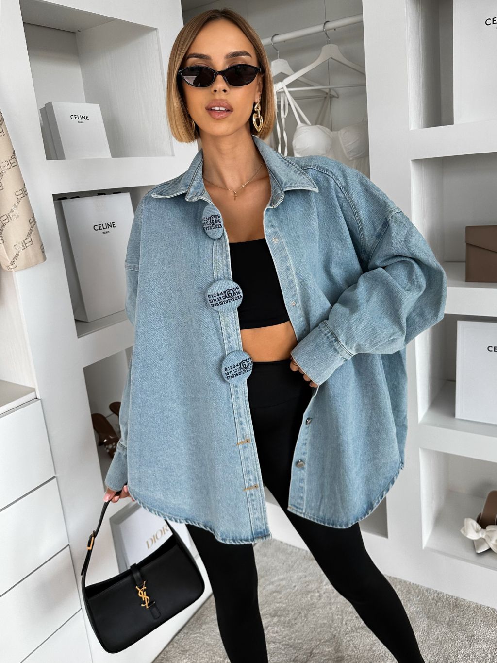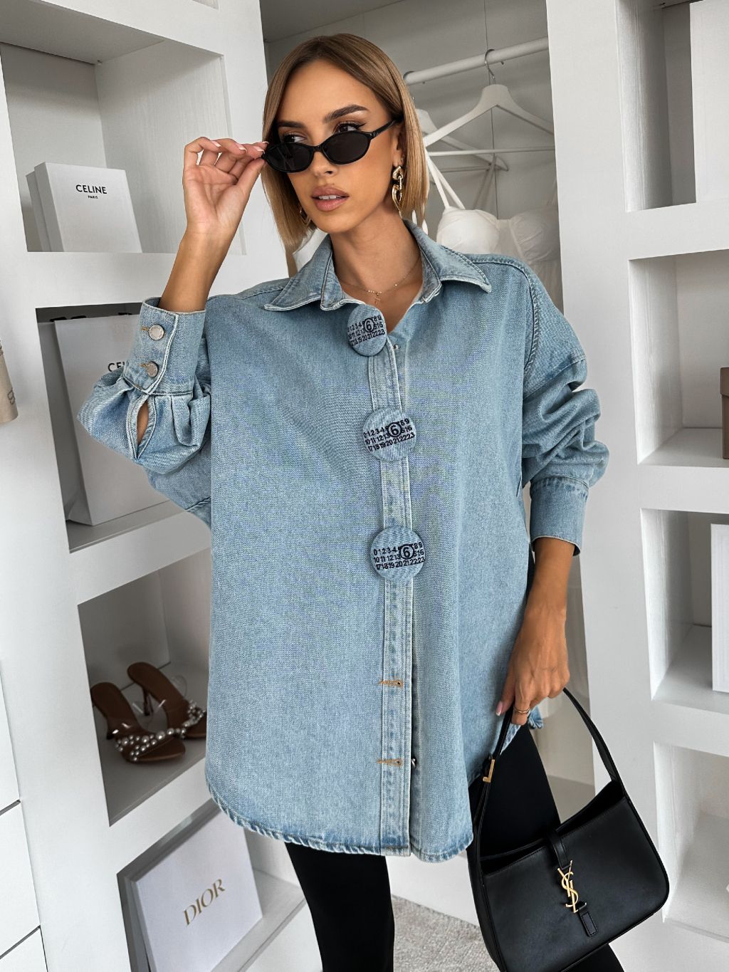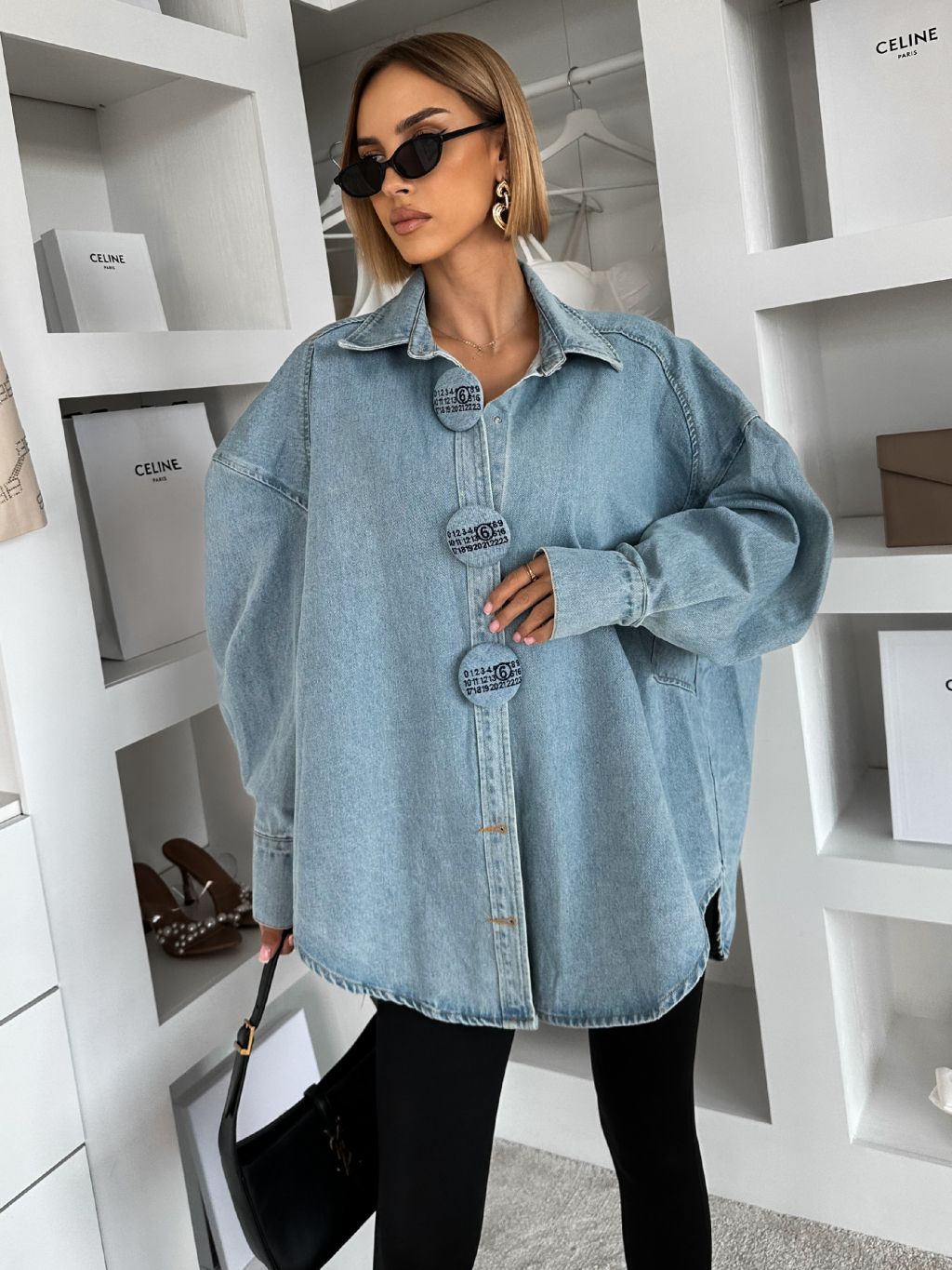 Modrá džínsová overzise košeľa GLIMMER s konflíkmi