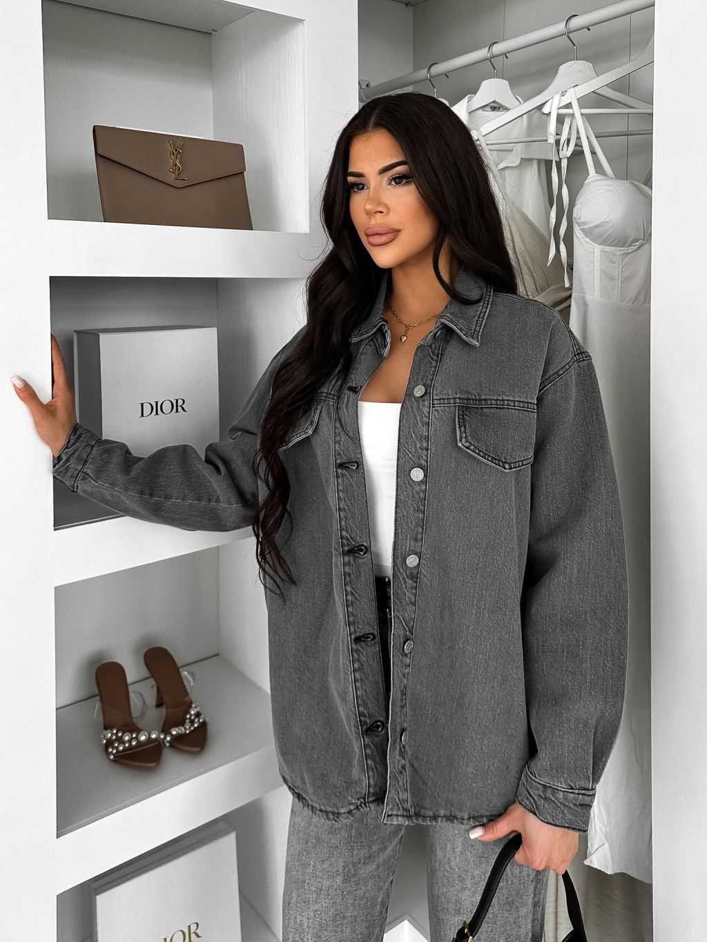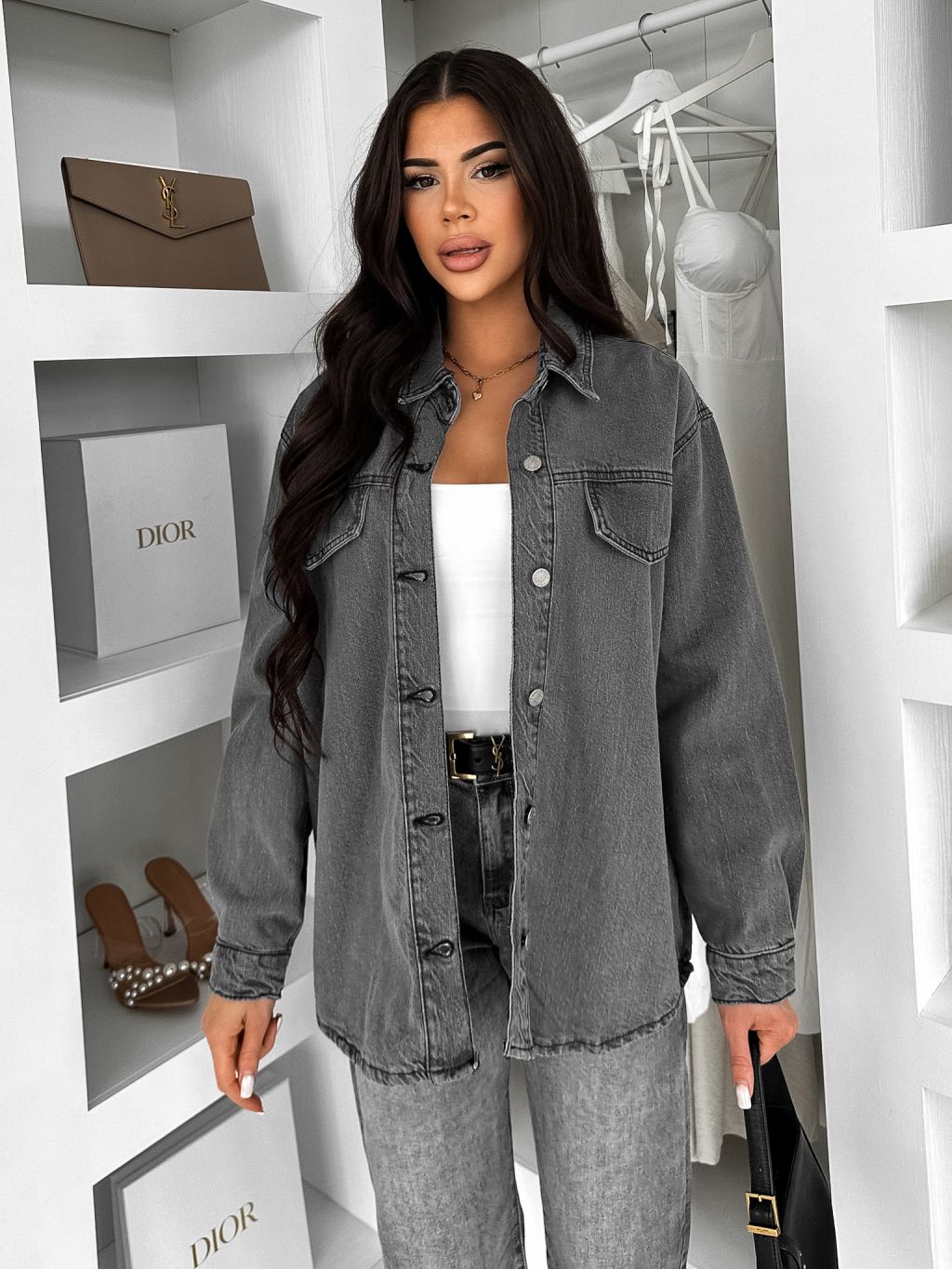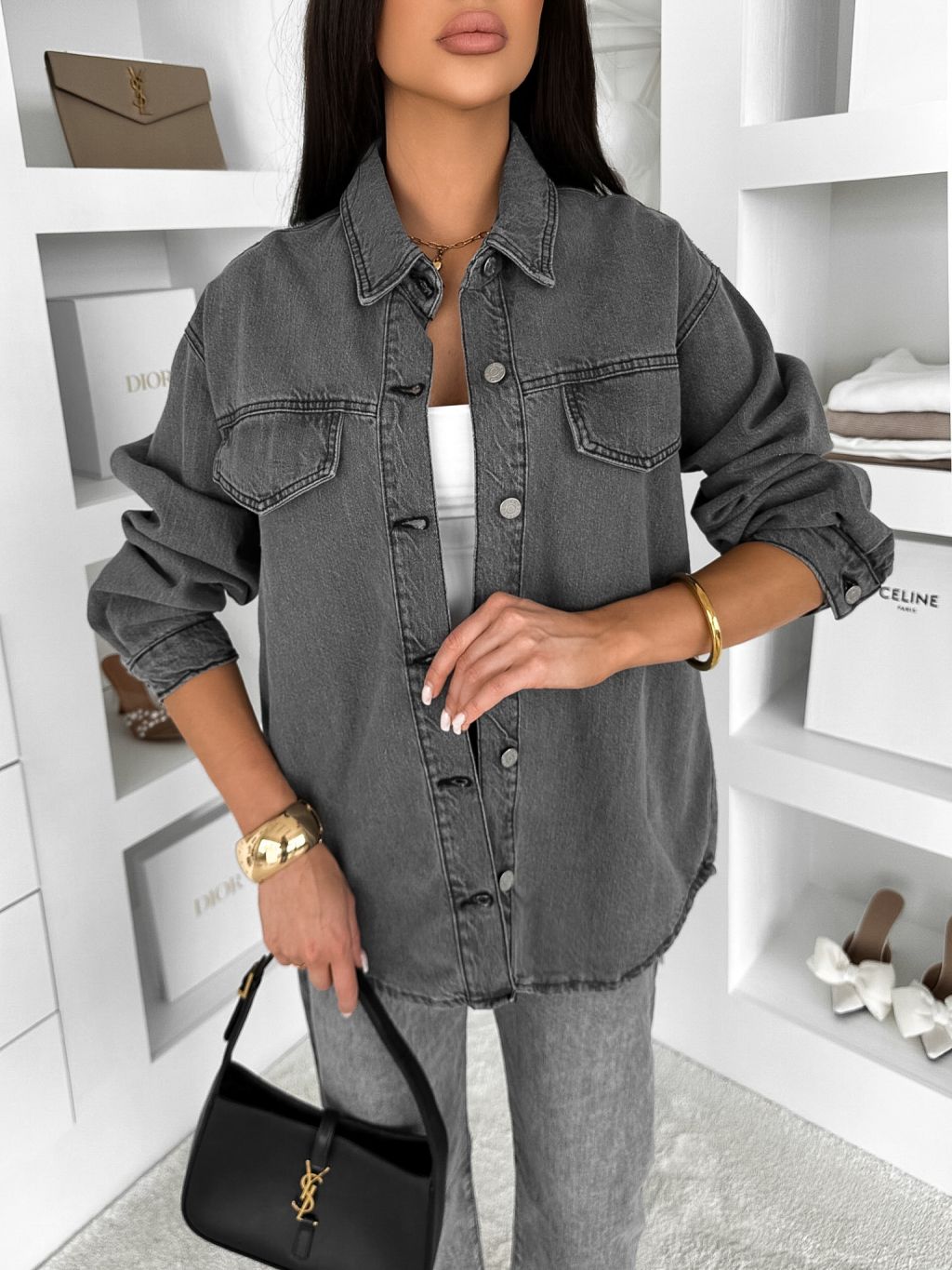 Šedá džínsová denim oversize košeľa ELORIA