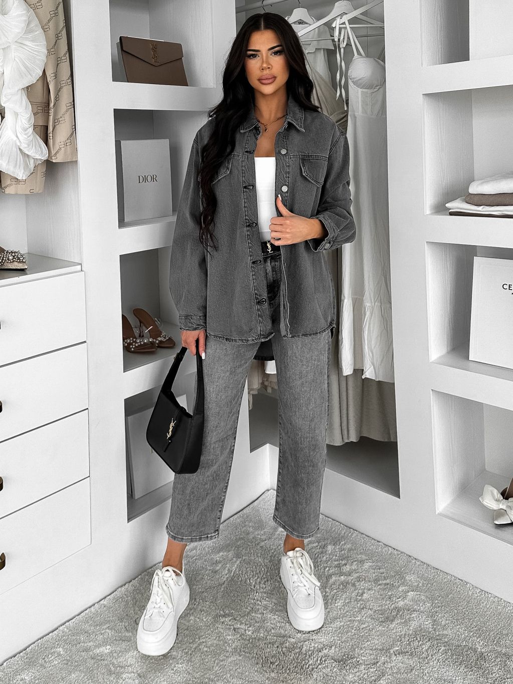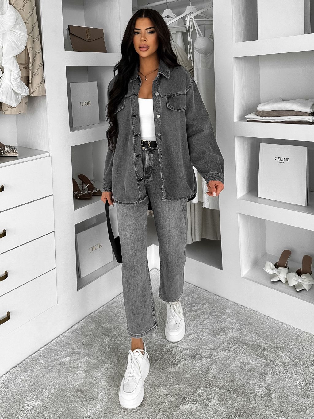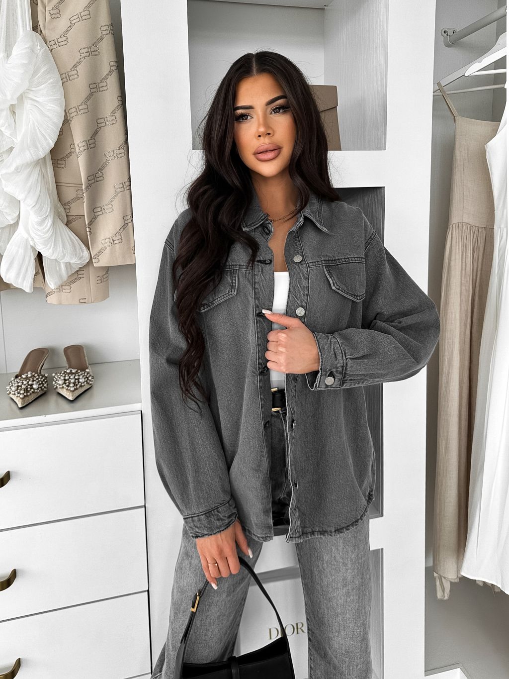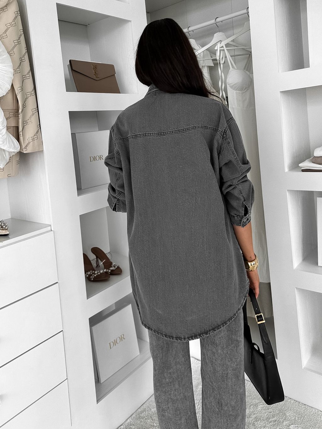 Šedá džínsová denim oversize košeľa ELORIA