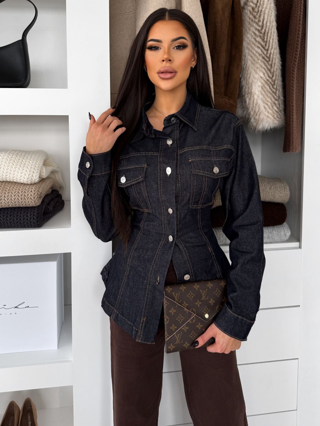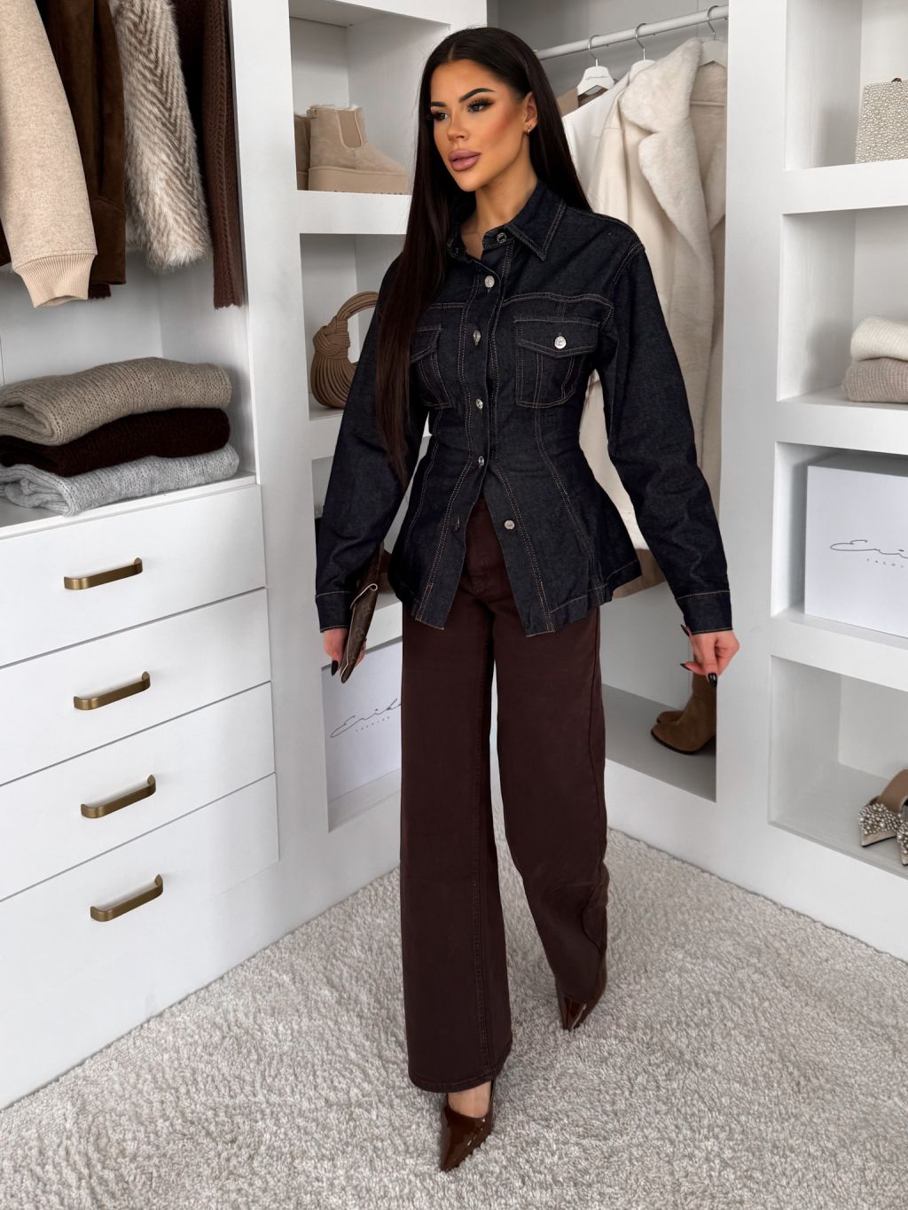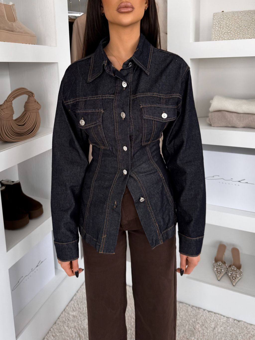 Tmavomodrá tvarujúca džínsová košeľa THAVINE