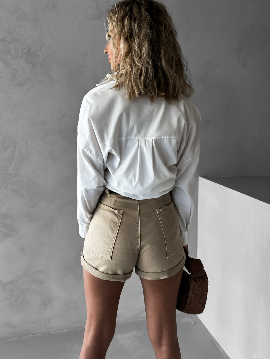 Béžové krátke denim kraťasy DANDIE s opaskom
