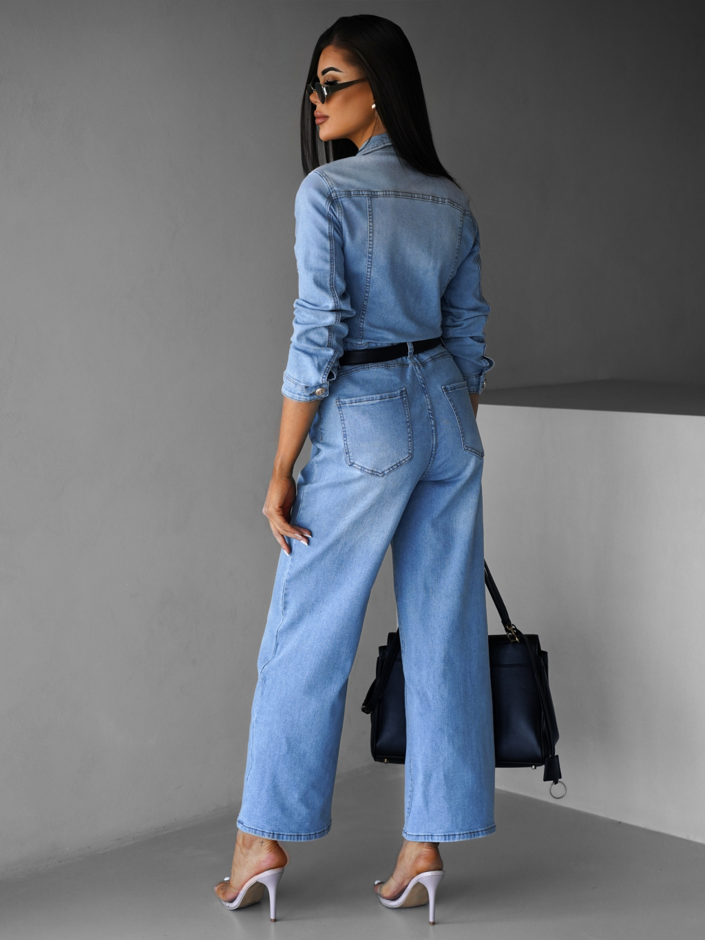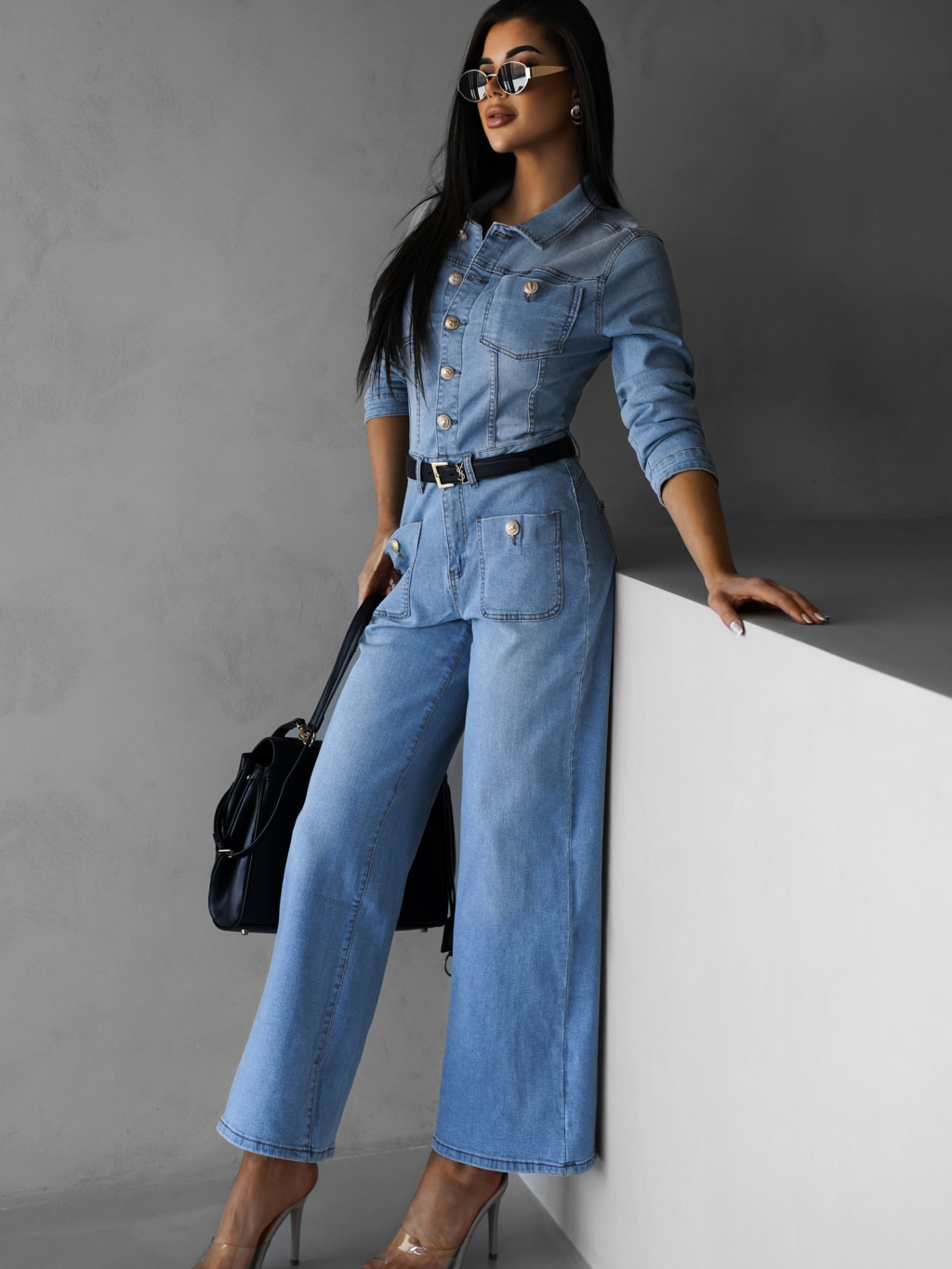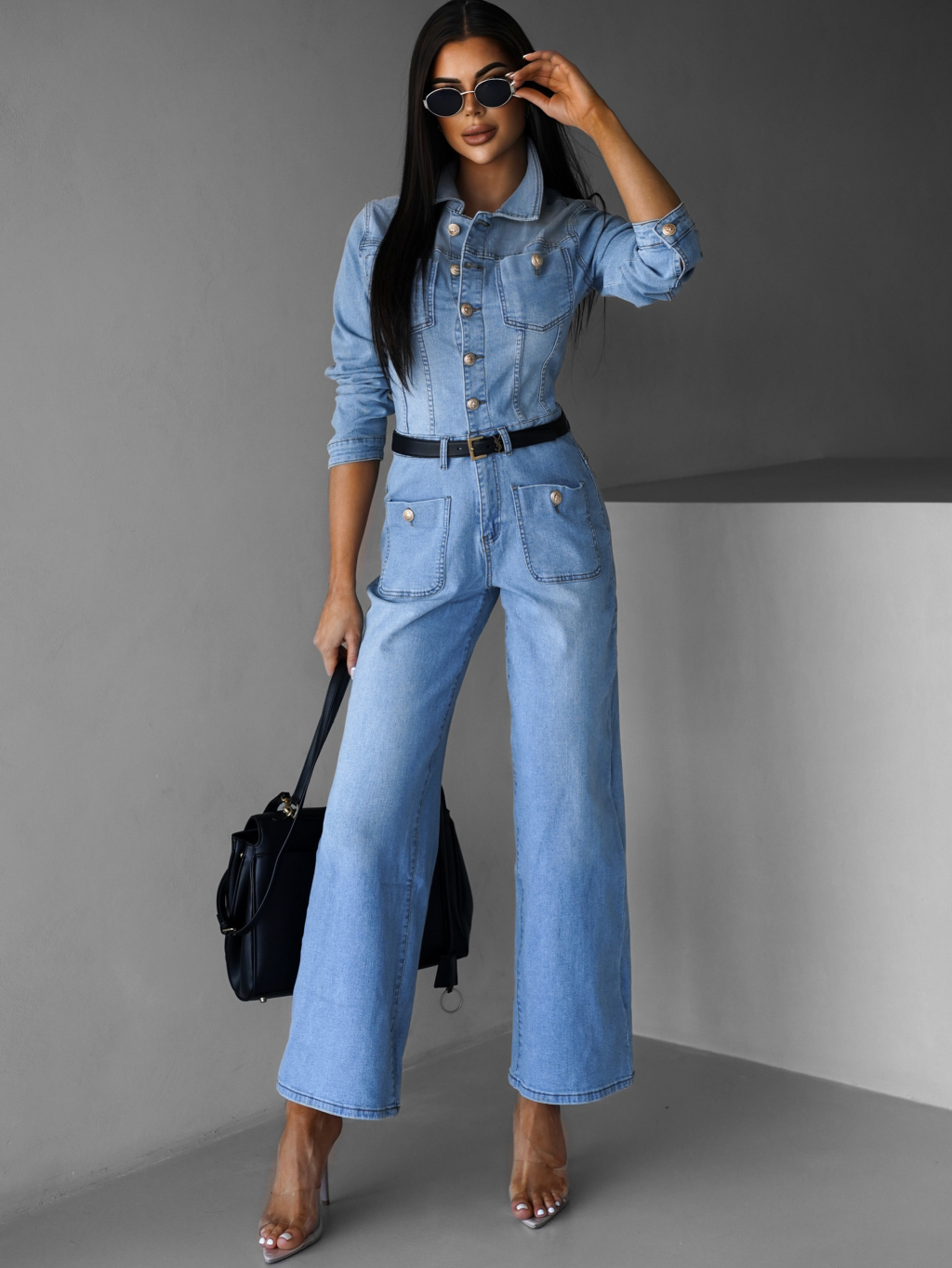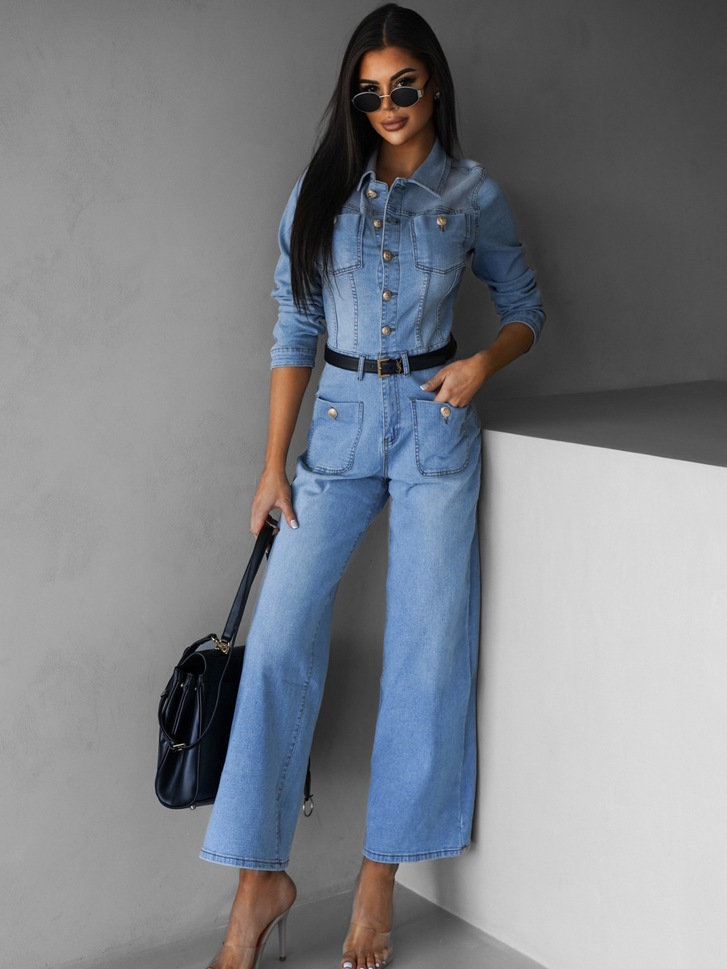 Modrý džínsový dlhý overal VARNOT s dlhým rukávom