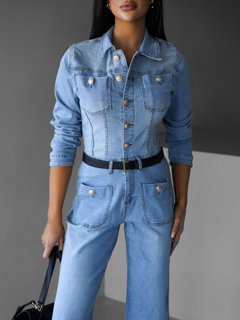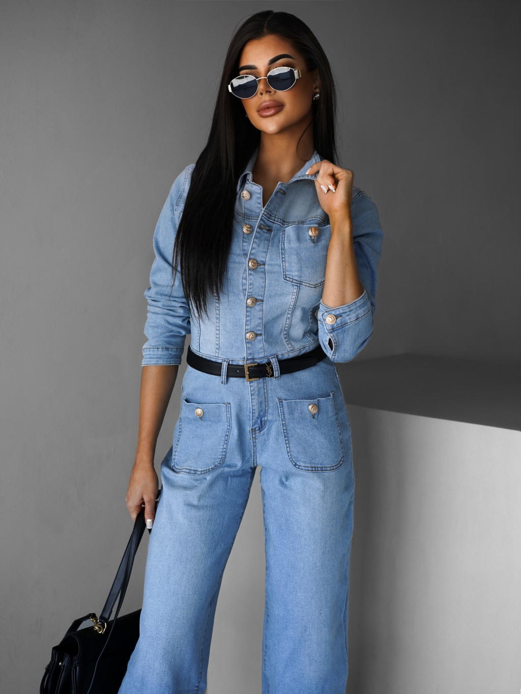 Modrý džínsový dlhý overal VARNOT s dlhým rukávom