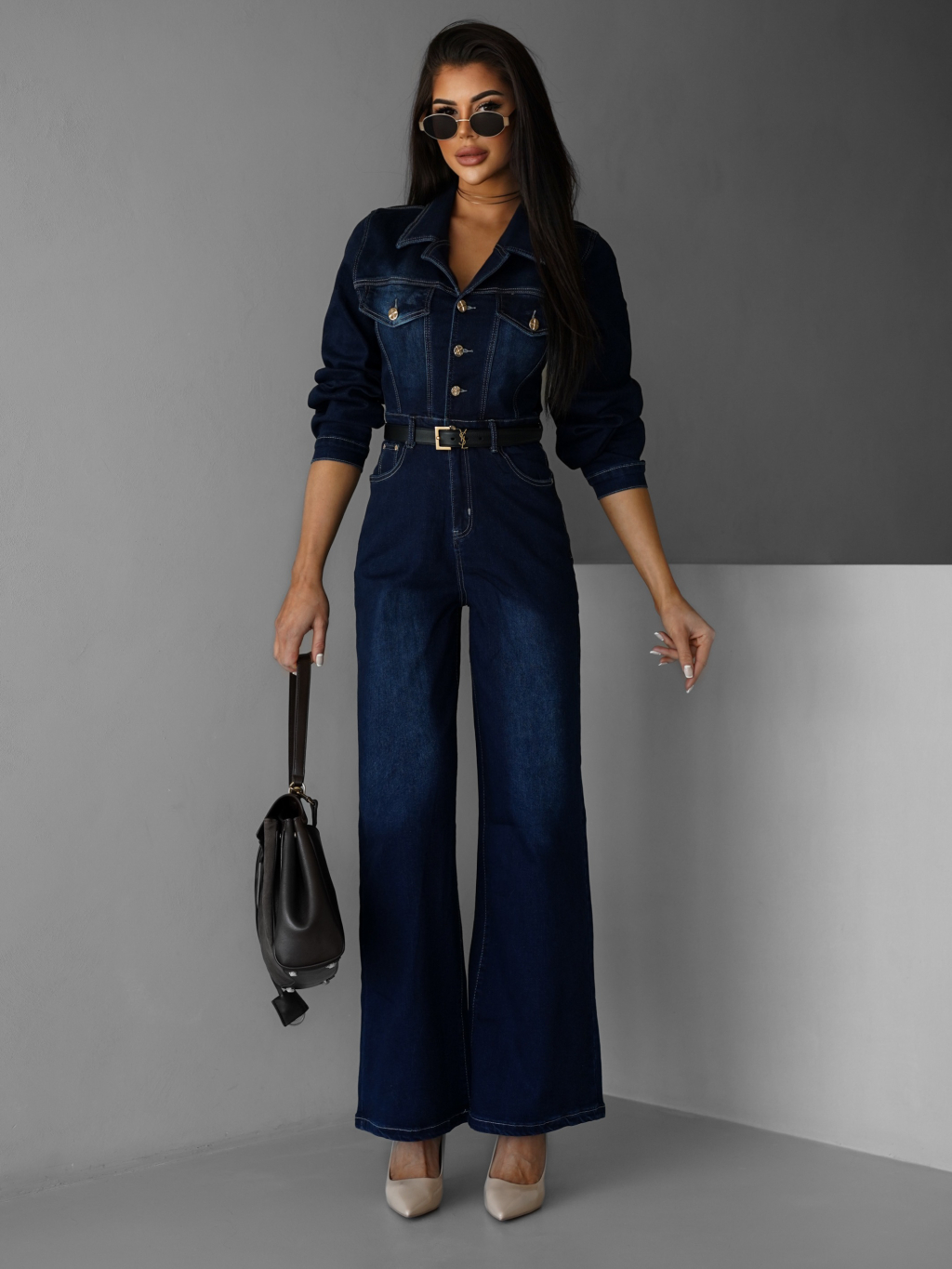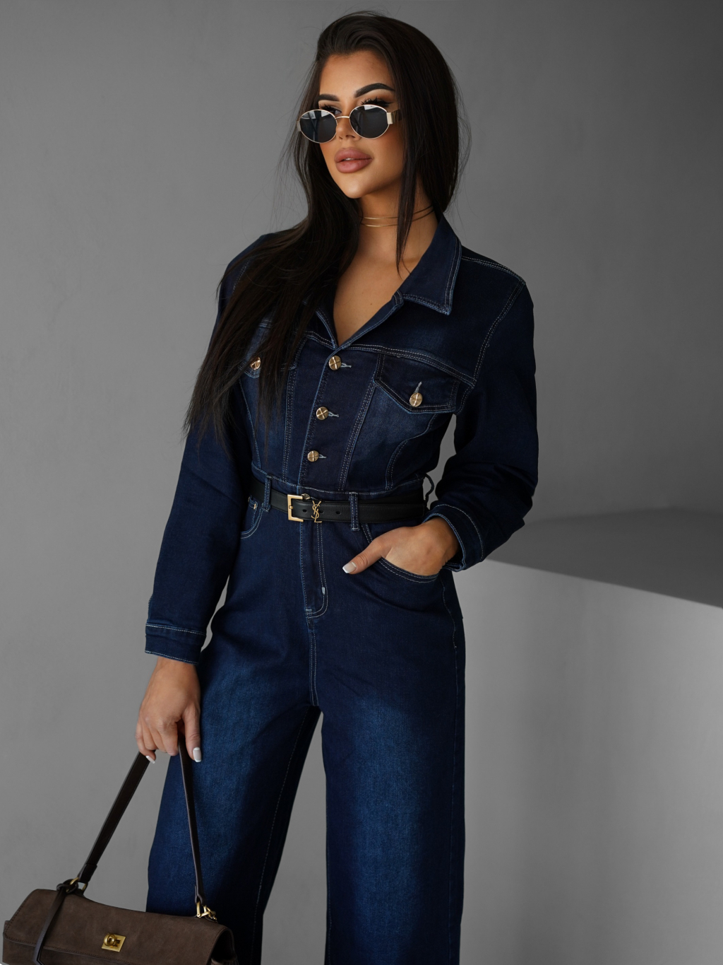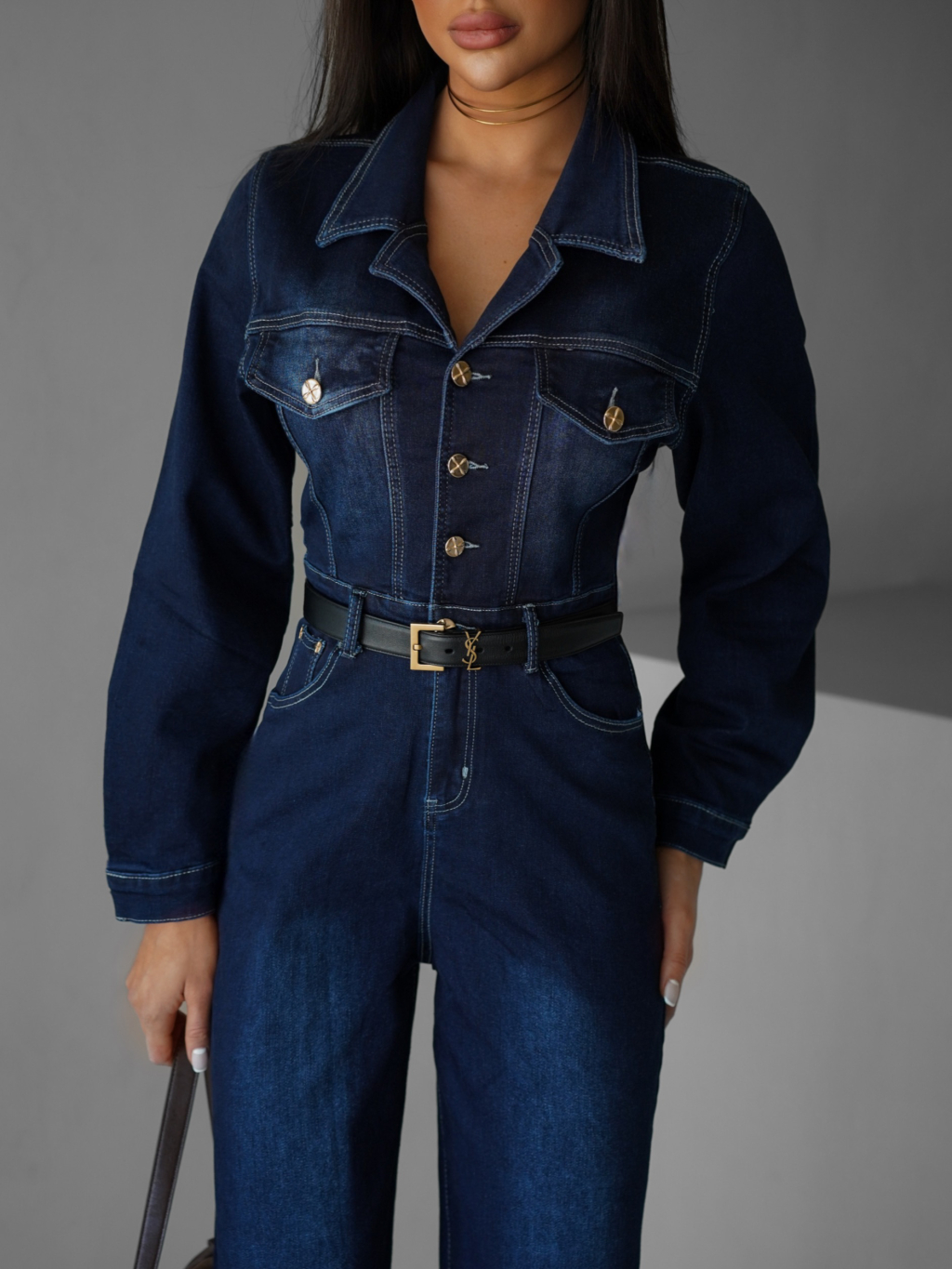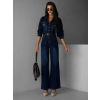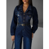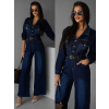 Tmavo modrý džínsový dlhý overal SOUAN s dlhým rukávom