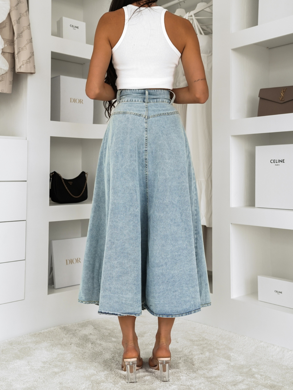 Modrá dlhá džínsová sukňa SAPHIRA na gombíky